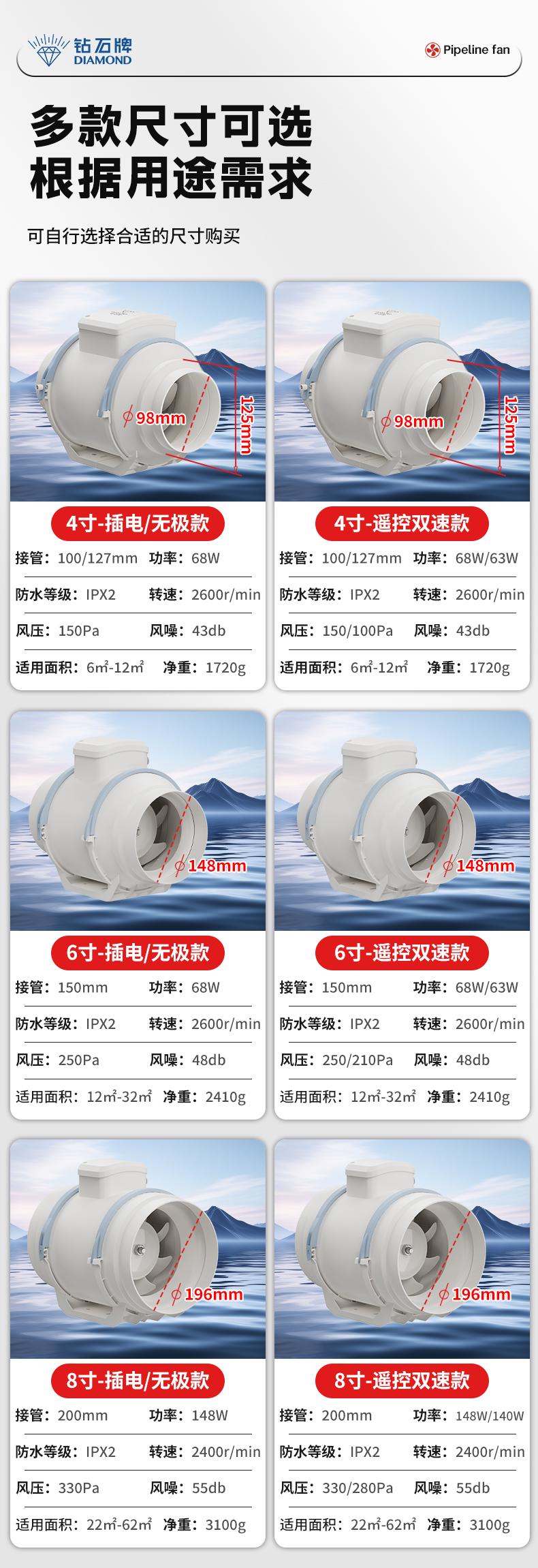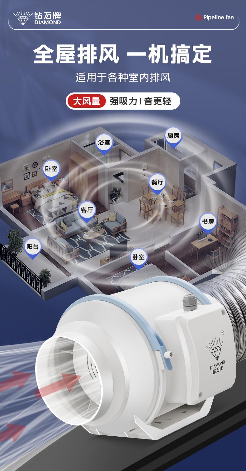 Envío gratis ventilador de extracción de conducto de flujo oblicuo ventilador de extracción silencioso gran succión cocina ventilador de extracción booster repuesto