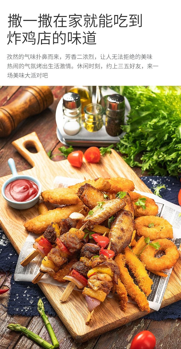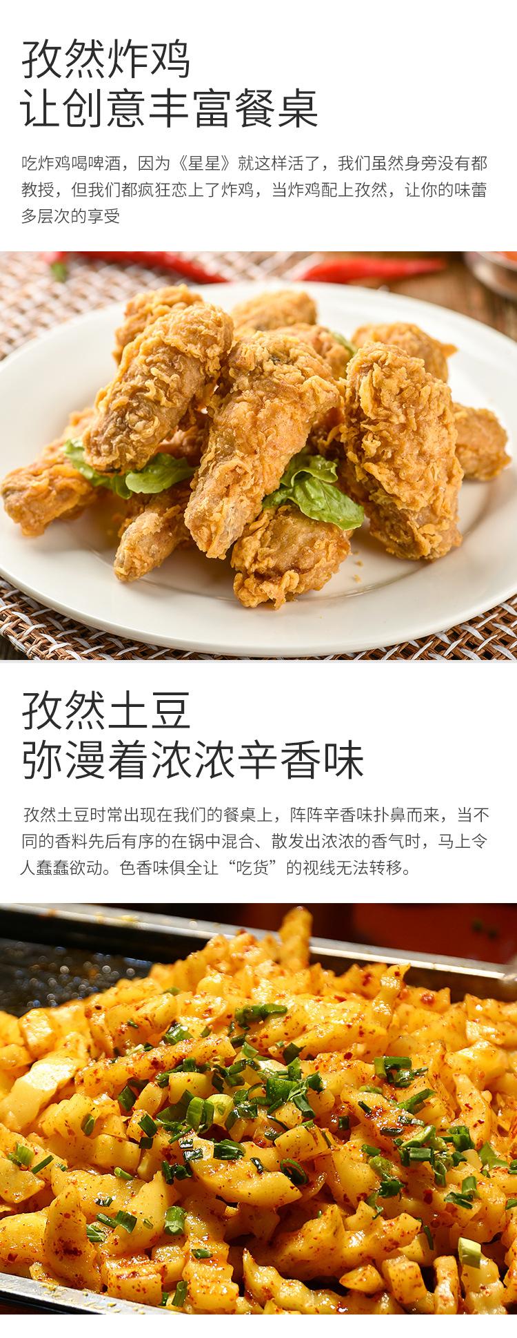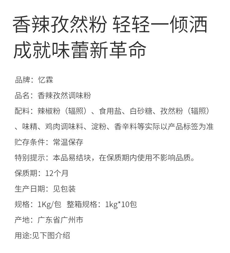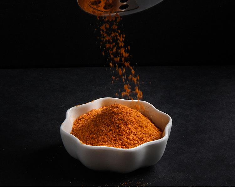 【Ingredientes】:Chile en polvo (irradiado),, azúcar blanca, comino en polvo (irradiado), glutamato monosódico, sazonador de pollo (pollo, grasa de pollo,, extracto de levadura, almidón, especias, aditivos alimentarios (glutamato monosódico, 5'-inosinato disódico, saborizante alimentario, dióxido de silicio ) ), salsa de soya en polvo (salsa de soya fermentada, maltodextrina,, aditivos alimentarios (glutamato monosódico, 5'-inosinato disódico)) aditivos alimentarios (dióxido de silicio, oleorresina de pimentón), especias (irradiadas), saborizante alimentario
