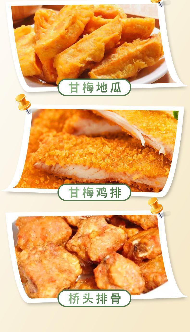 Filete de Pollo Frito de Fruta Agridulce, Tiras de Camote, Papas Fritas, Condimentos, Comida Fresca Especial para Catering Comercial