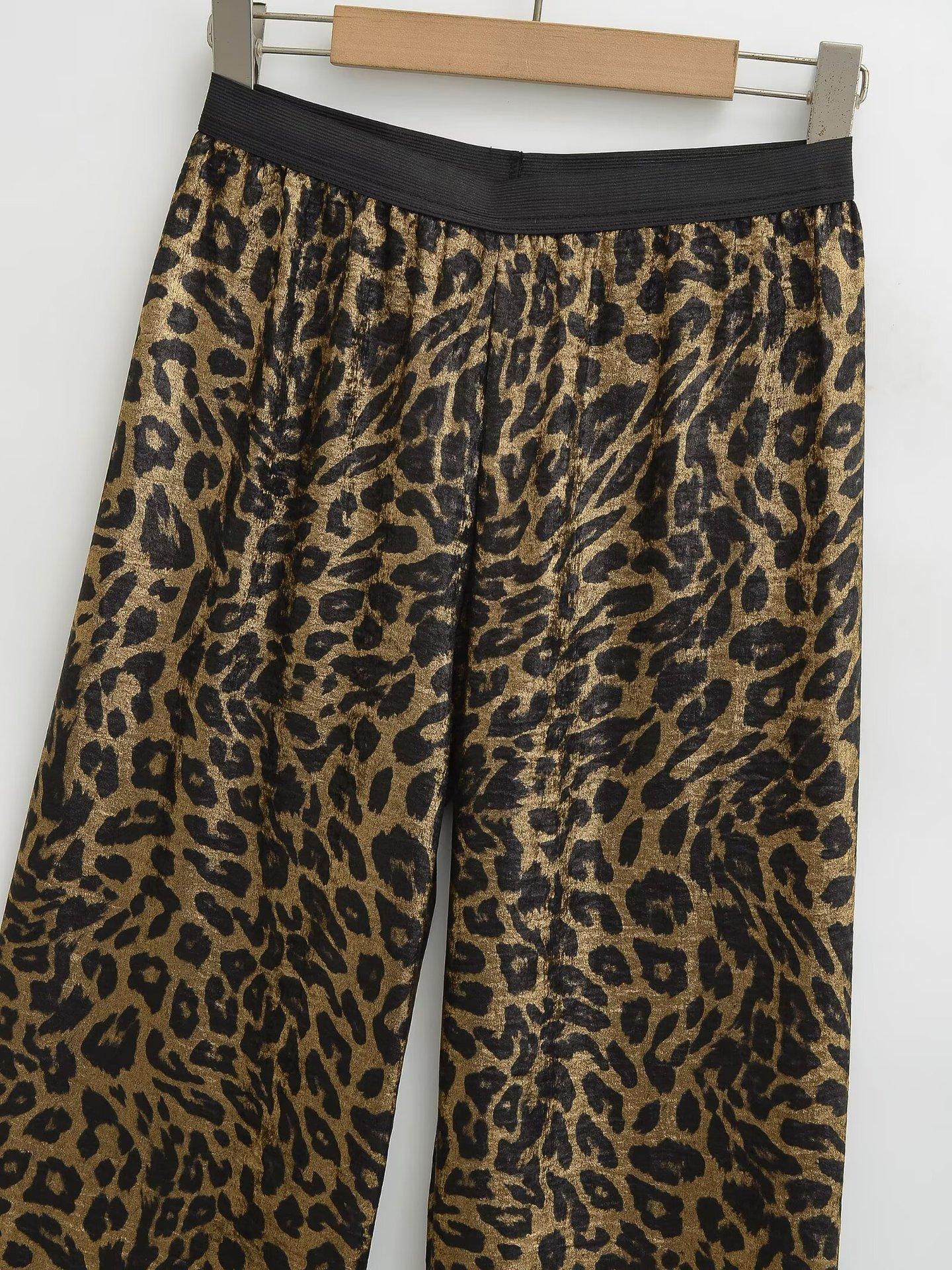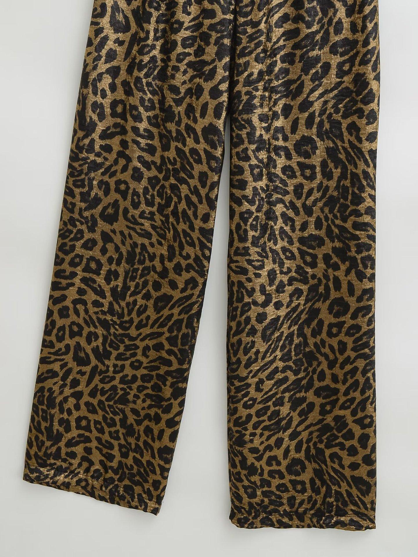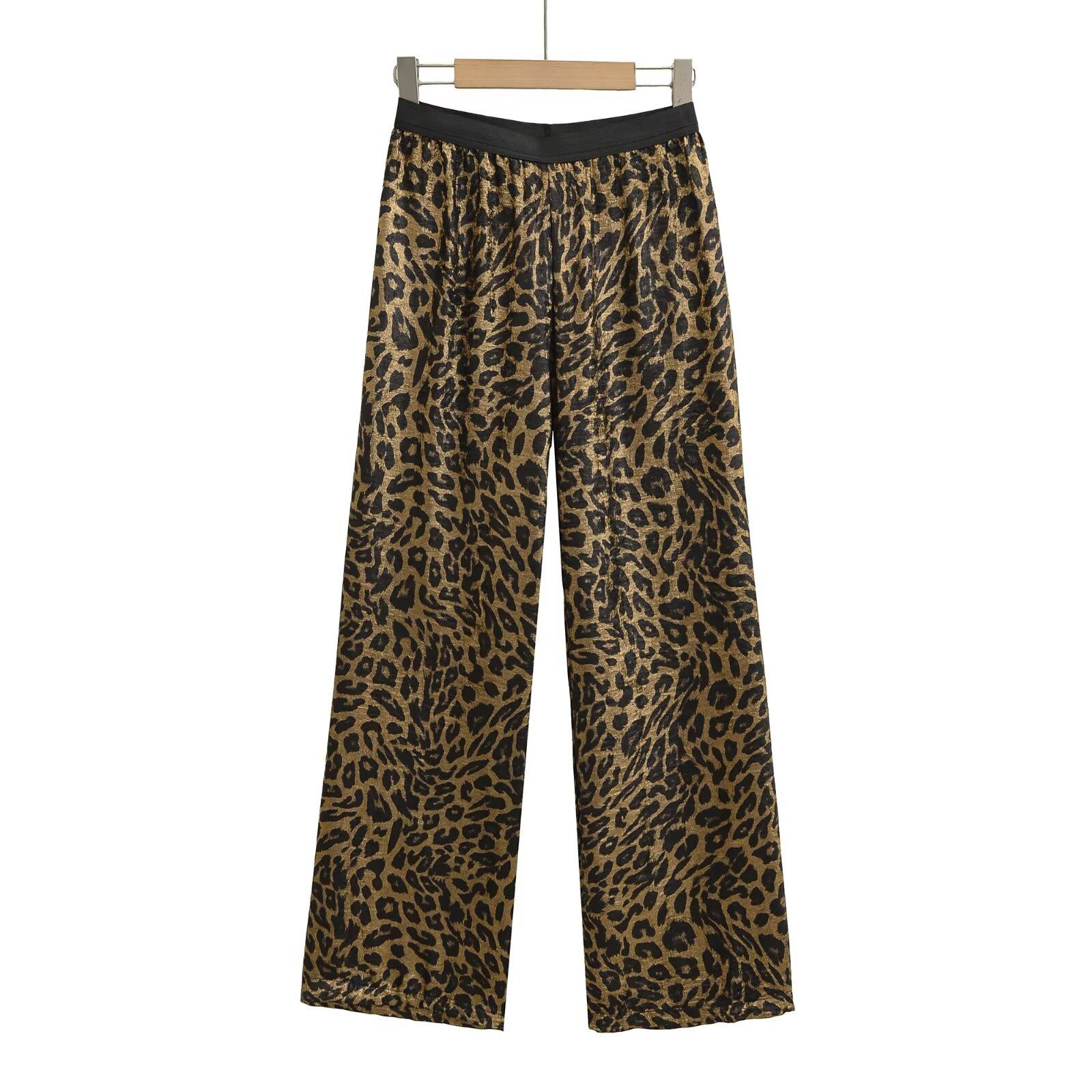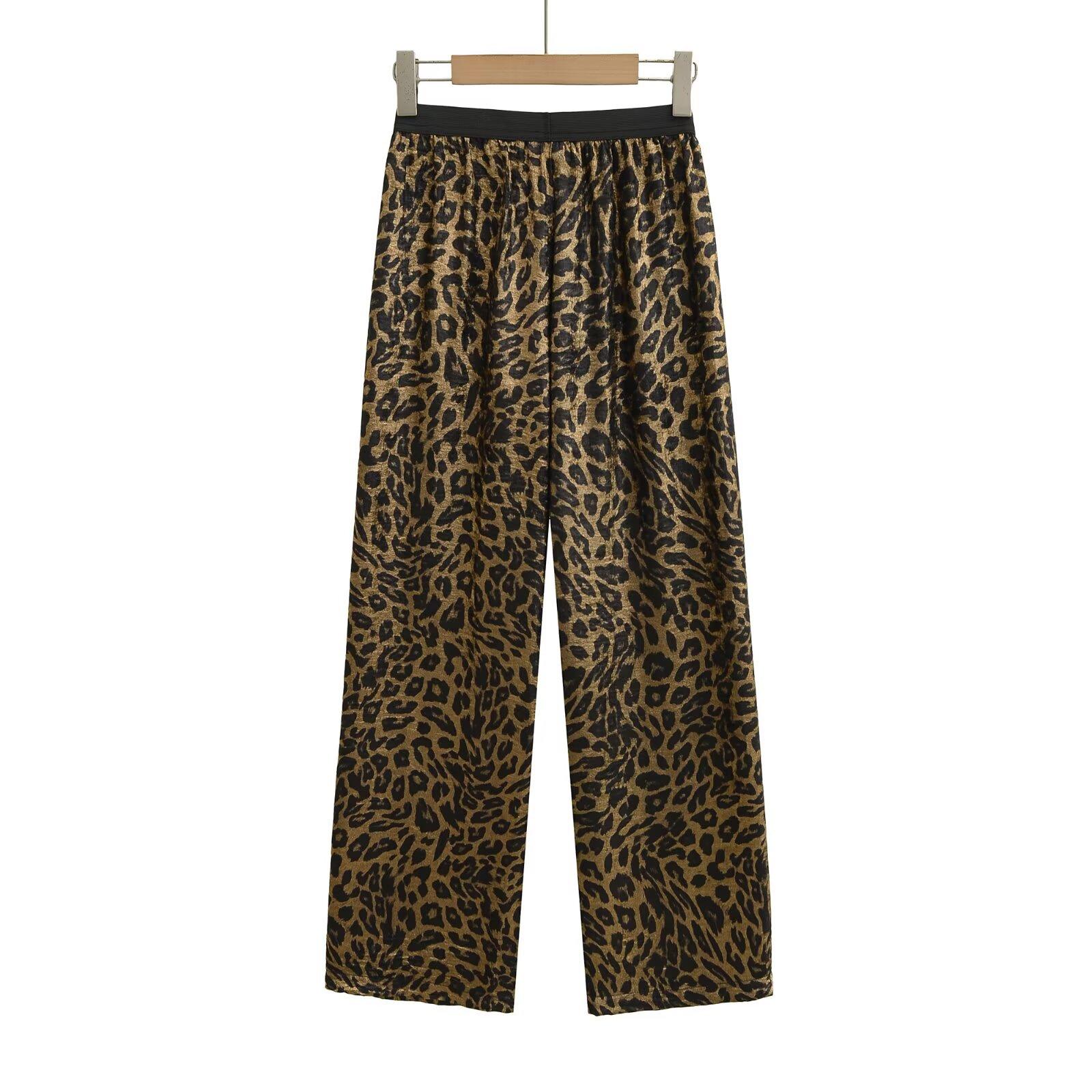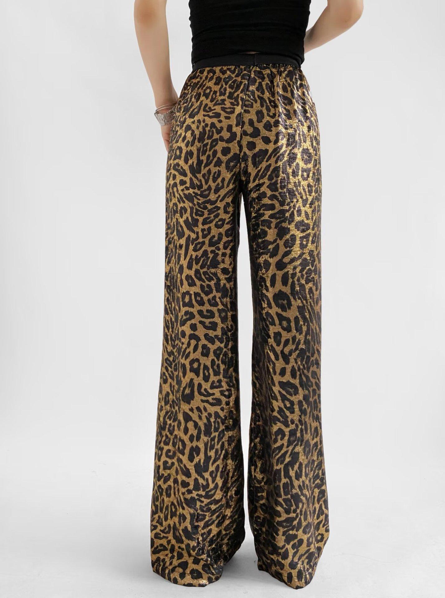 Verano 2025 Nuevo Retro Americano Estampado Leopardo Casual Pantalones Rectos S22439 Color de la Imagen Básico Recto Color Metal
