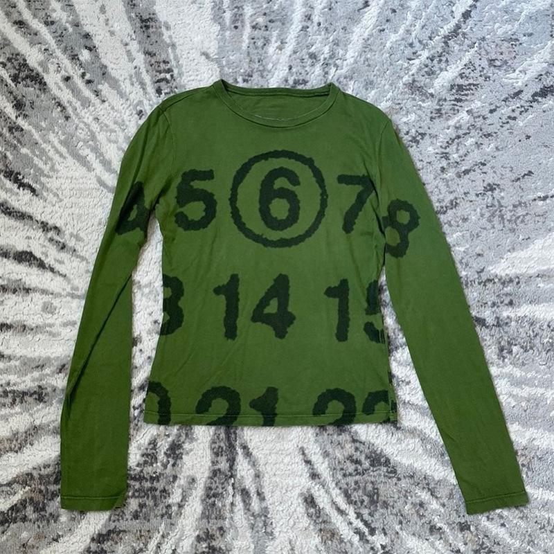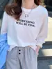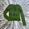 Camiseta de Manga Larga Elástica Estilo Nuevo Primavera y Otoño 2025 Mujer Verde Número Letra Estilo Coreano Camiseta Base Ropa Interior