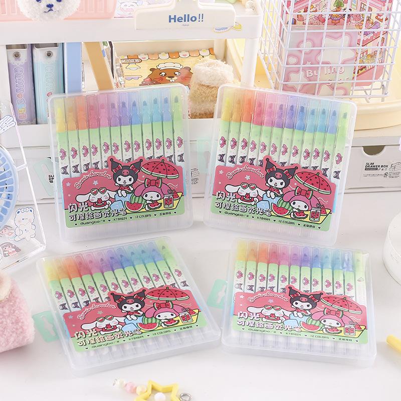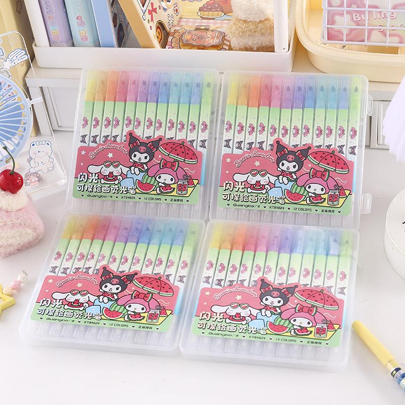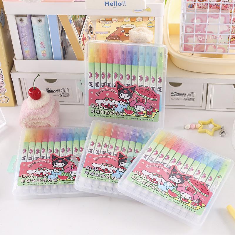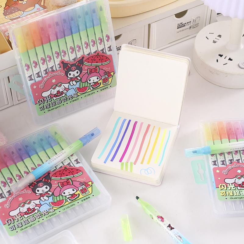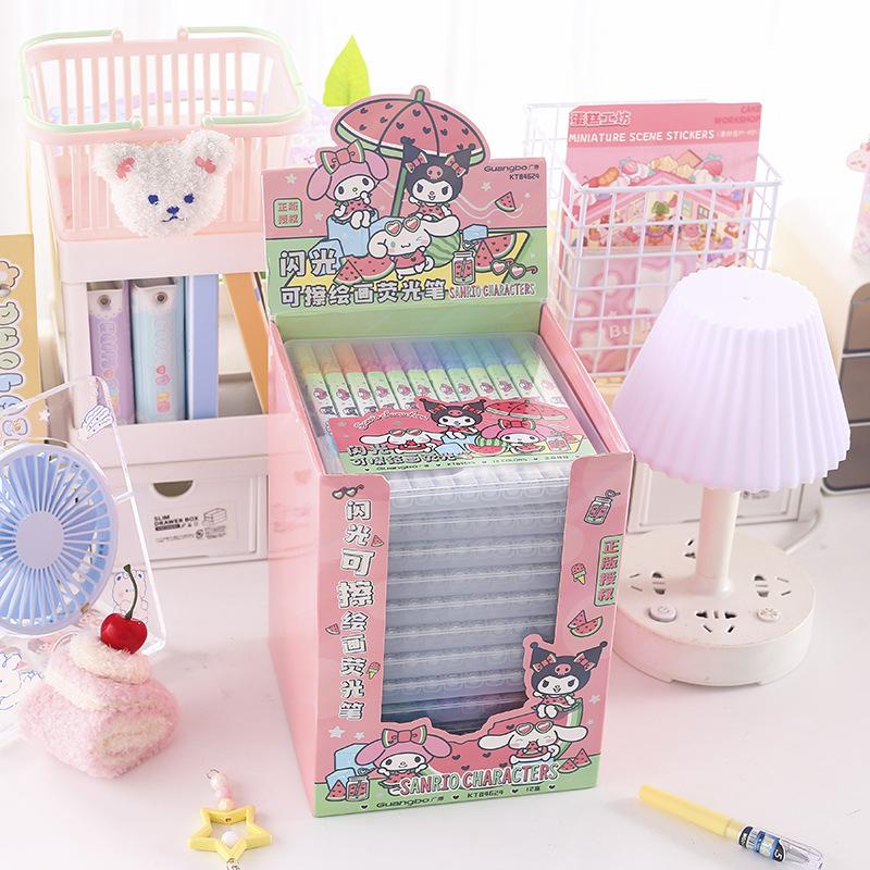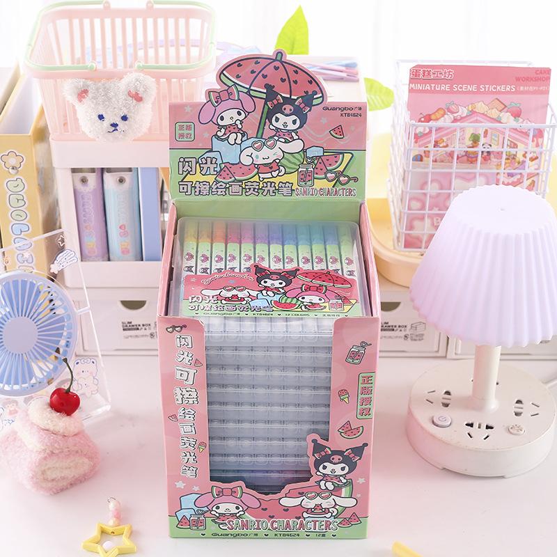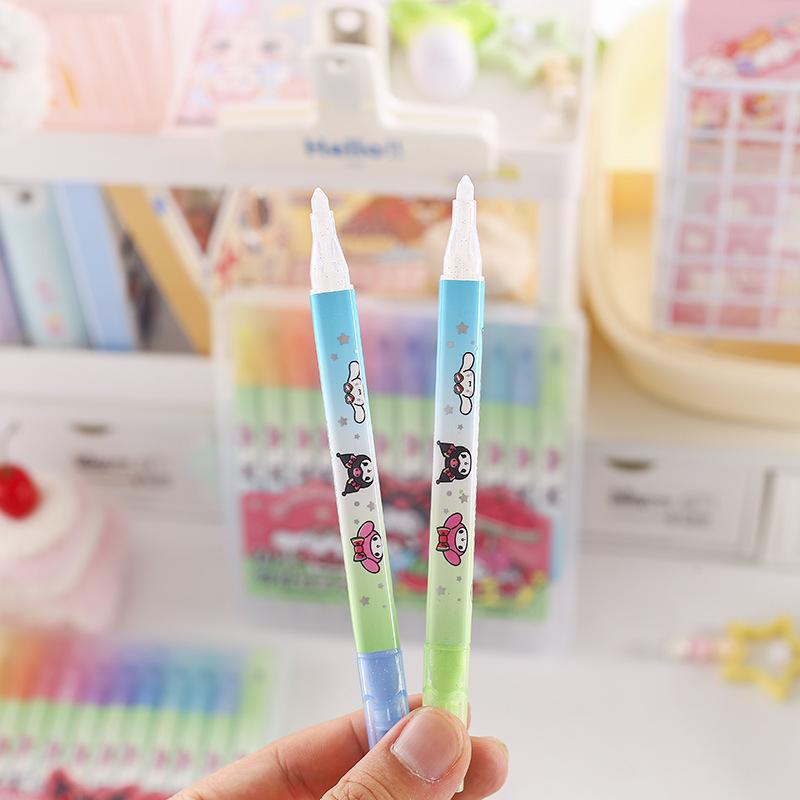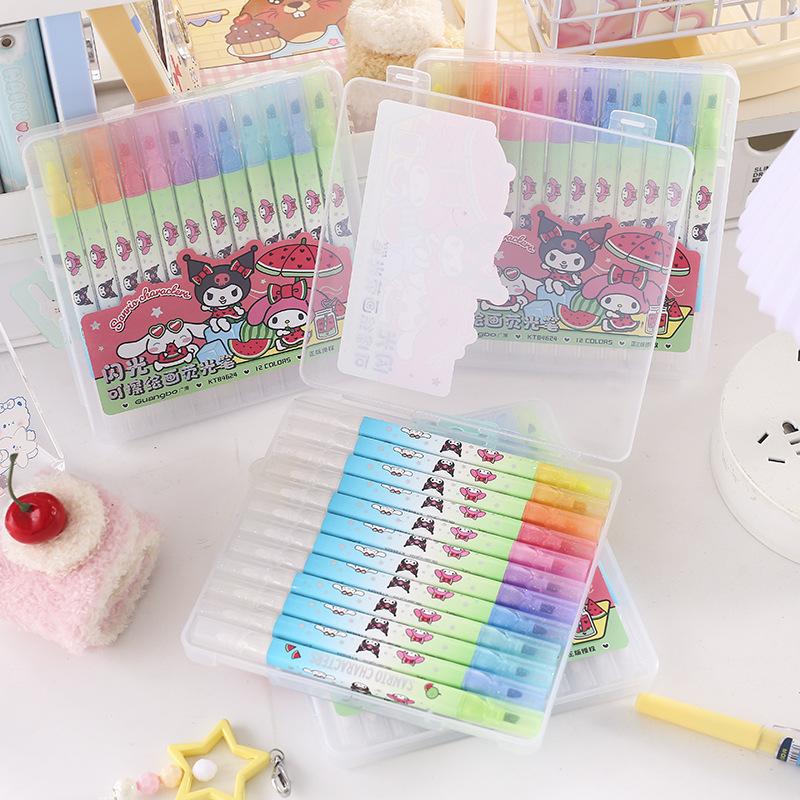 Resaltadores de Dibujo Borrables con Glitter Sanrio Marcadores de Colores Estilo Ins Japonés Uso Estudiantil Marcadores Borrables