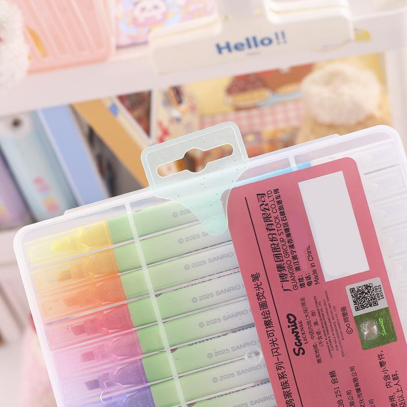 109776-Sanrio Glitter Erasable Drawing Highlighters (12-Piece Single Box Set)