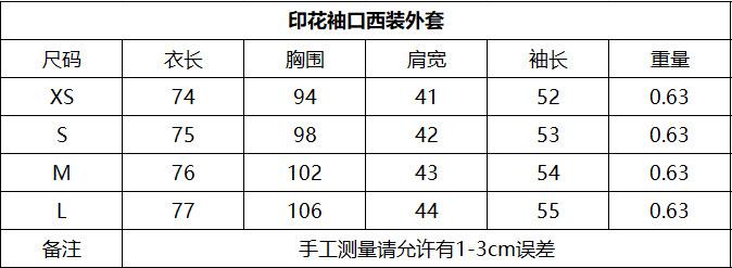 2025 Otoño Nuevo Europeo y Americano Transfronterizo Moda Urbana para Mujer Chaqueta de Traje con Puño Estampado w021 82650