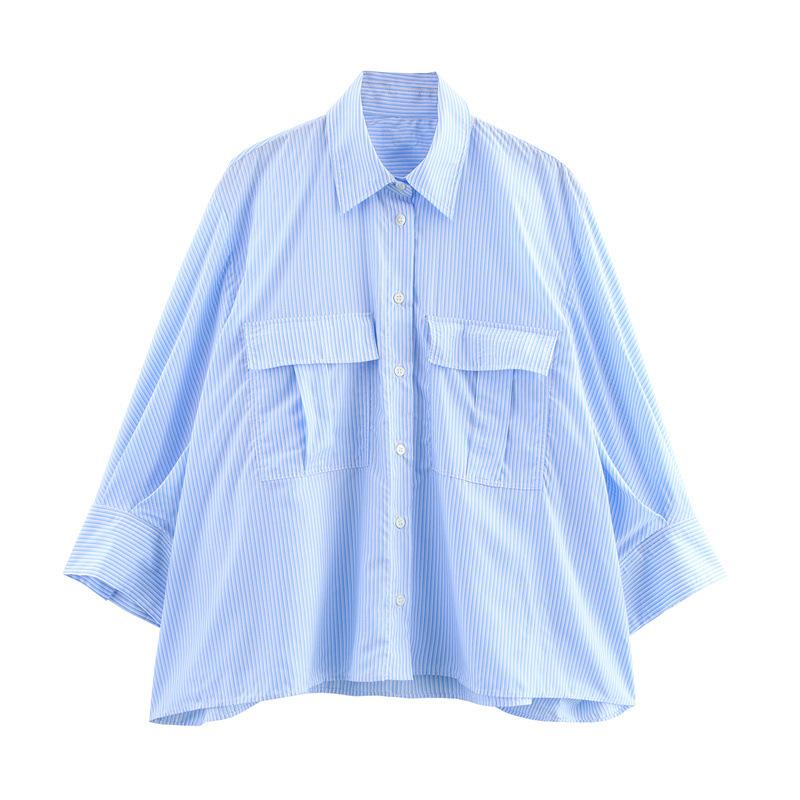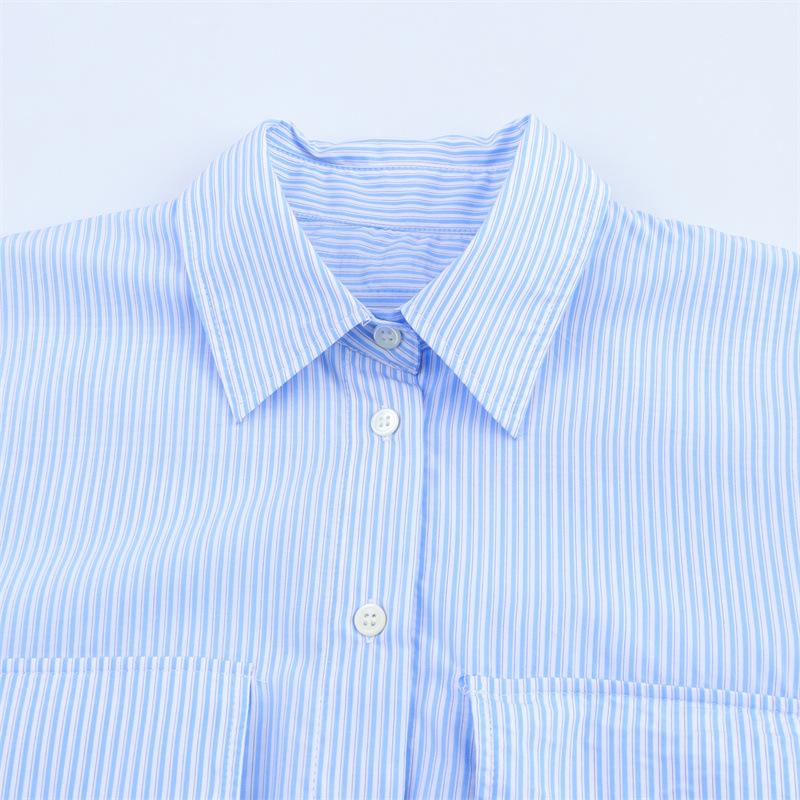 Comercio Exterior Transfronterizo Venta al Por Mayor 2025 Nueva Primavera/Verano Moda Holgada Versátil Camisa de Manga Larga a Rayas K4-22340