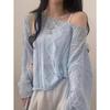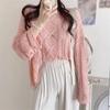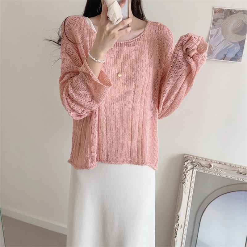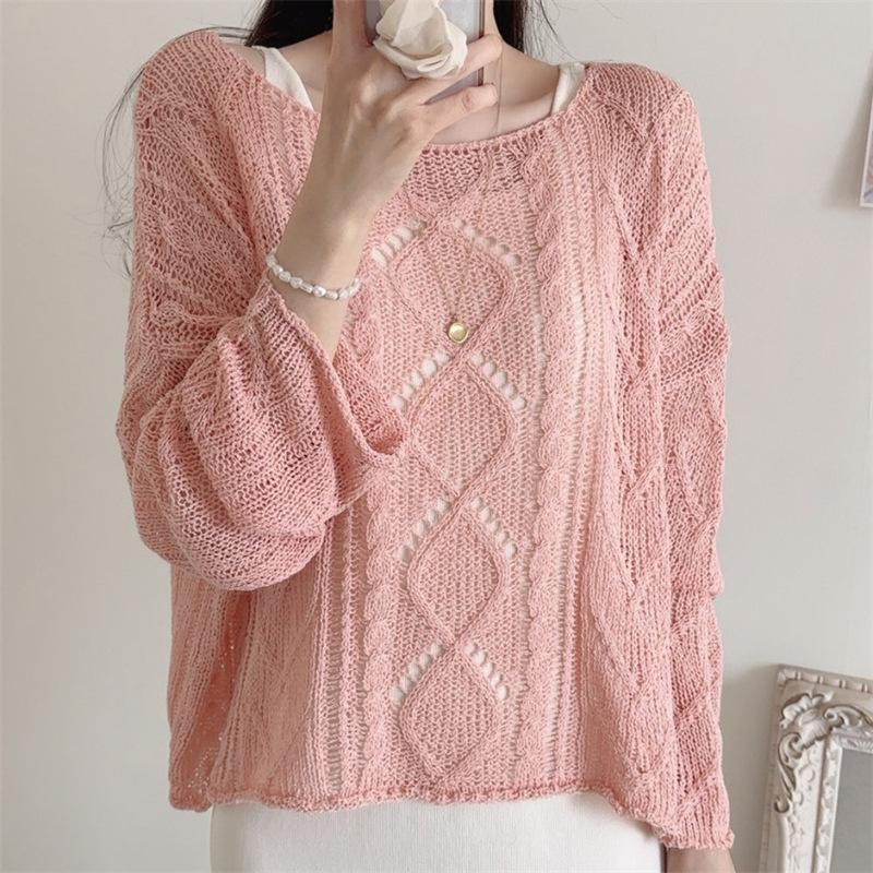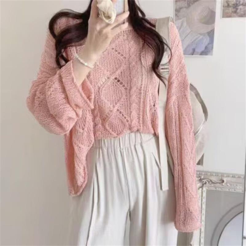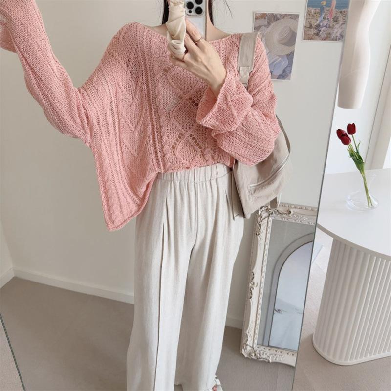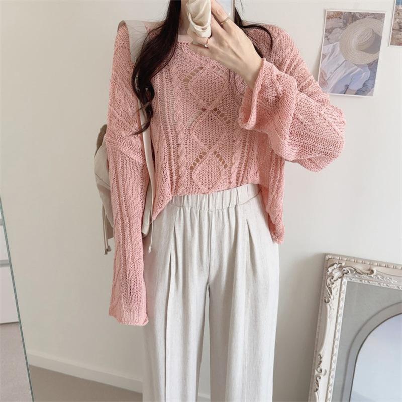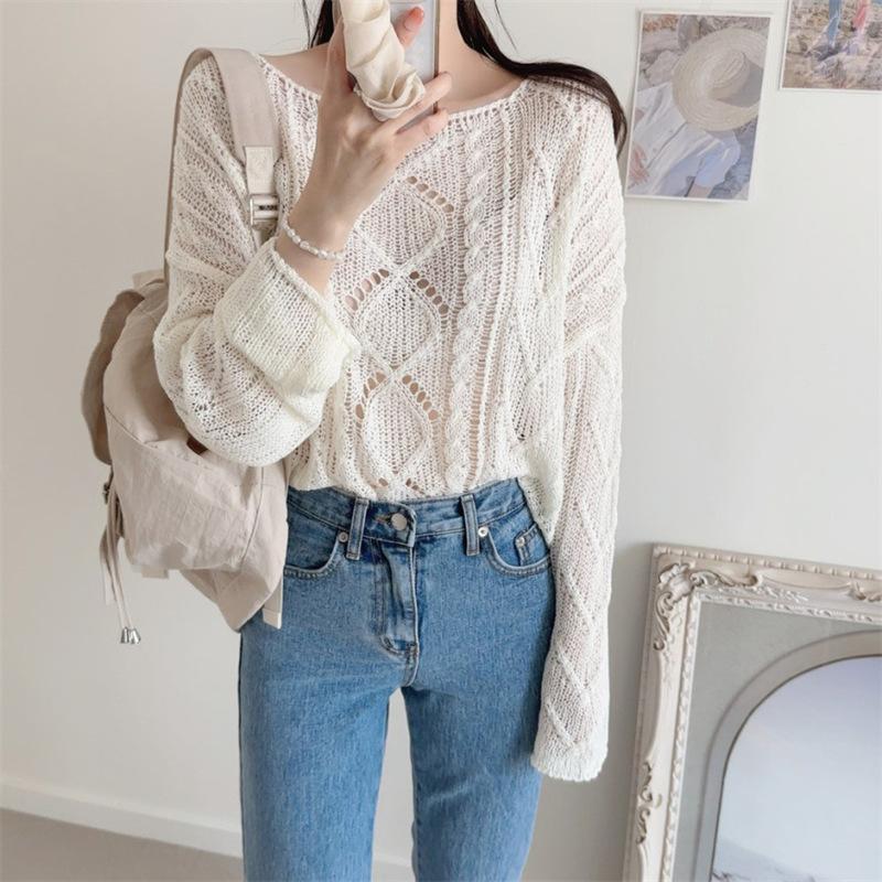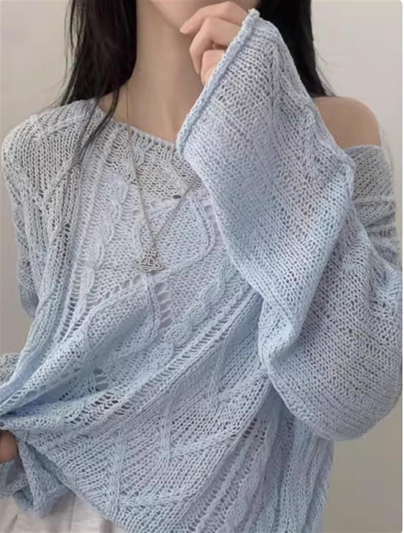 Cárdigan tejido calado estilo coreano para protección solar para mujer, puro deseo, jersey de un hombro, suéter de manga larga, top delgado