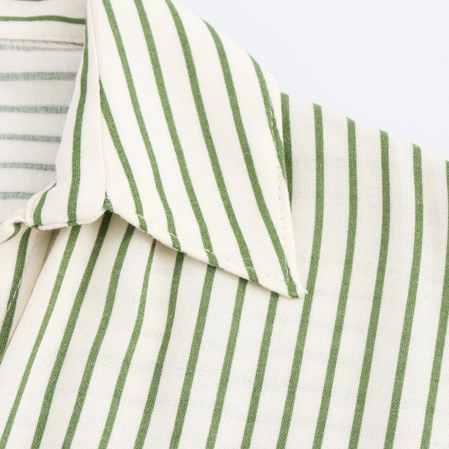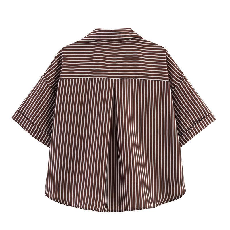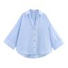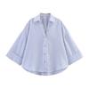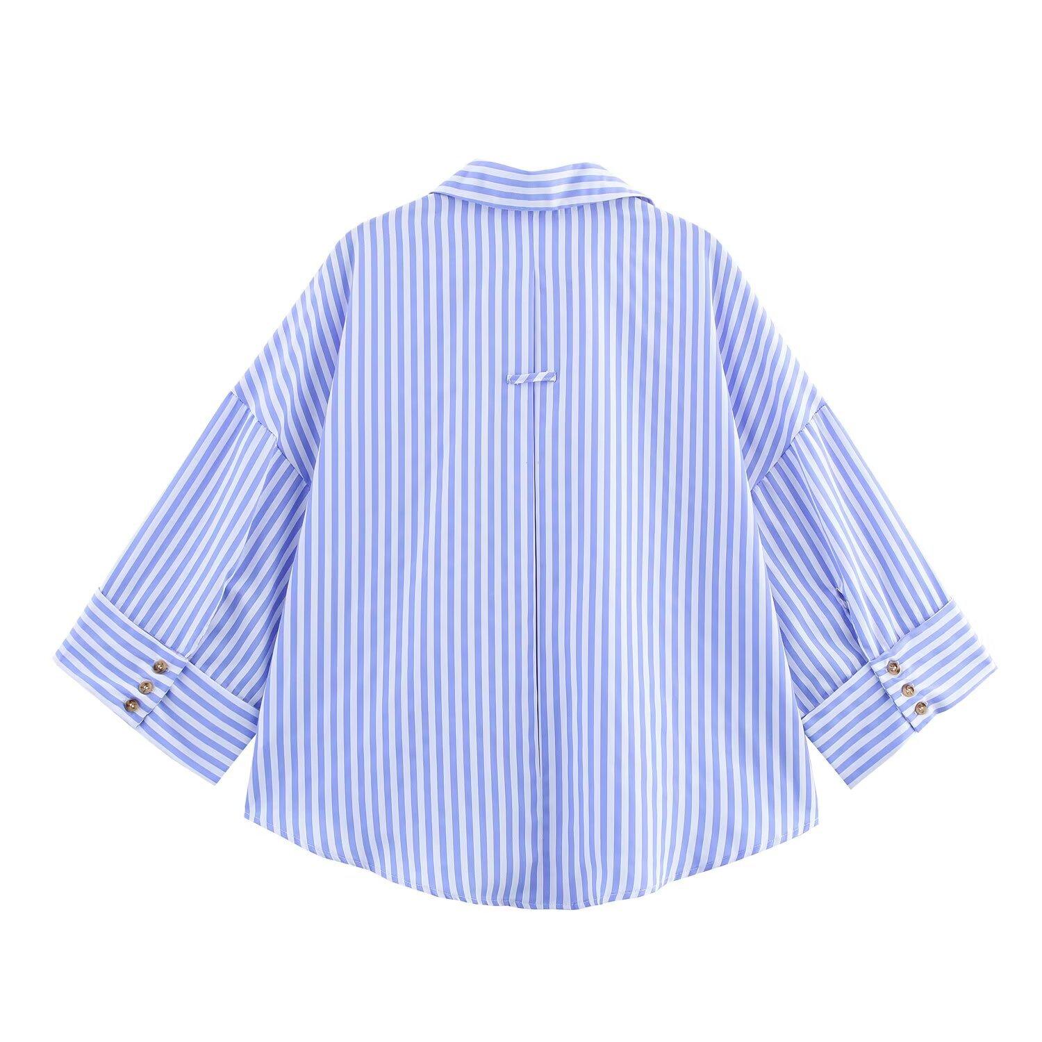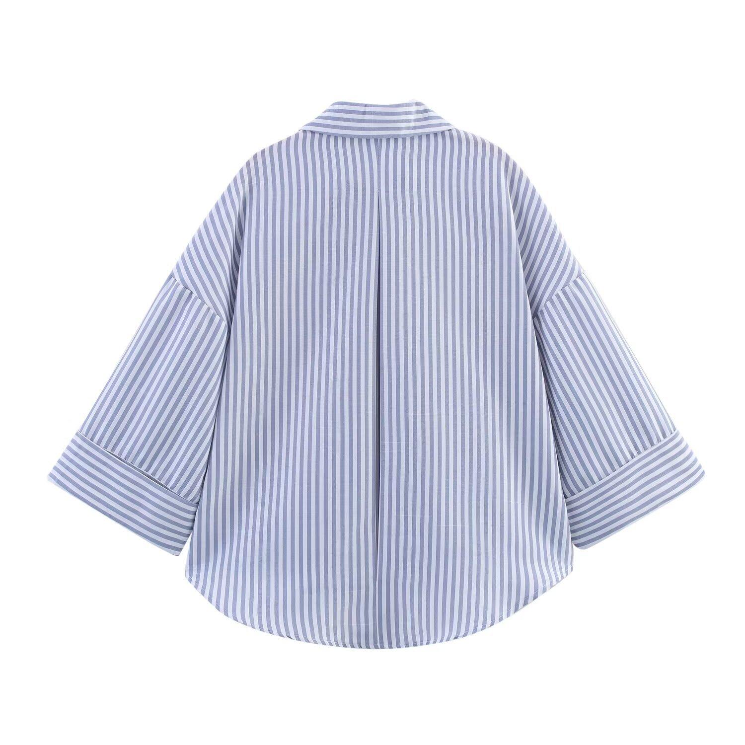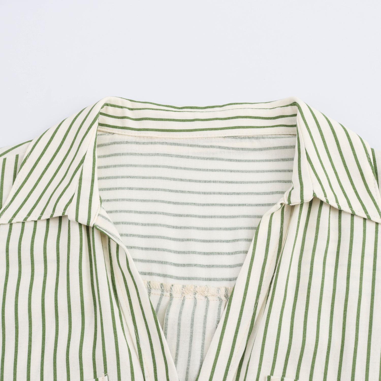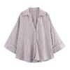 Transfronterizo 2025 Primavera/Verano Nueva Ropa de Mujer Estilo Europeo y Americano Moda Casual Versátil Solapa Rayado Manga Ancha Camisa África