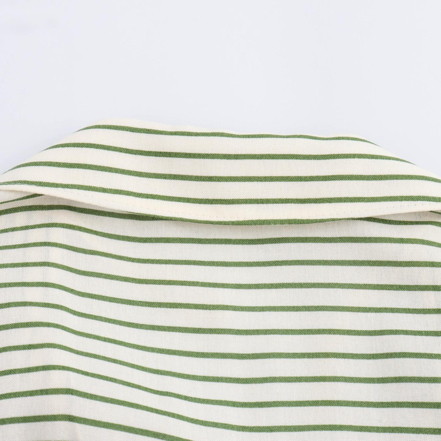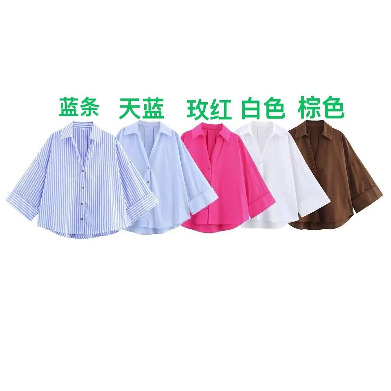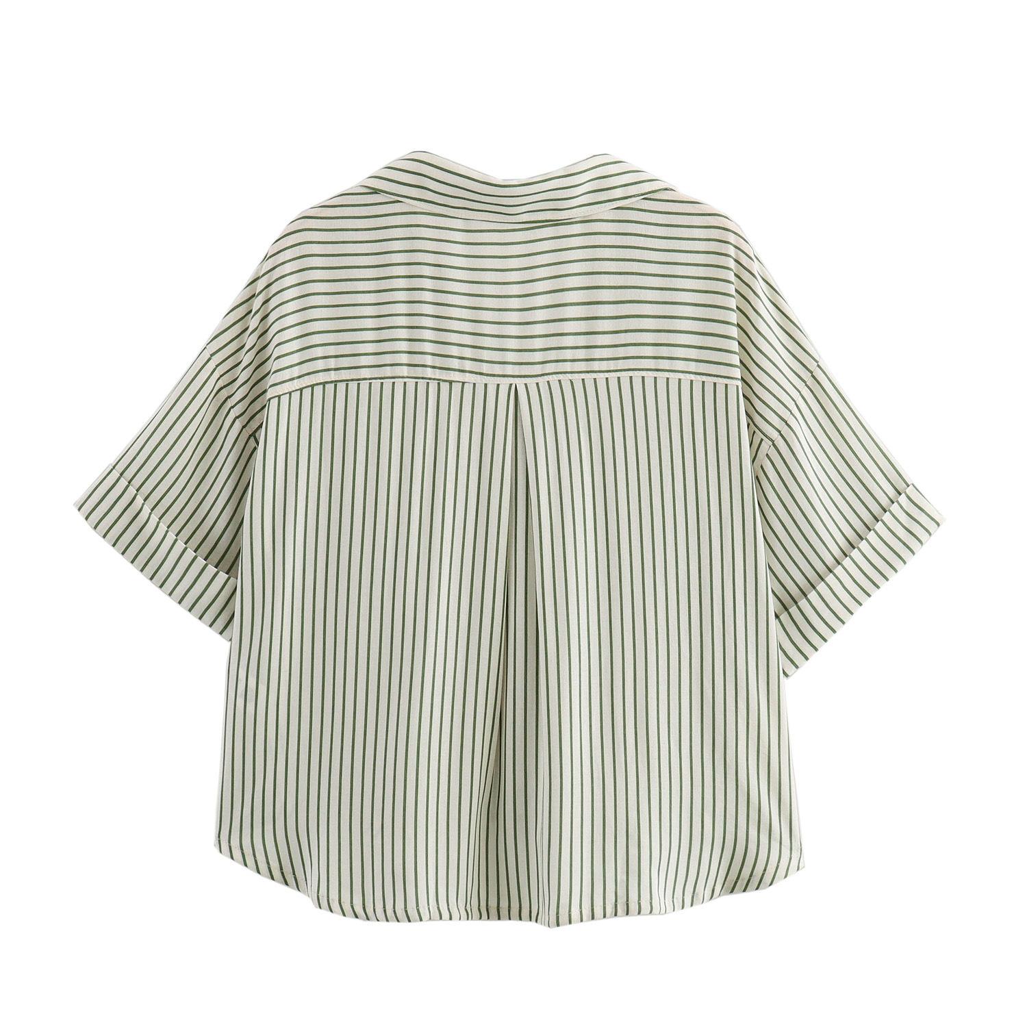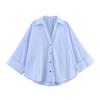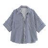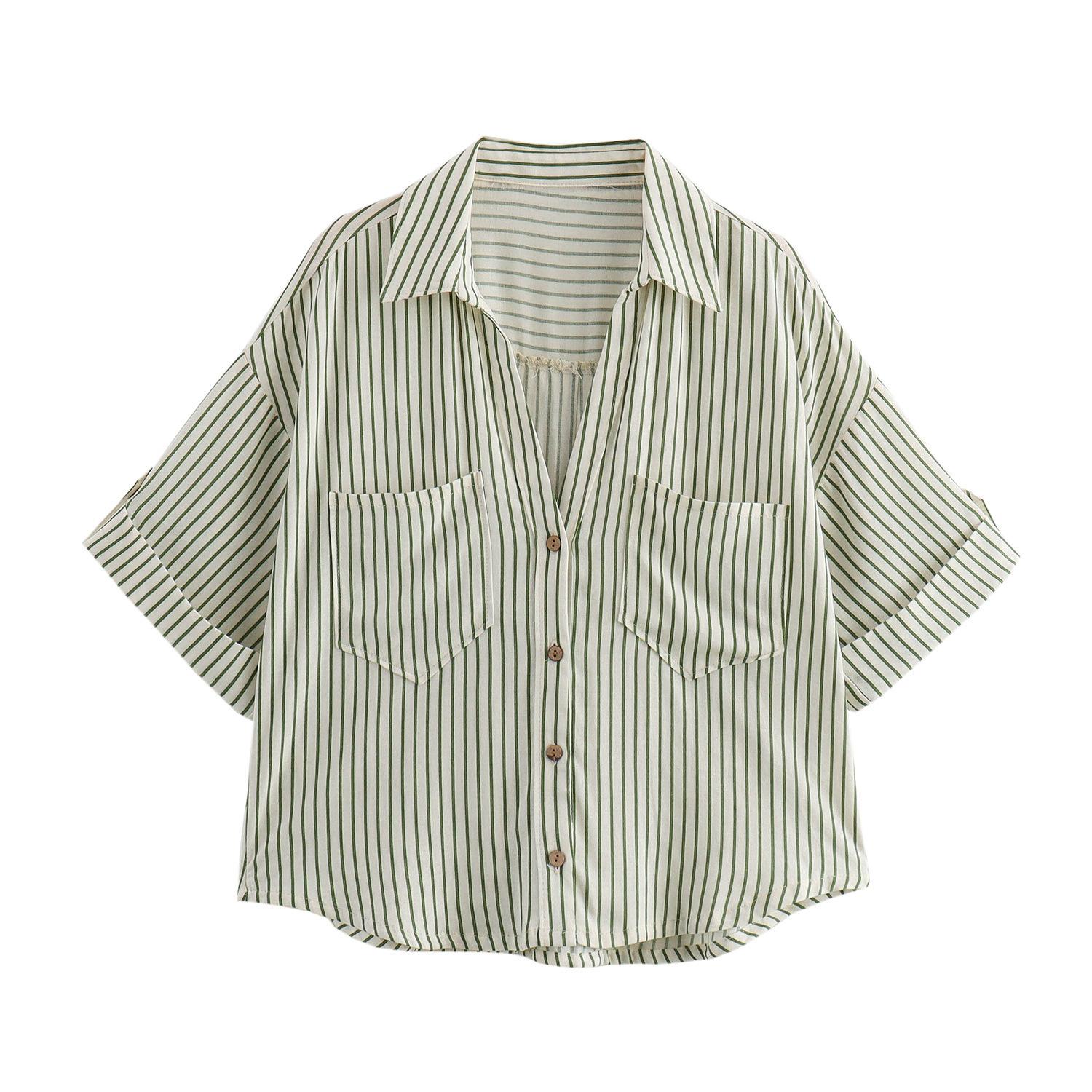 Transfronterizo 2025 Primavera/Verano Nueva Ropa de Mujer Estilo Europeo y Americano Moda Casual Versátil Solapa Rayado Manga Ancha Camisa África