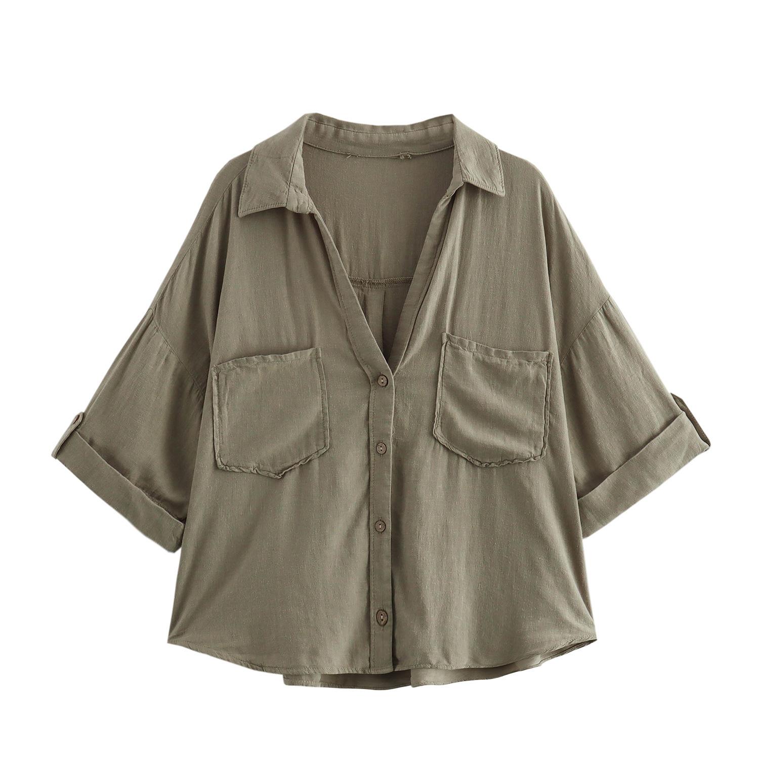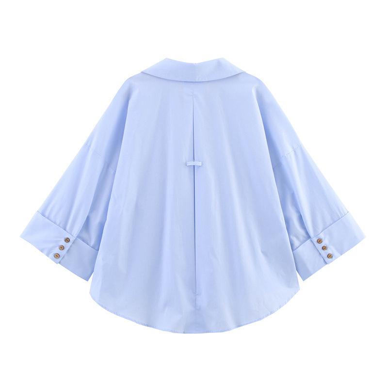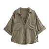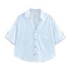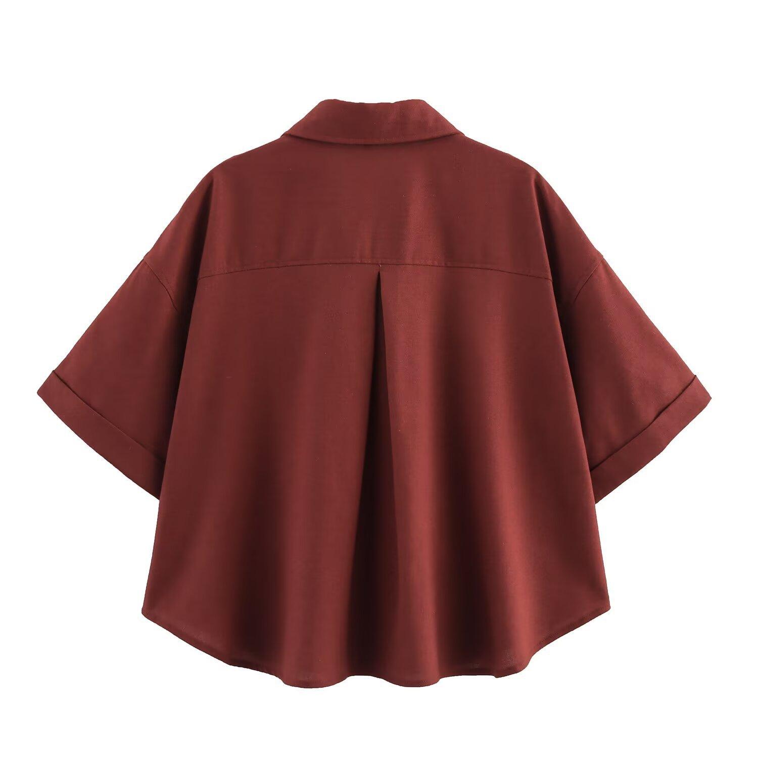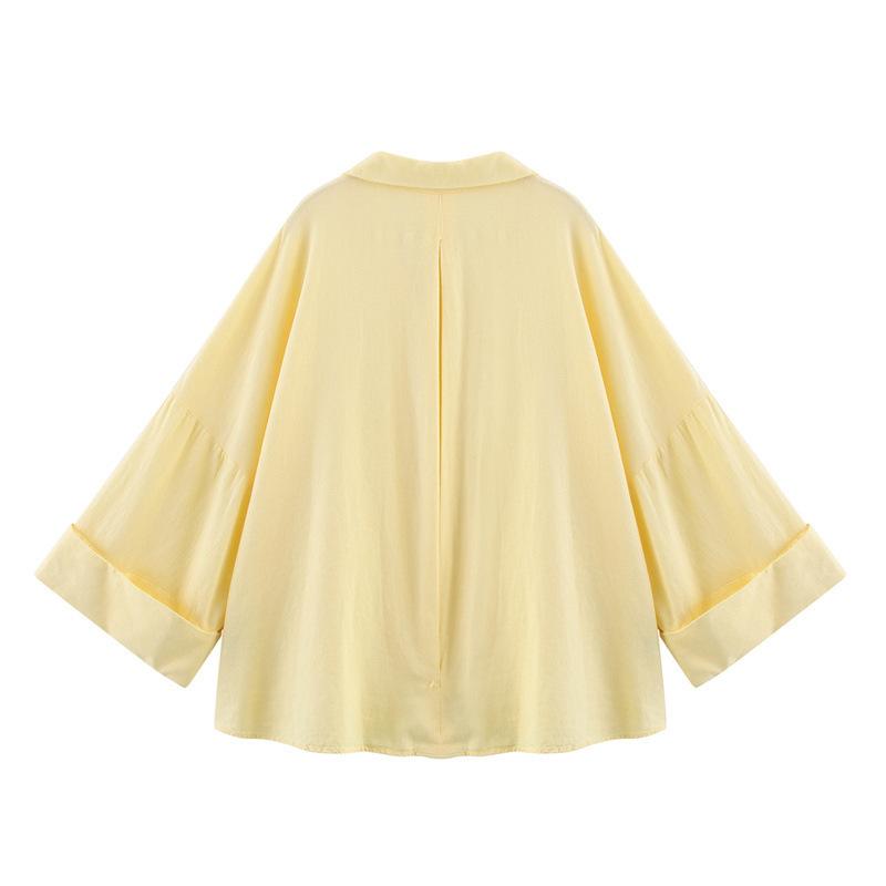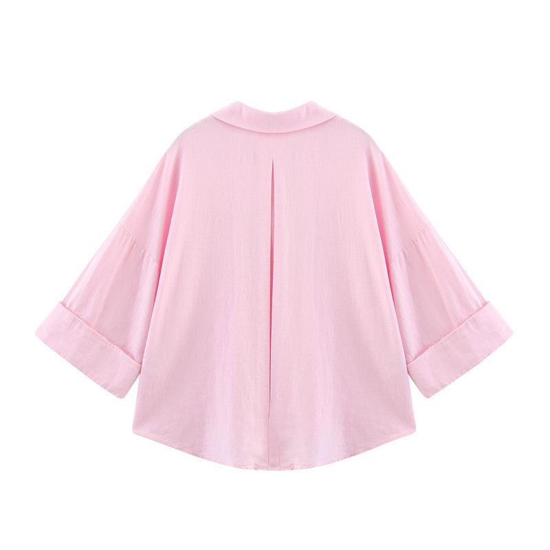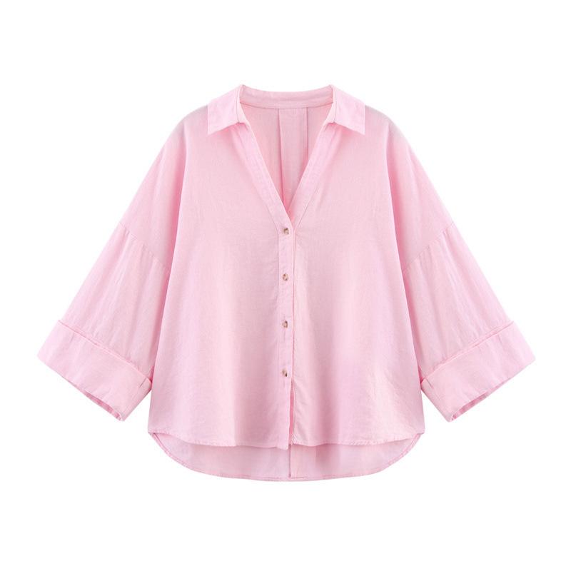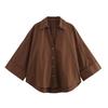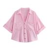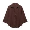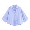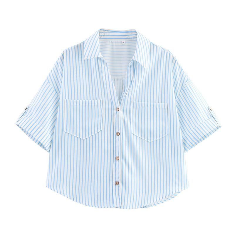 Transfronterizo 2025 Primavera/Verano Nueva Ropa de Mujer Estilo Europeo y Americano Moda Casual Versátil Solapa Rayado Manga Ancha Camisa África