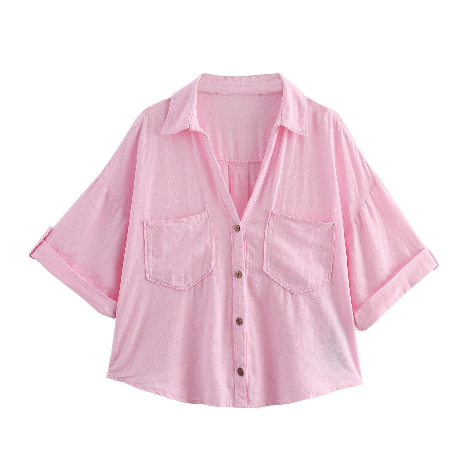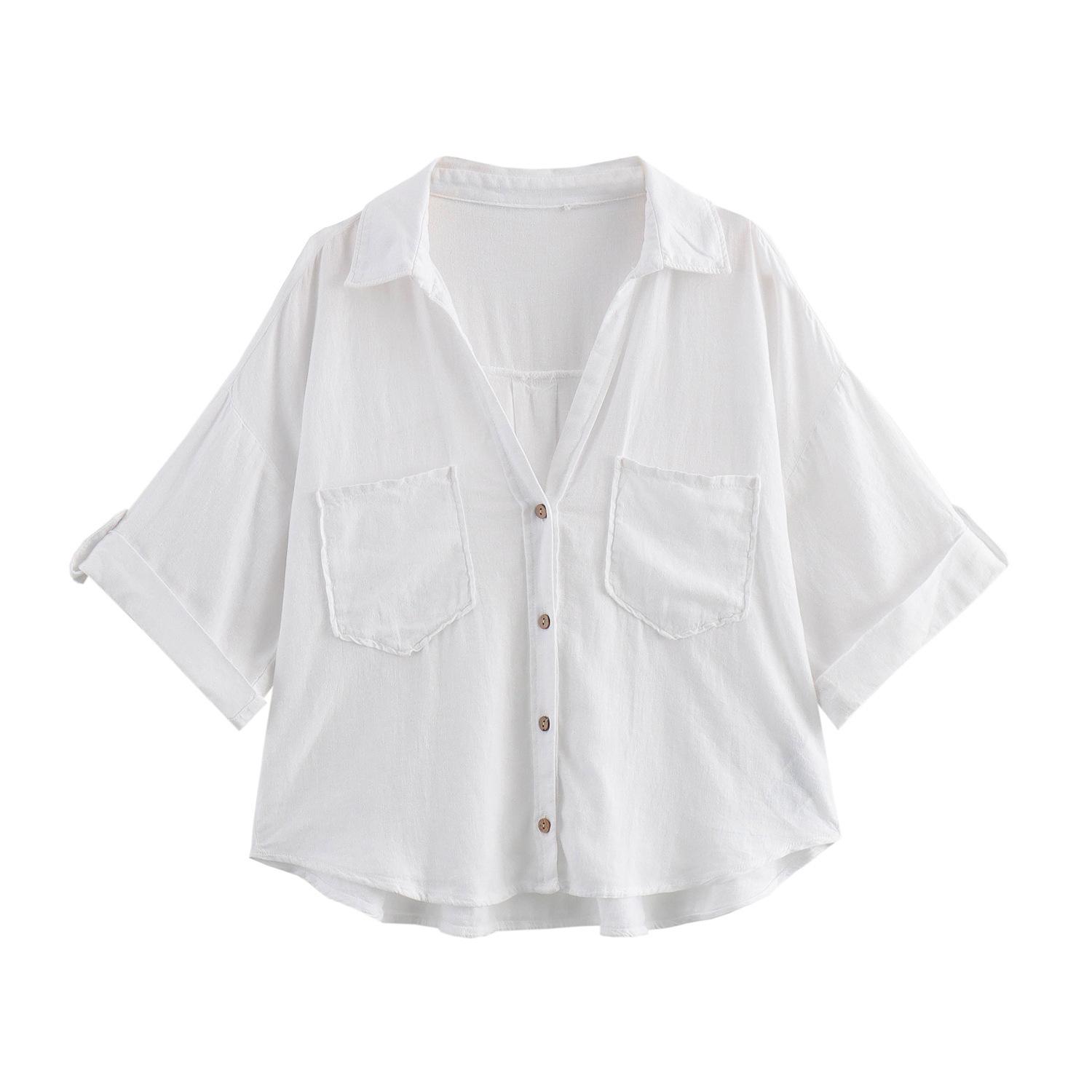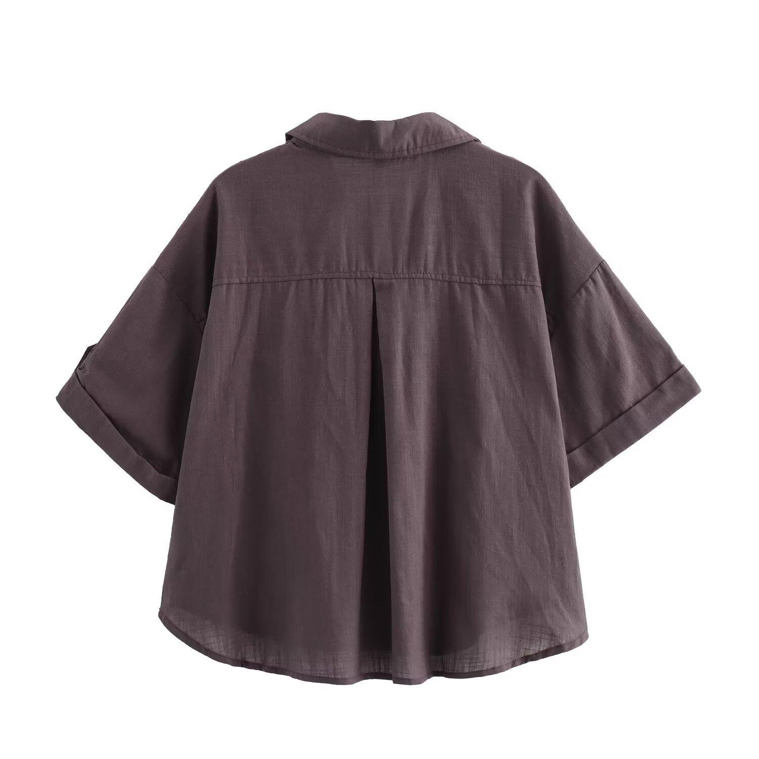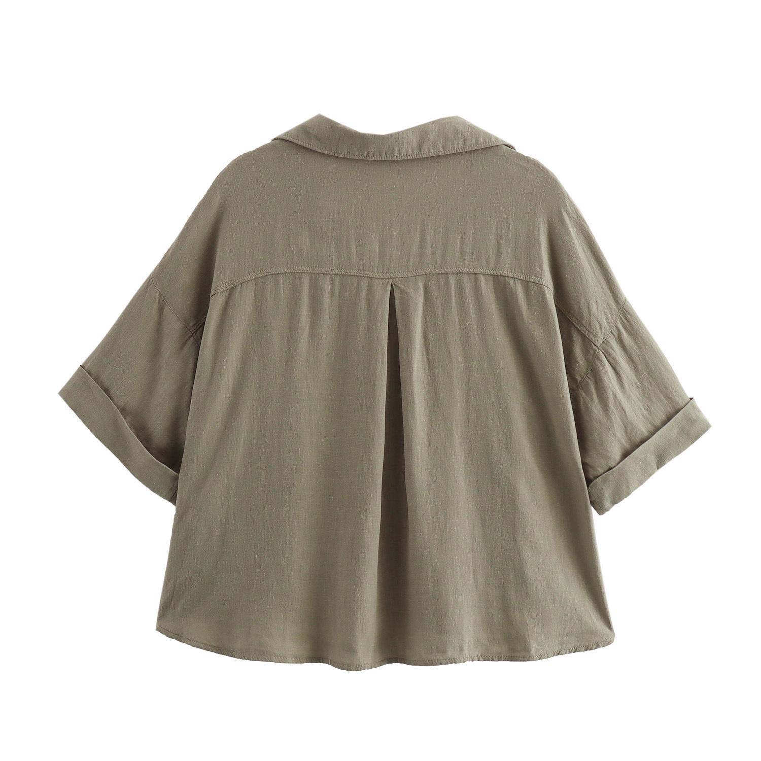 Transfronterizo 2025 Primavera/Verano Nueva Ropa de Mujer Estilo Europeo y Americano Moda Casual Versátil Solapa Rayado Manga Ancha Camisa África