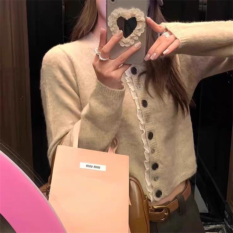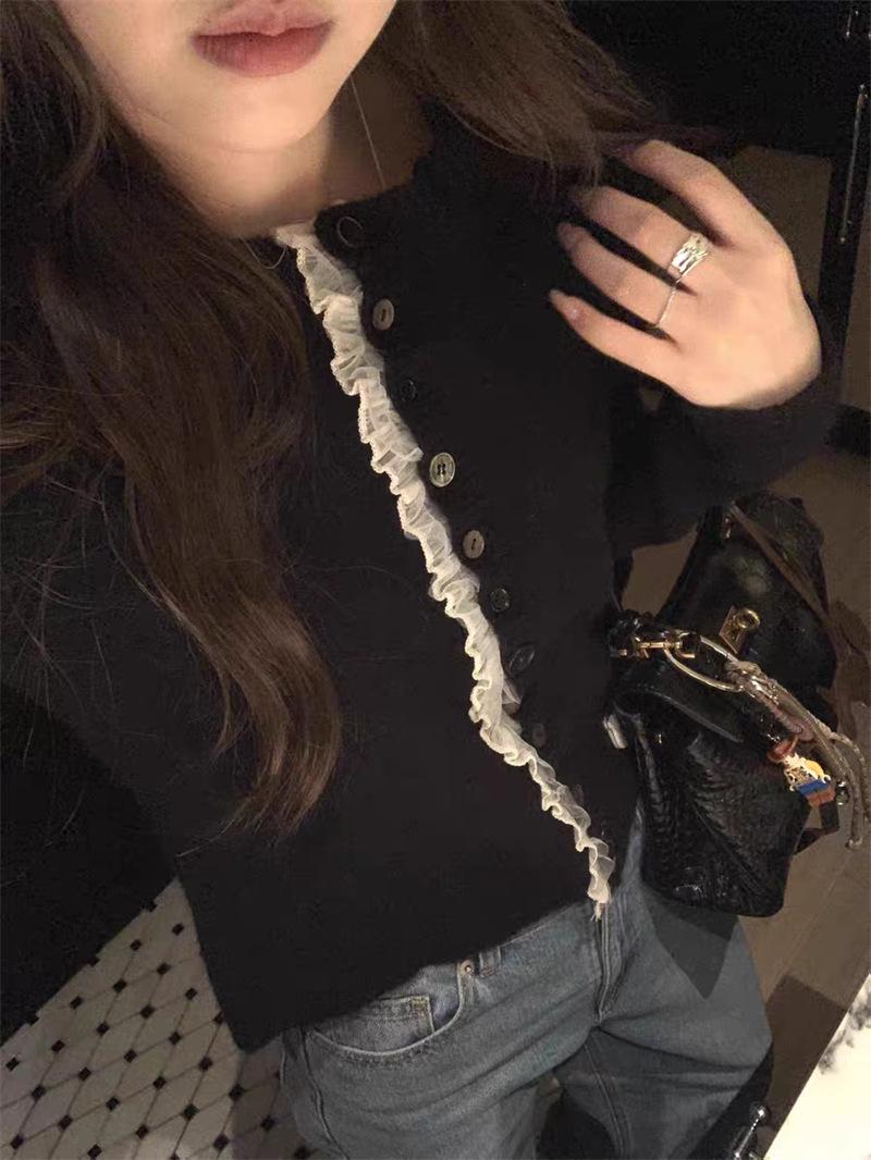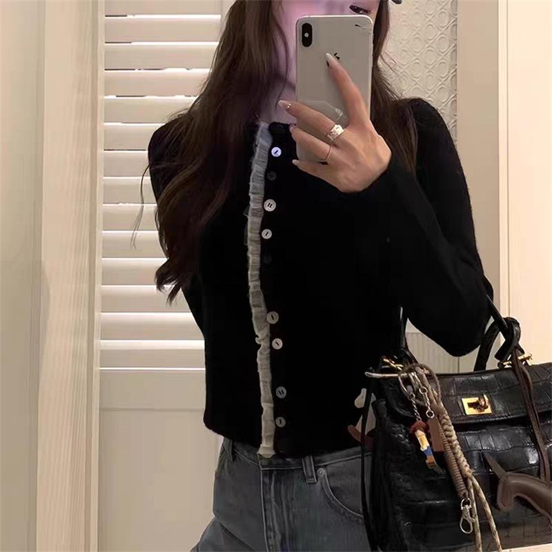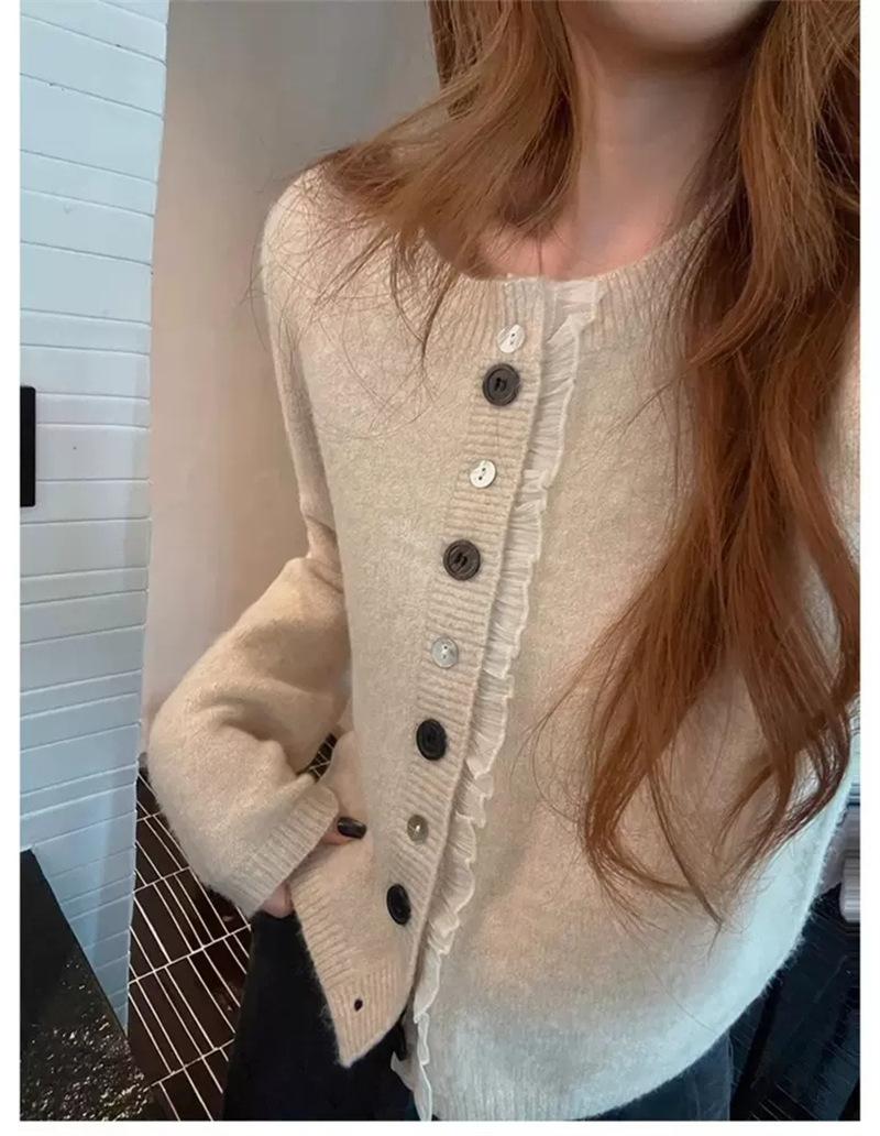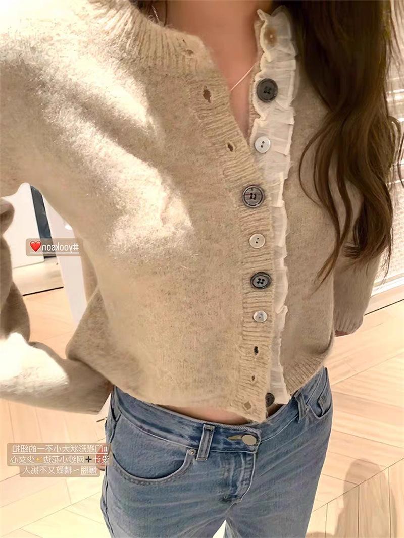 Diseño Patchwork de Encaje 2025 Nuevo Nicho Coreano Suave para Ir al Trabajo Versátil Cárdigan de Punto de Manga Larga Suéter Mujer Otoño