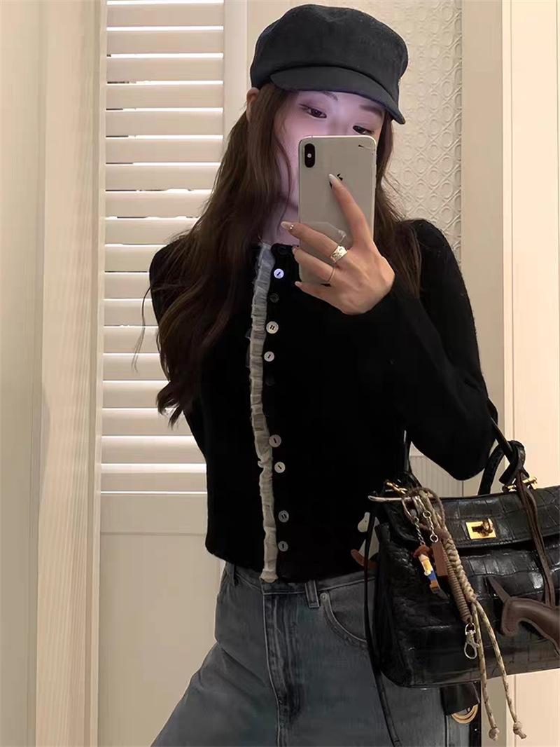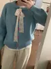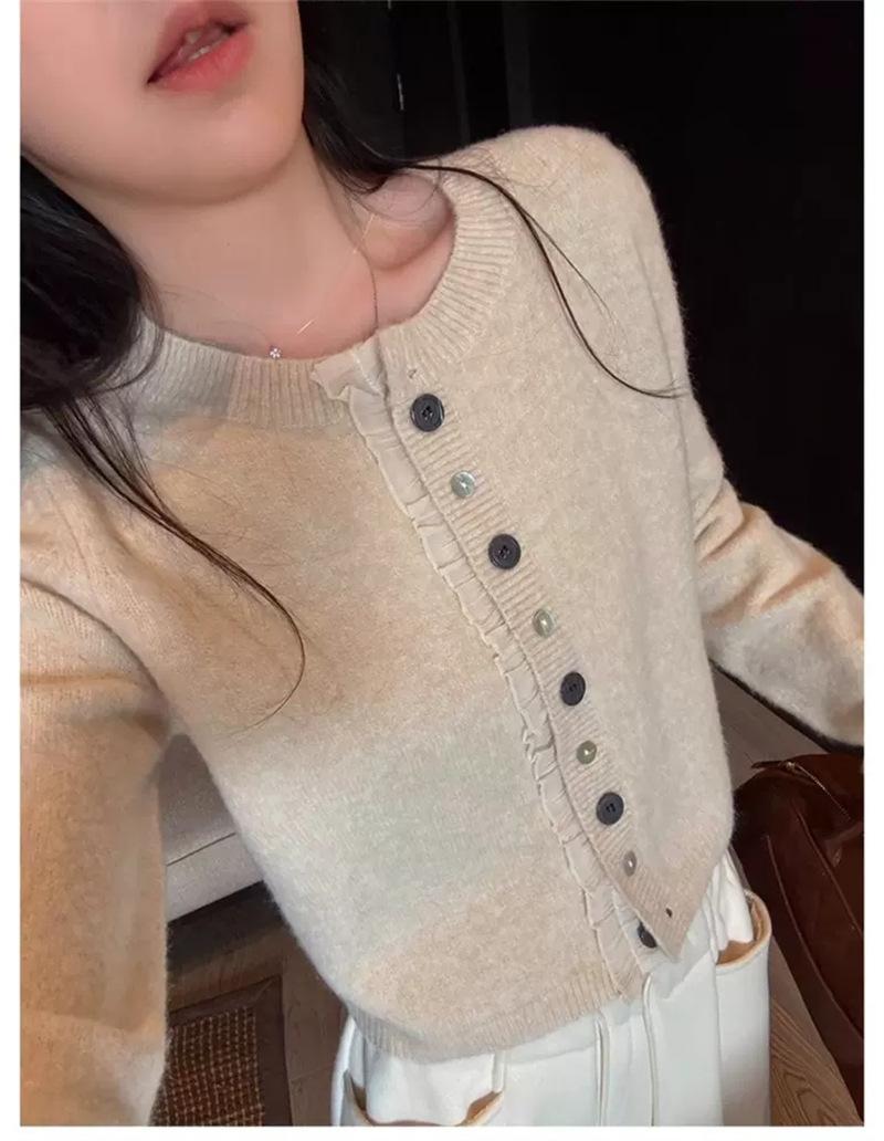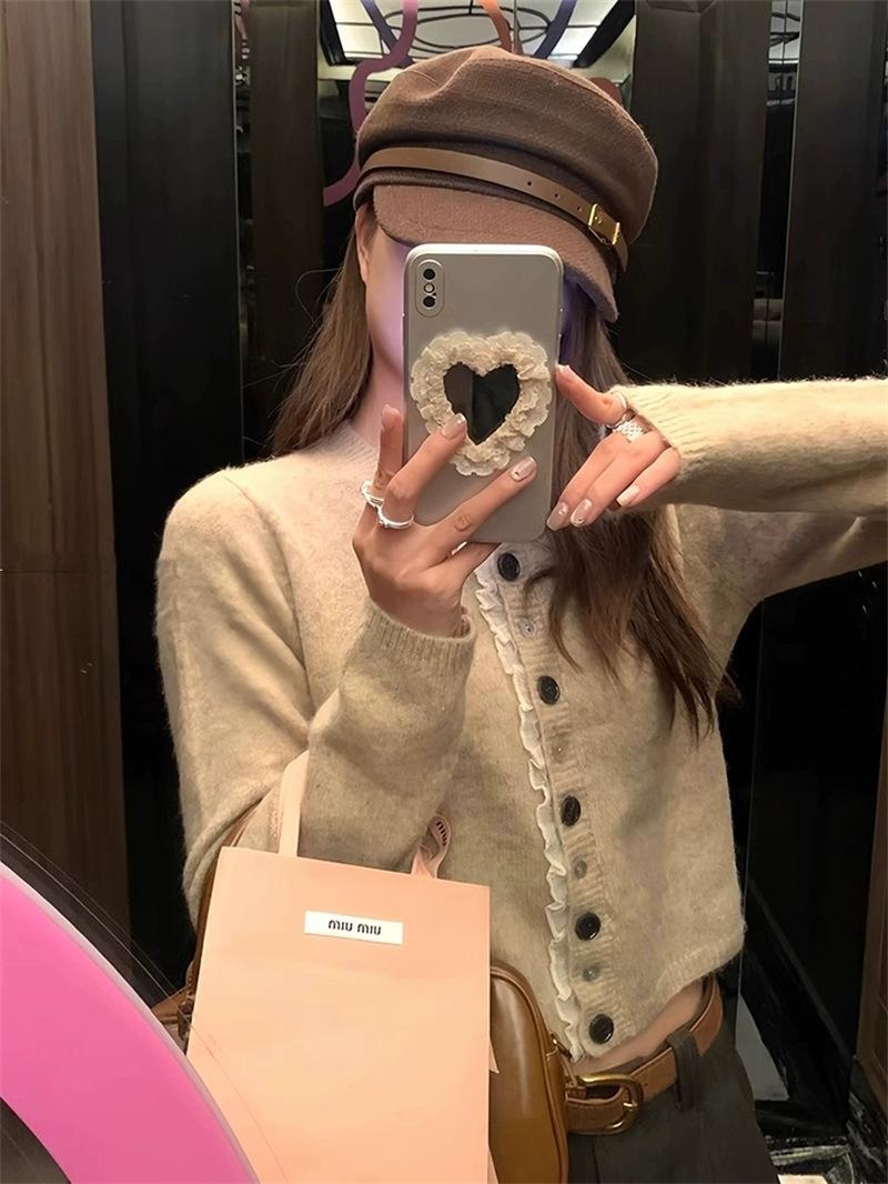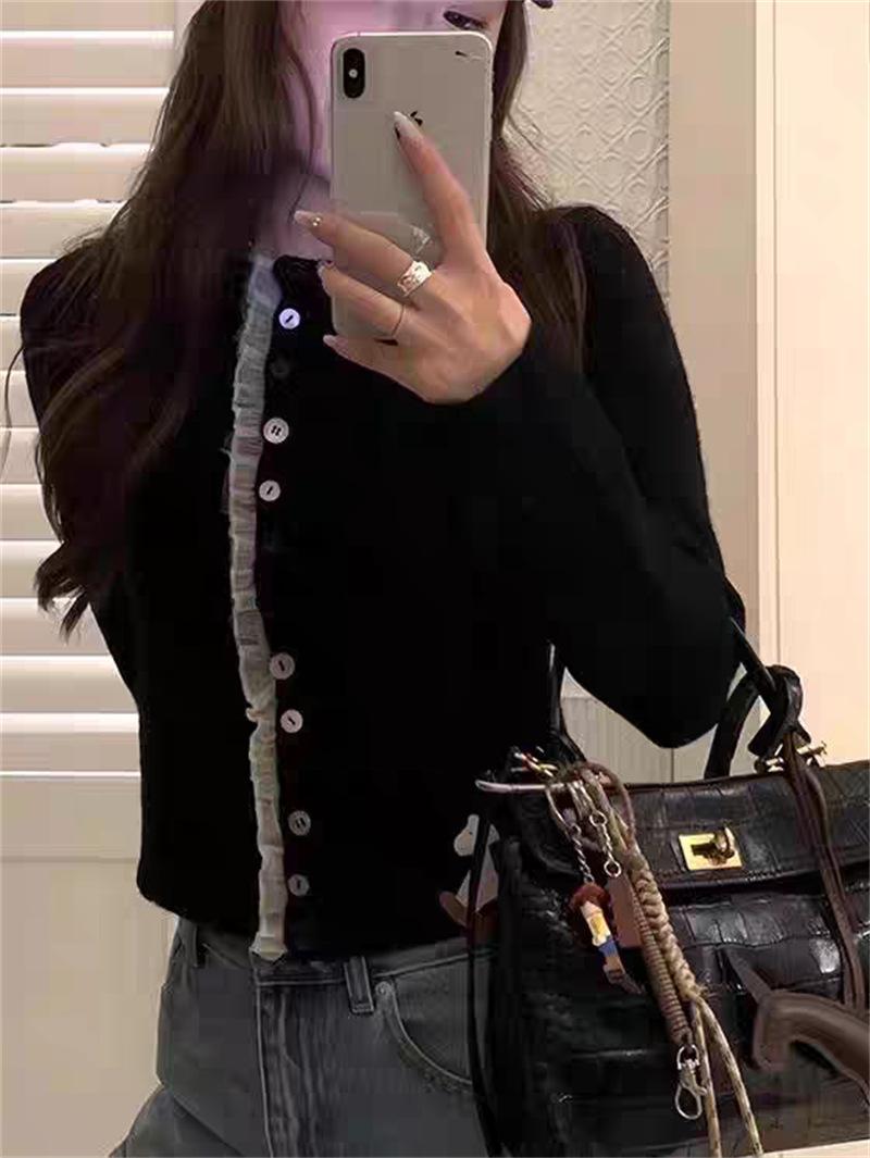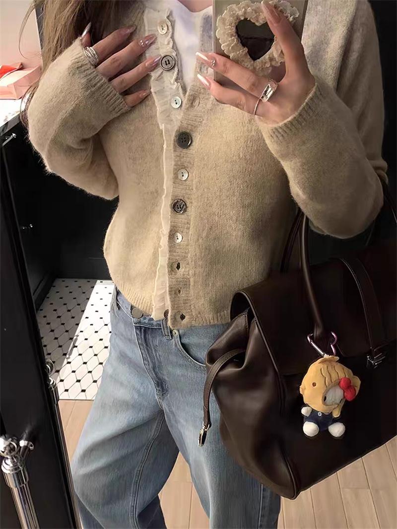 Diseño Patchwork de Encaje 2025 Nuevo Nicho Coreano Suave para Ir al Trabajo Versátil Cárdigan de Punto de Manga Larga Suéter Mujer Otoño