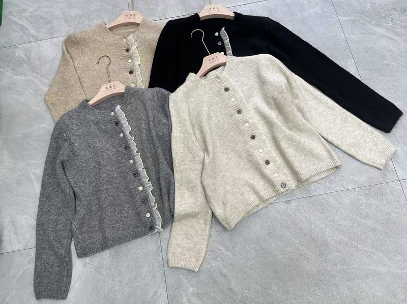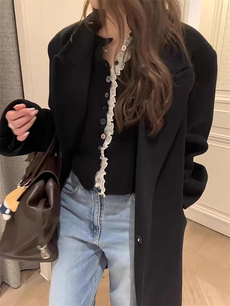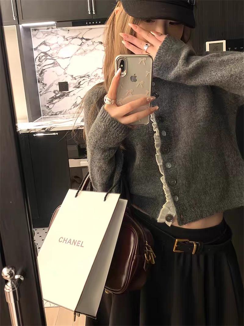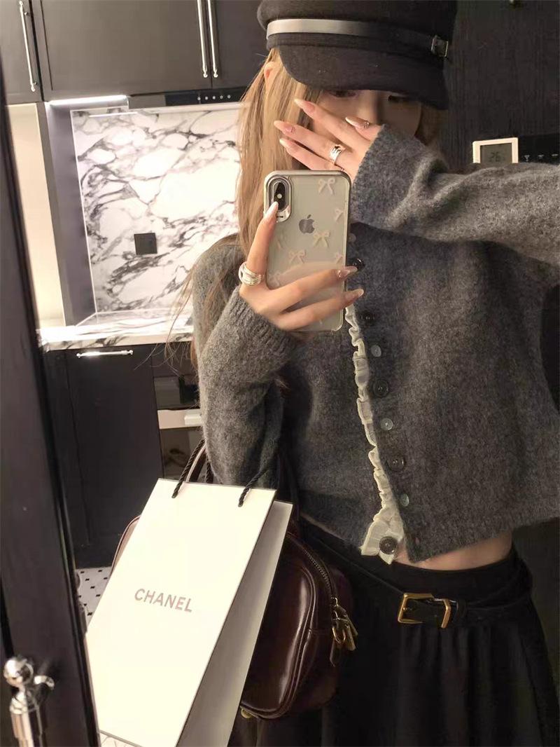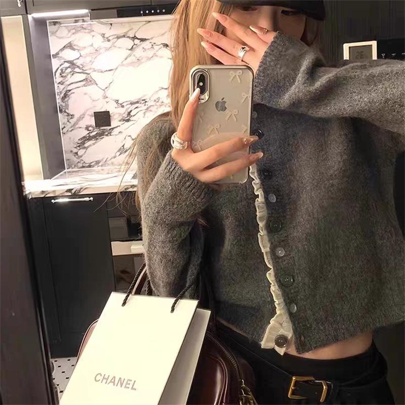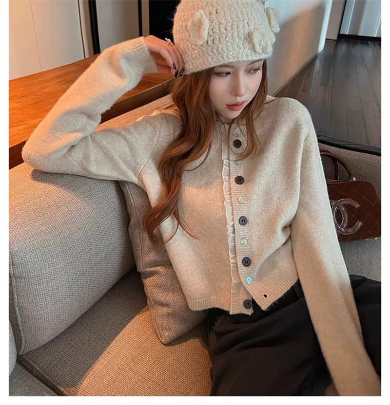 Diseño Patchwork de Encaje 2025 Nuevo Nicho Coreano Suave para Ir al Trabajo Versátil Cárdigan de Punto de Manga Larga Suéter Mujer Otoño