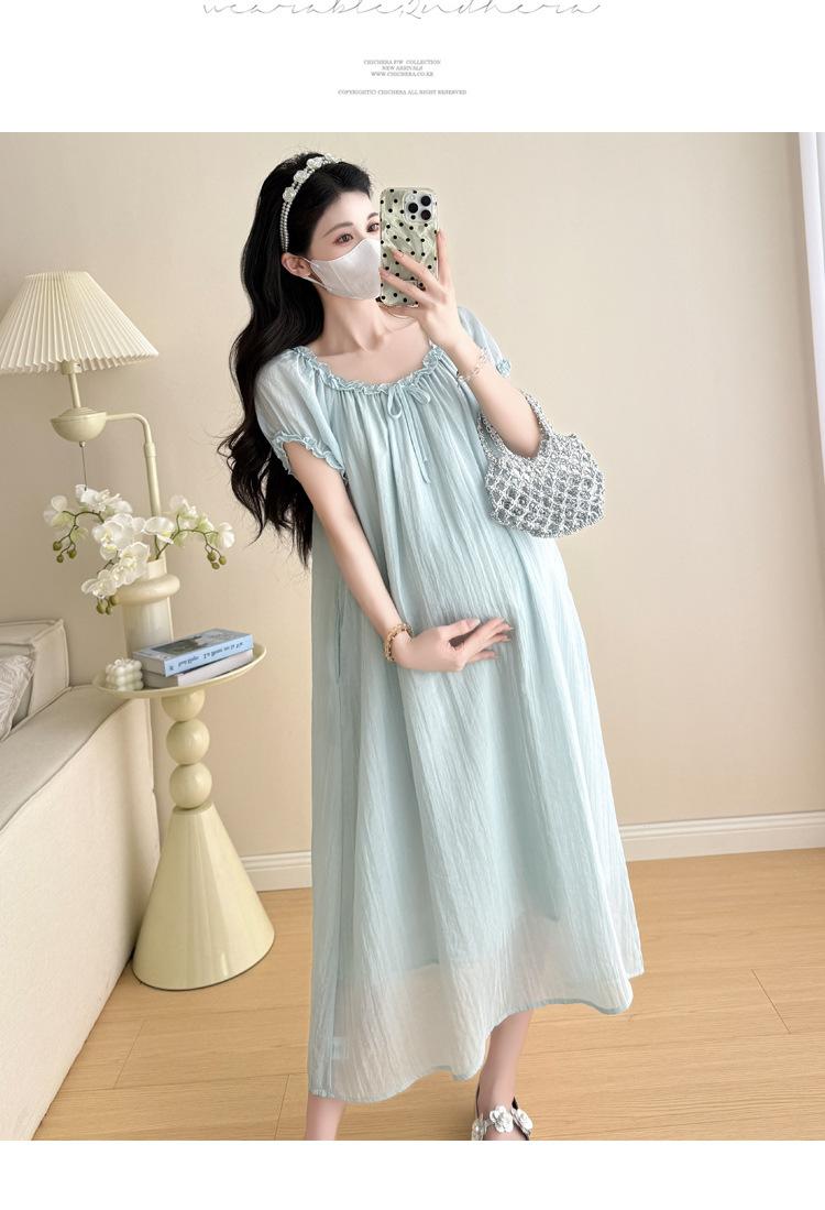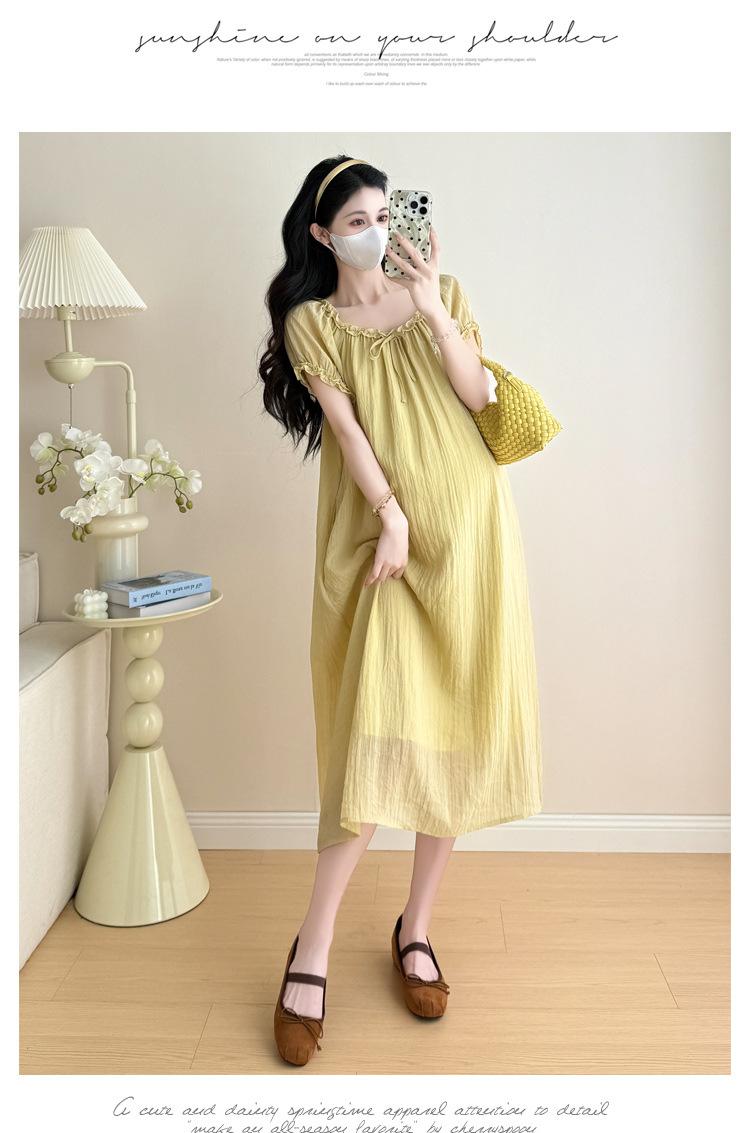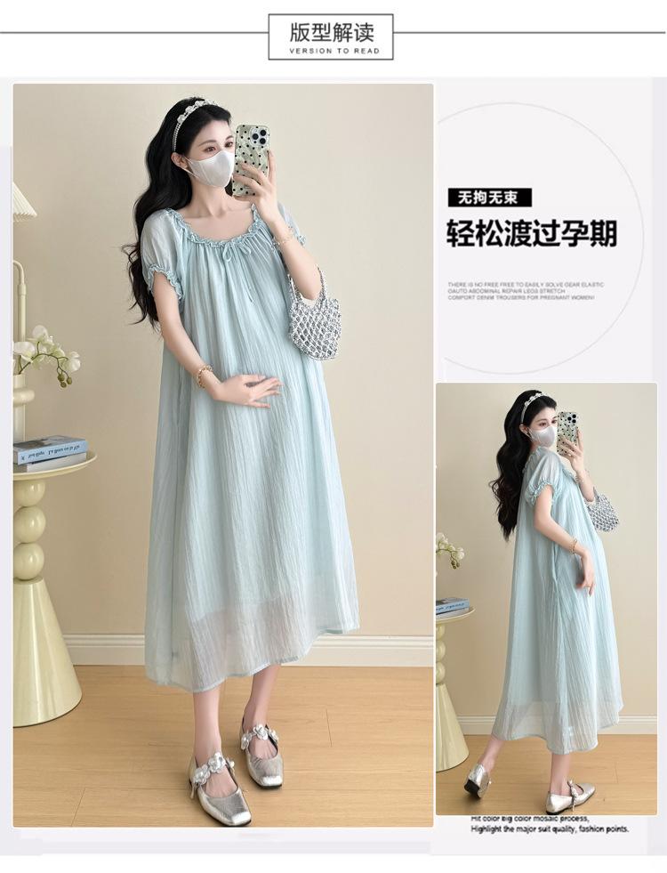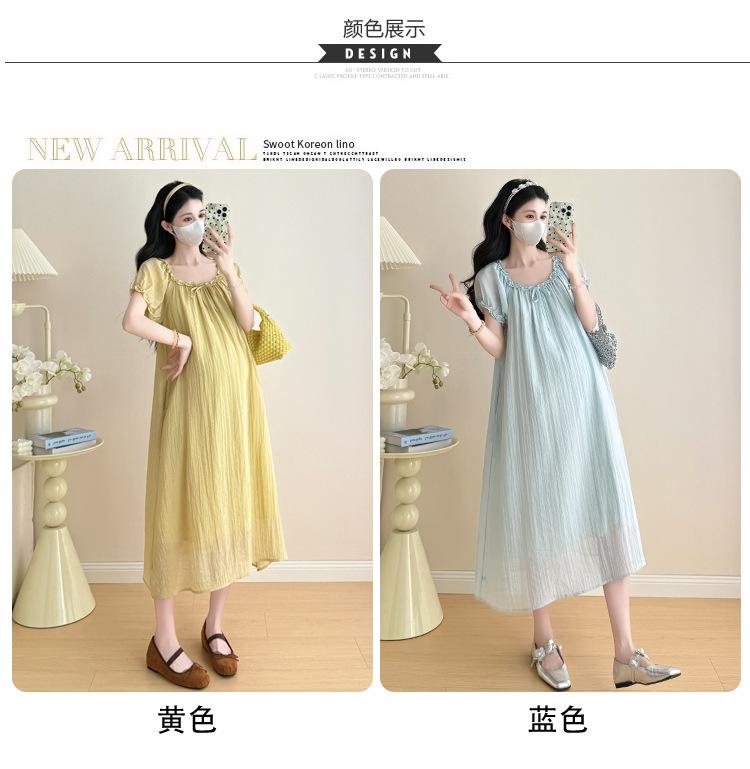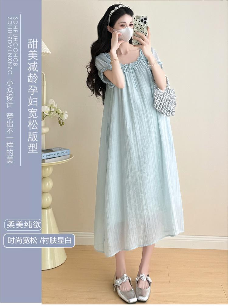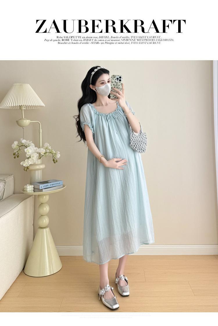 Ropa de Maternidad 2025 Verano Nuevo Estilo Coreano Moda Dulce Reductor de Edad Vestido de Maternidad Suelto de Largo Medio