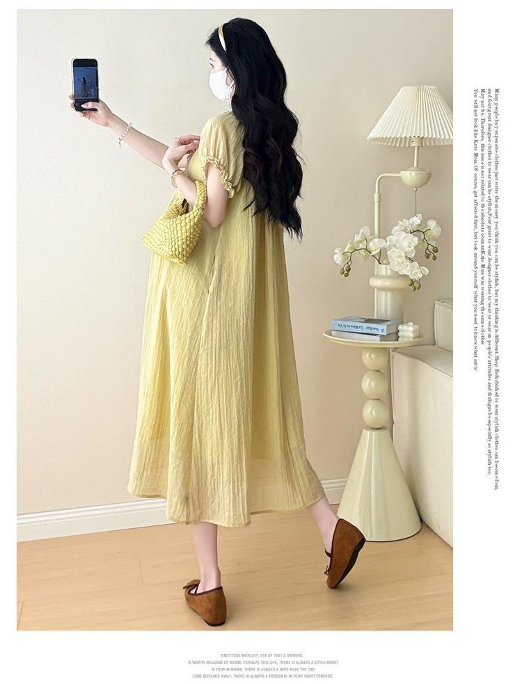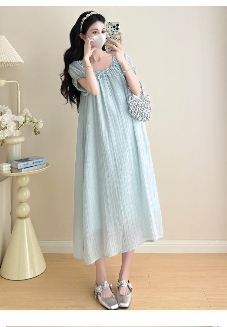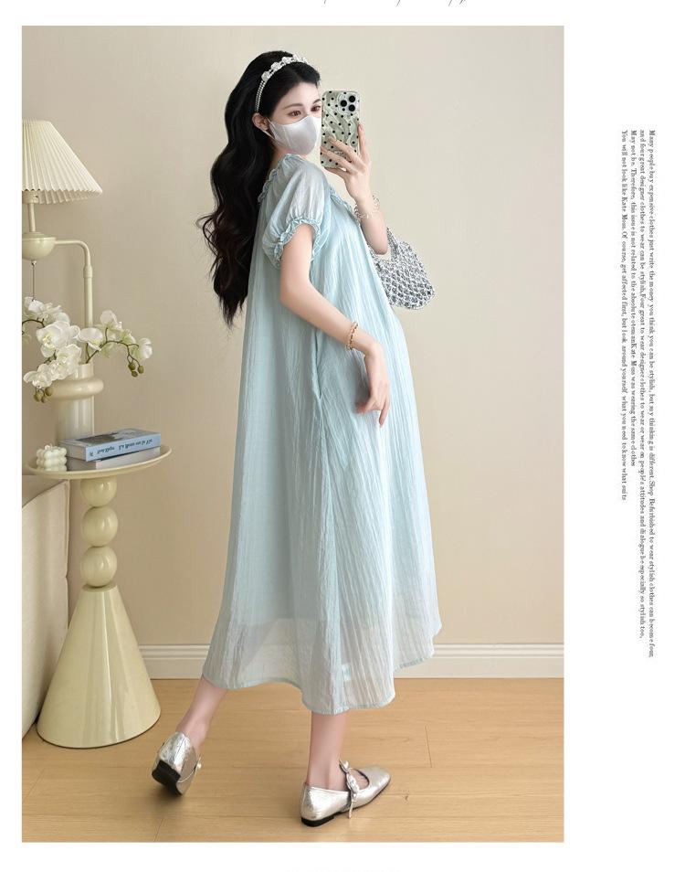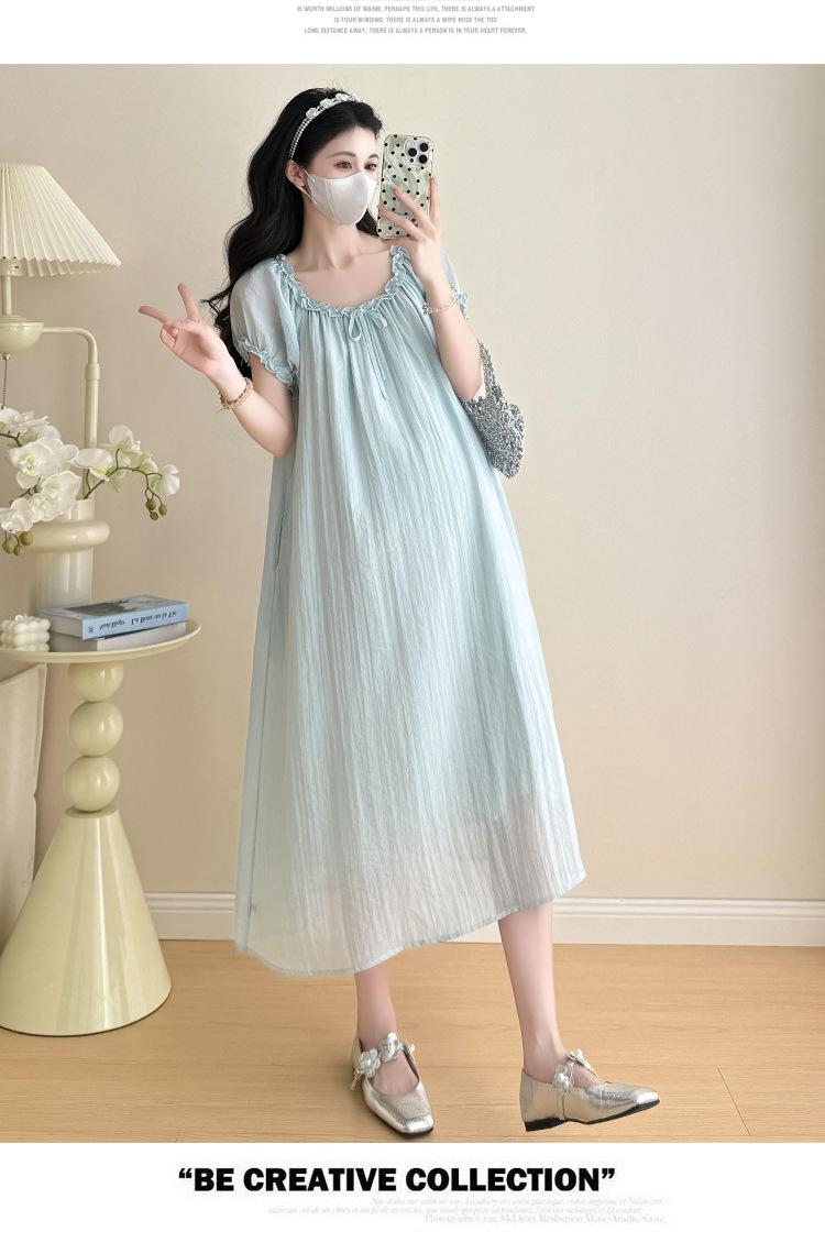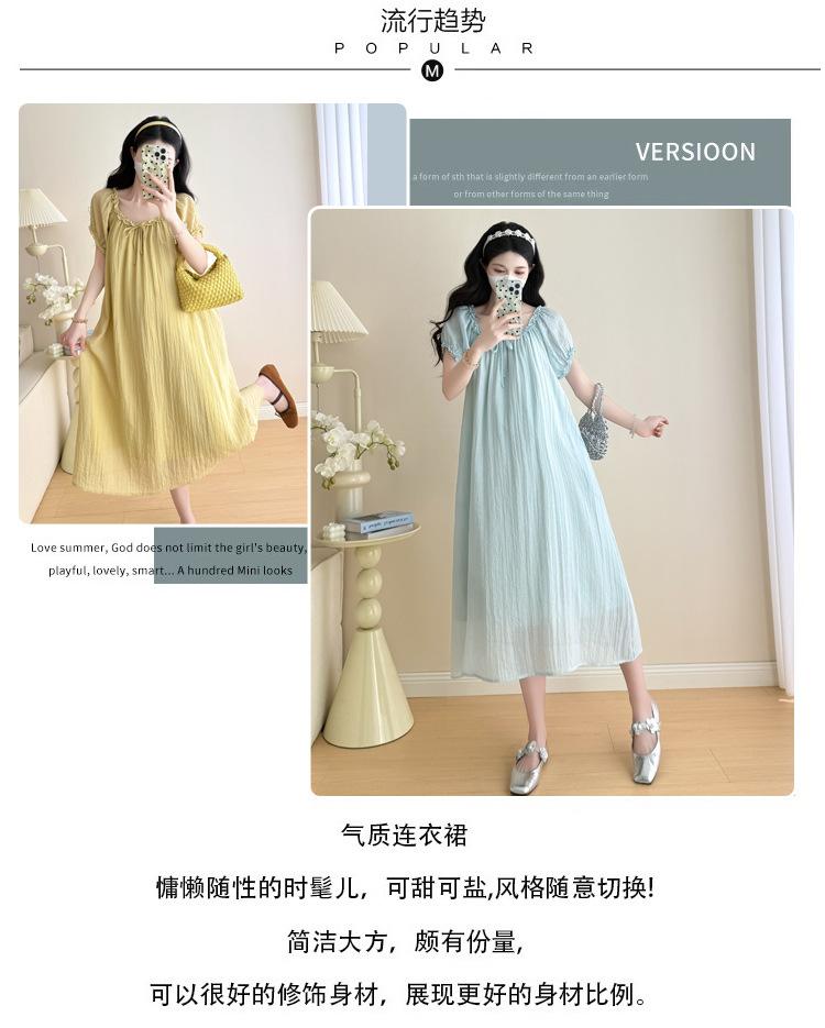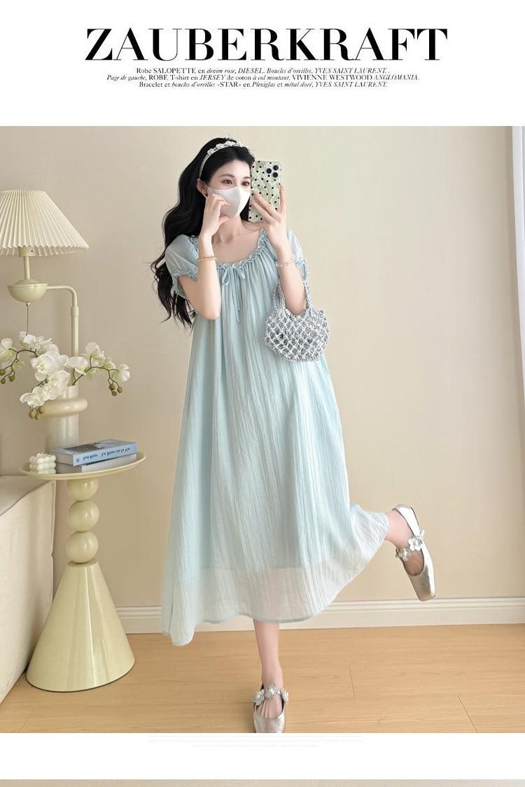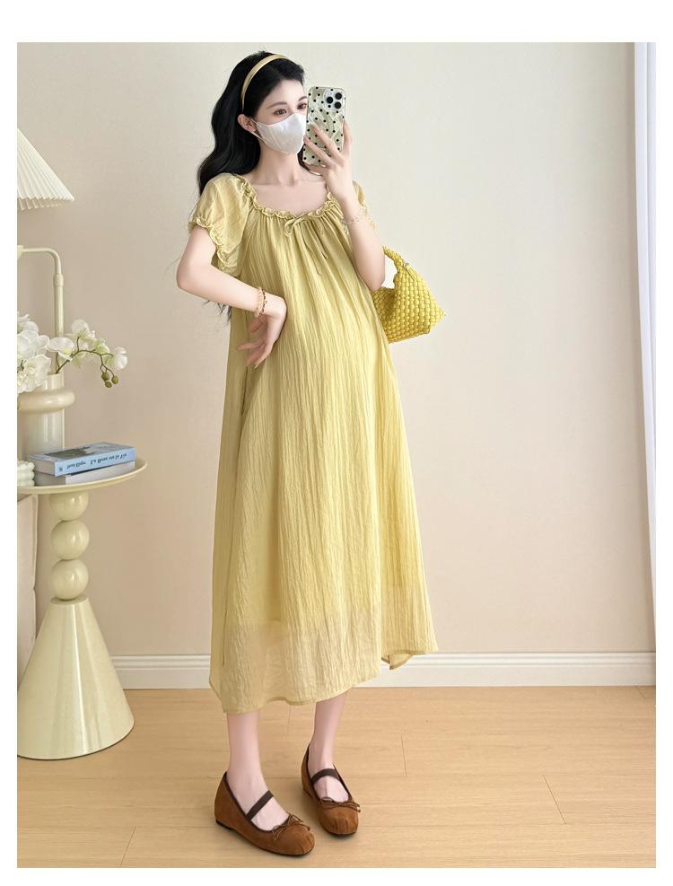 Ropa de Maternidad 2025 Verano Nuevo Estilo Coreano Moda Dulce Reductor de Edad Vestido de Maternidad Suelto de Largo Medio