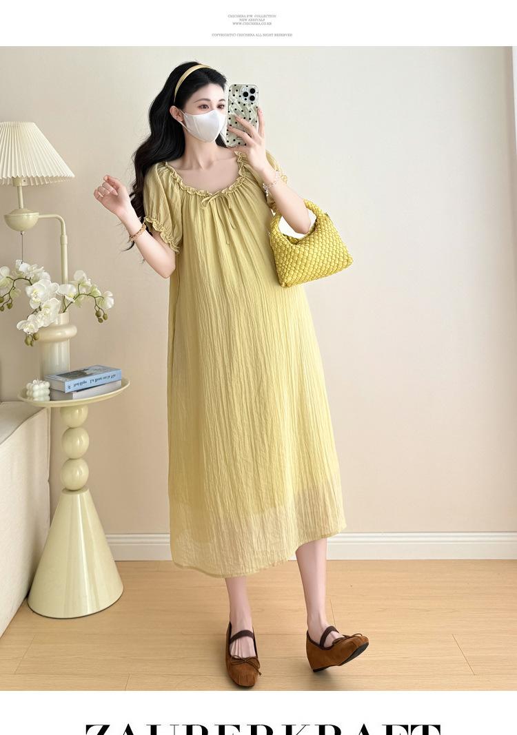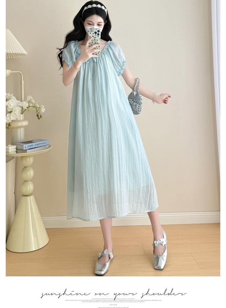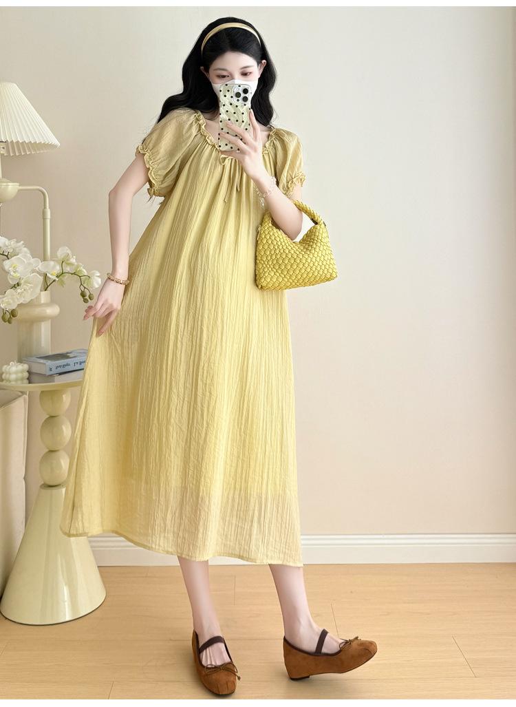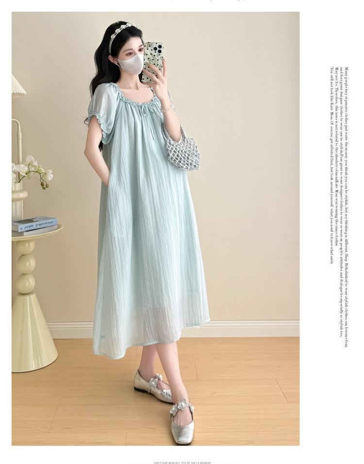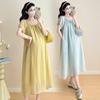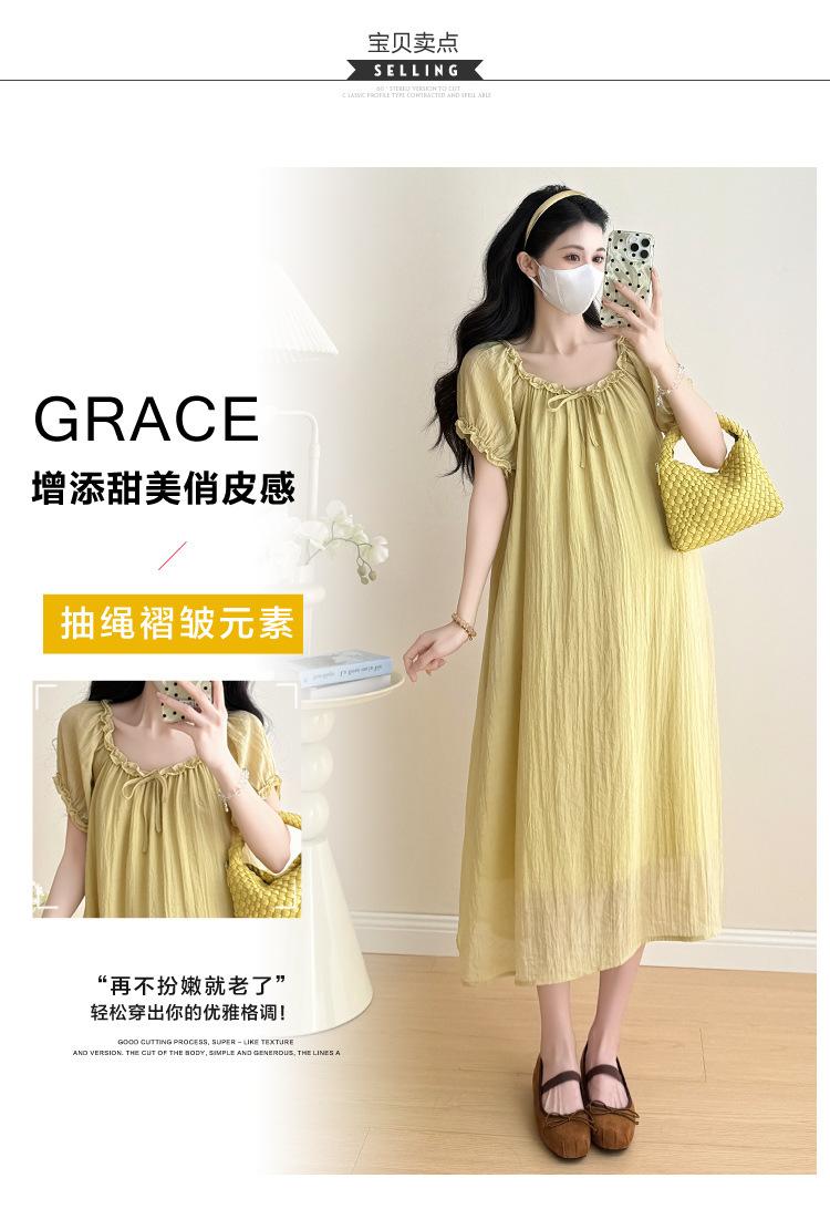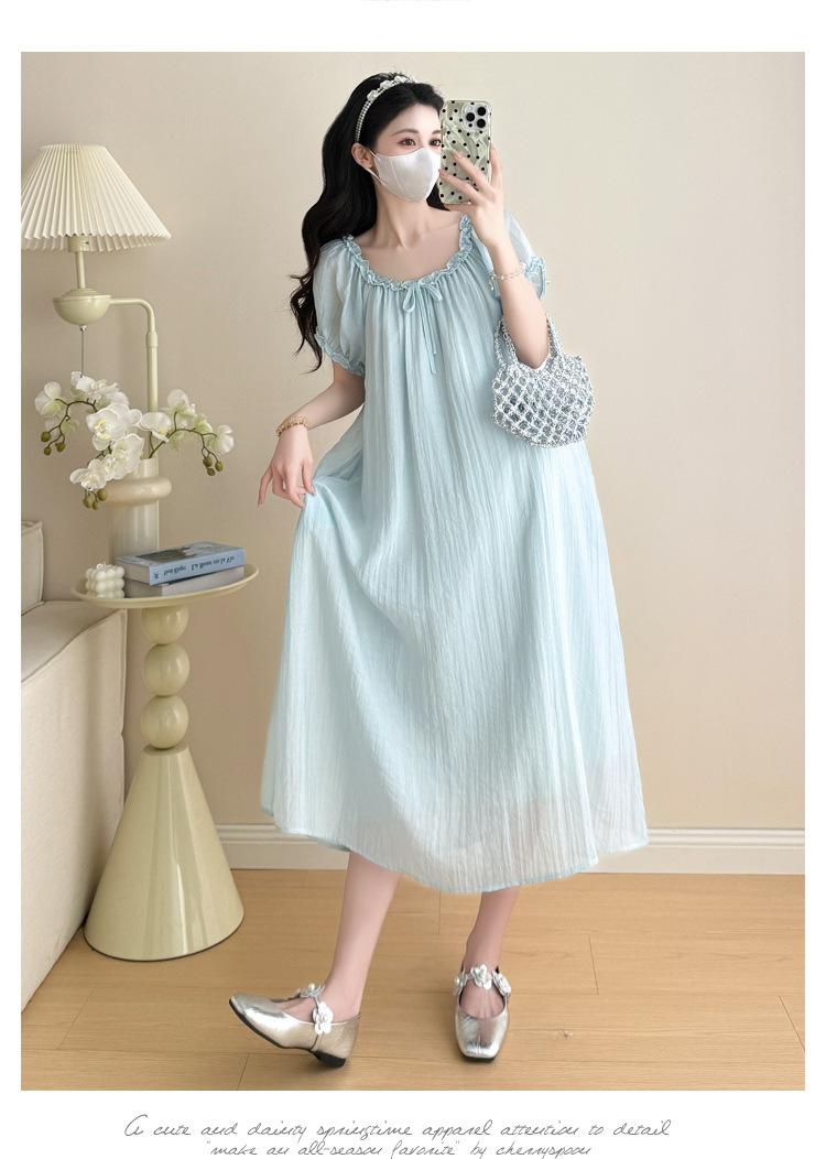 Ropa de Maternidad 2025 Verano Nuevo Estilo Coreano Moda Dulce Reductor de Edad Vestido de Maternidad Suelto de Largo Medio