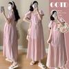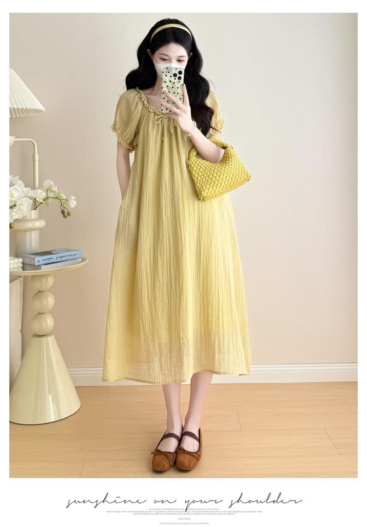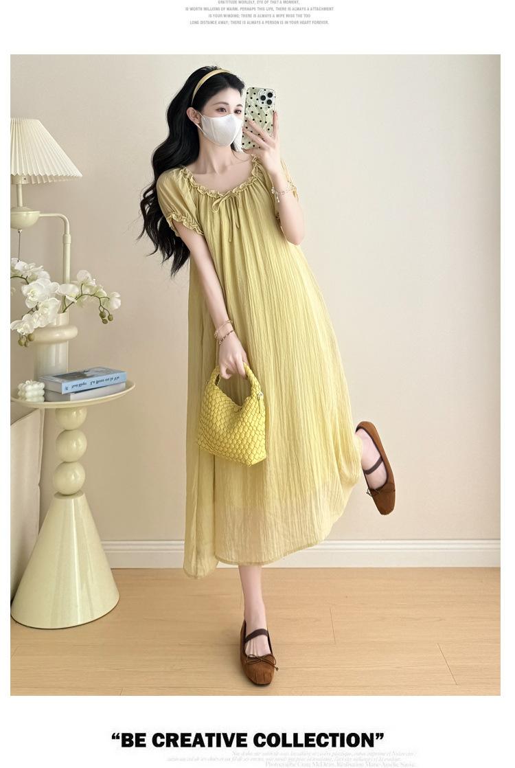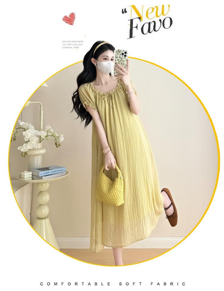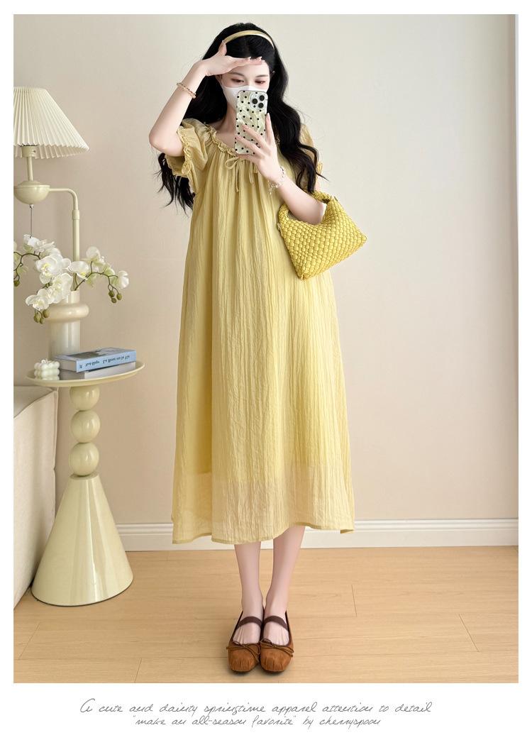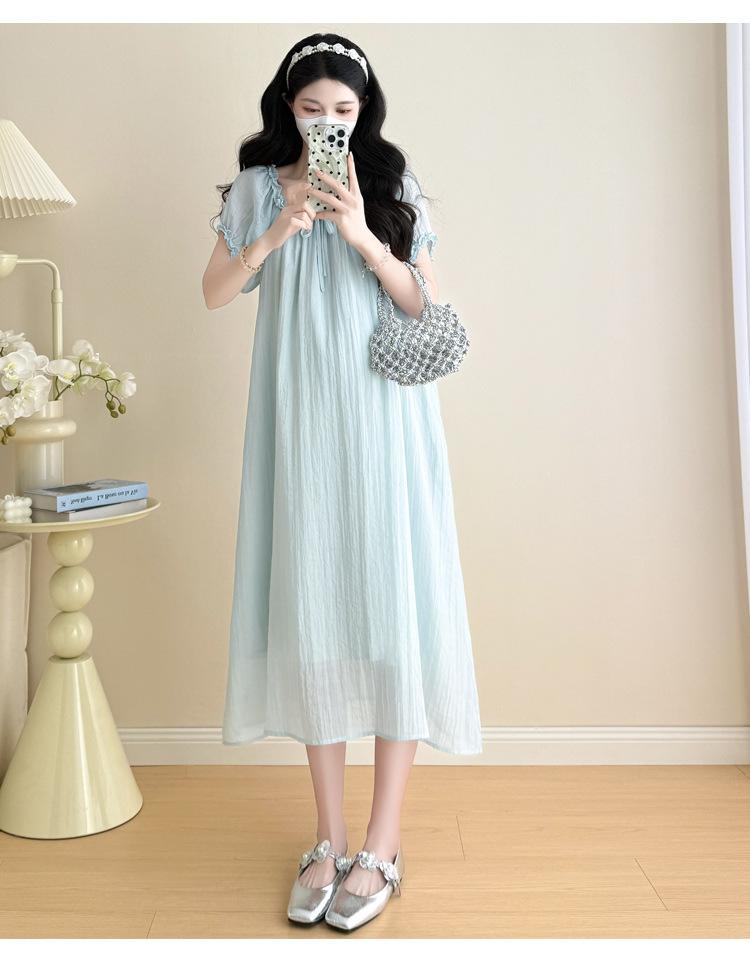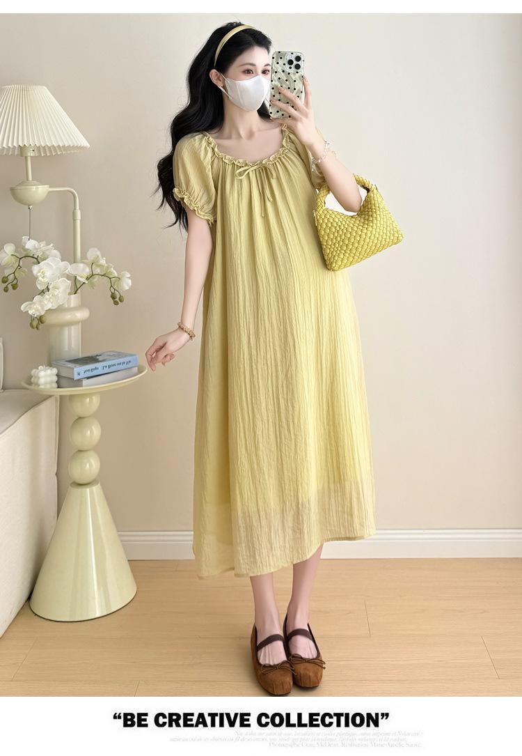 Ropa de Maternidad 2025 Verano Nuevo Estilo Coreano Moda Dulce Reductor de Edad Vestido de Maternidad Suelto de Largo Medio