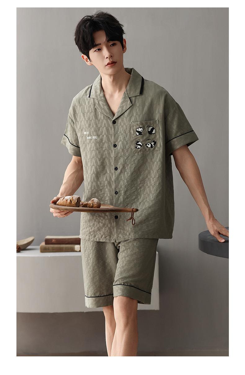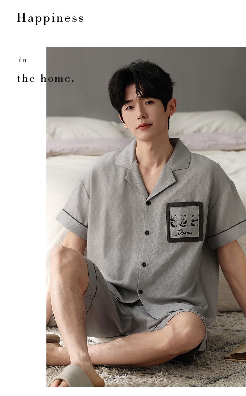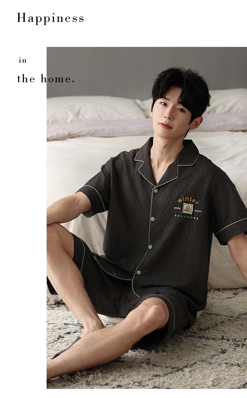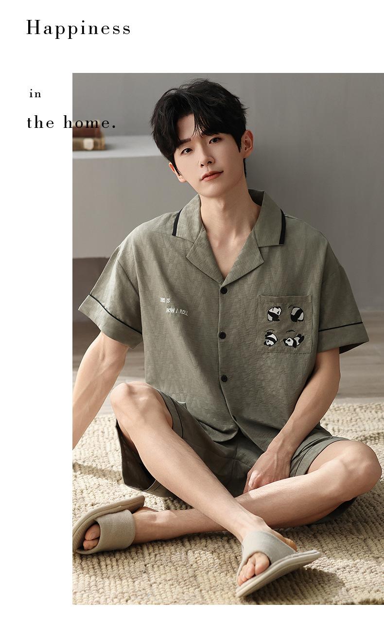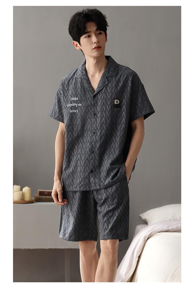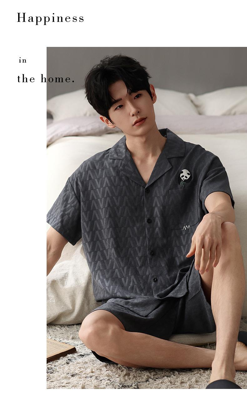 Pijama de Verano para Hombre, Shorts de Manga Corta, Algodón Nube Fino, Se Puede Usar Afuera, Talla Grande Ropa para el Hogar Juvenil, Traje de Verano