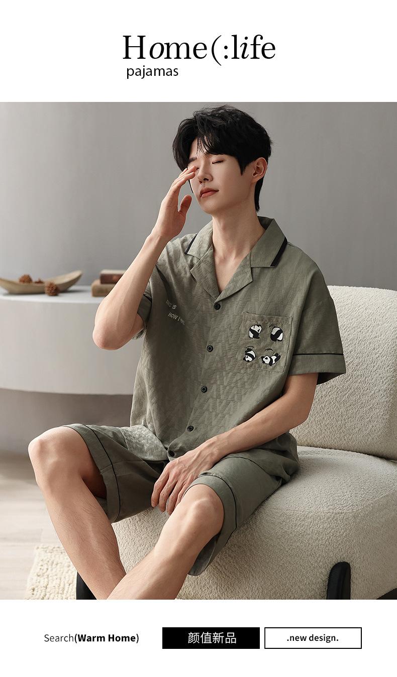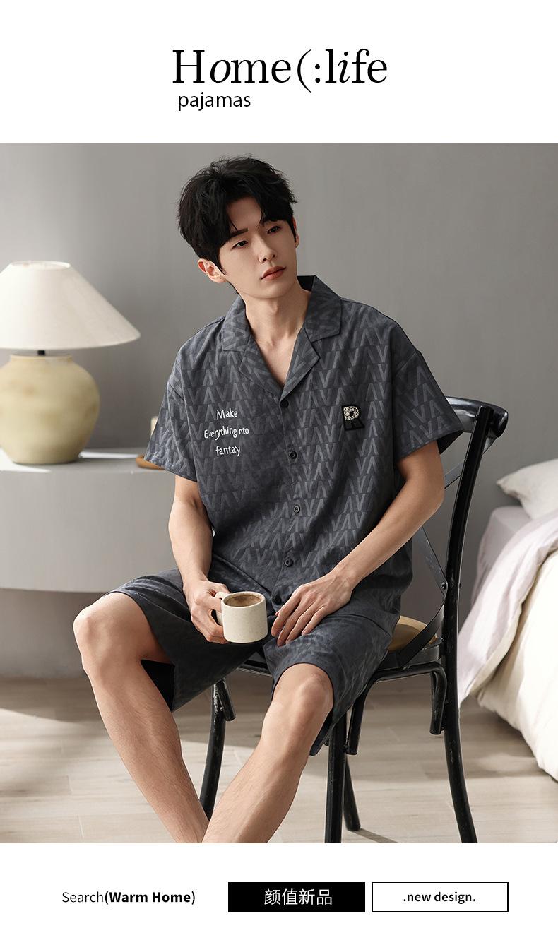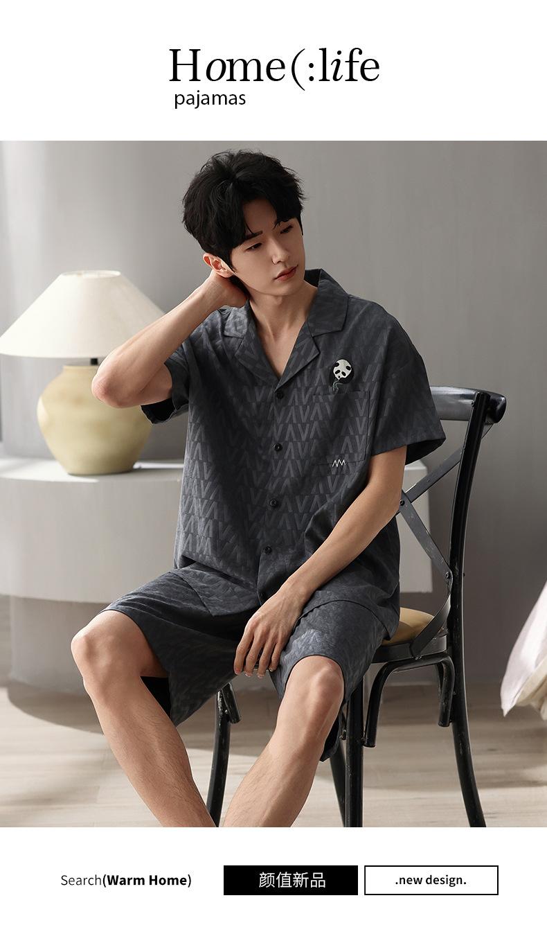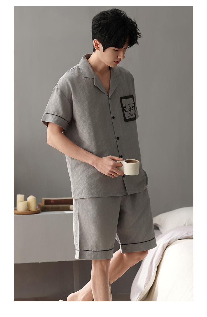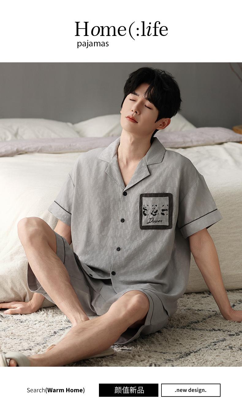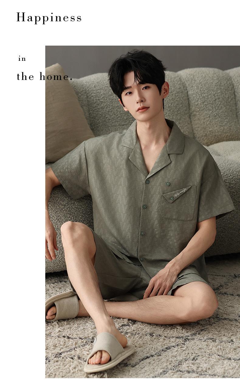Pijama de Verano para Hombre, Shorts de Manga Corta, Algodón Nube Fino, Se Puede Usar Afuera, Talla Grande Ropa para el Hogar Juvenil, Traje de Verano