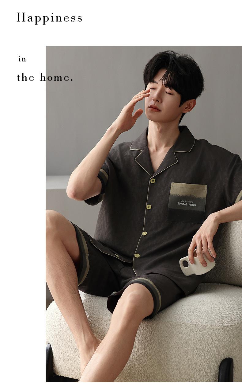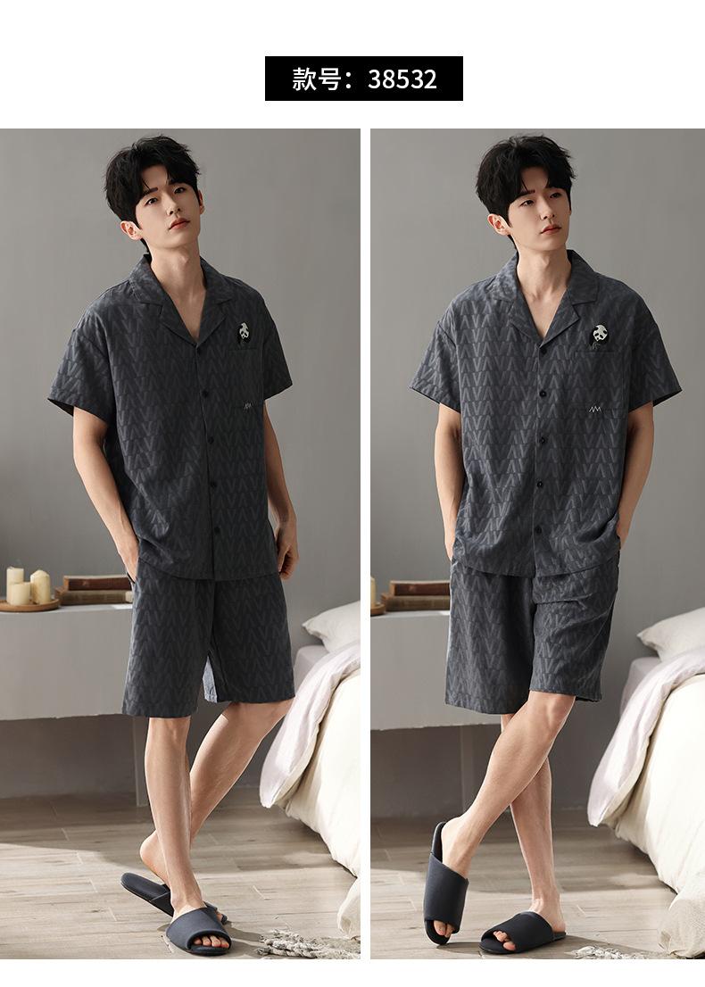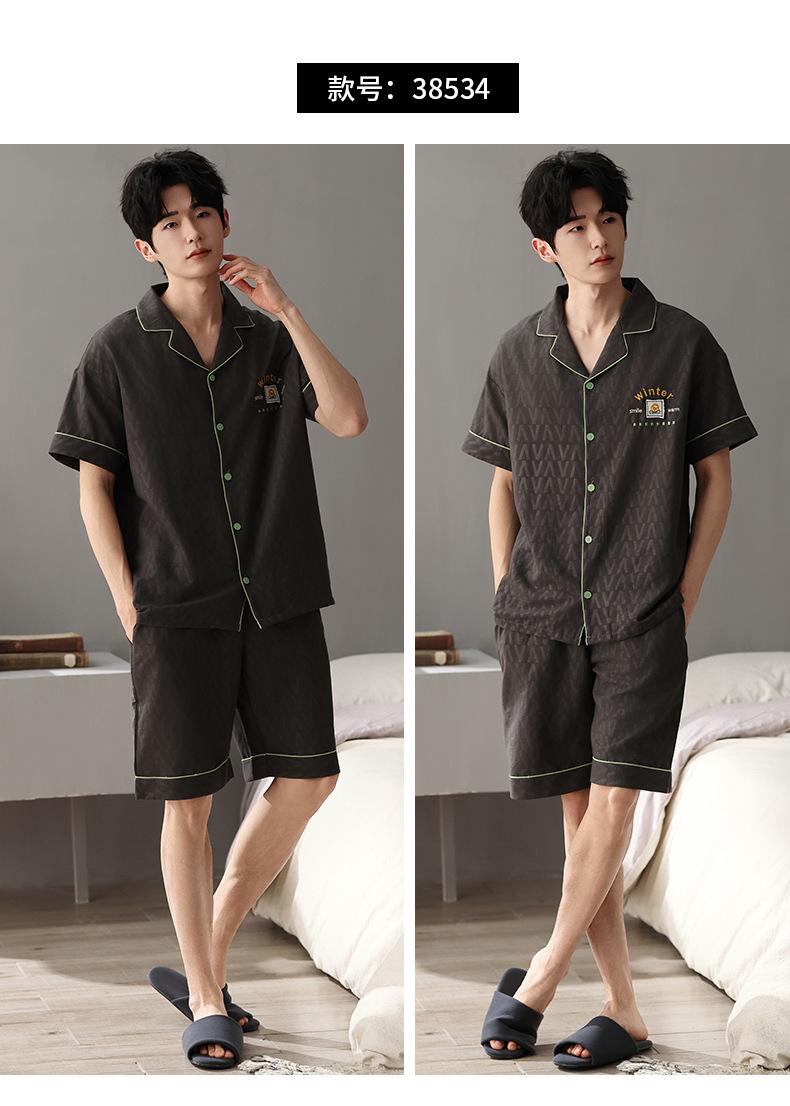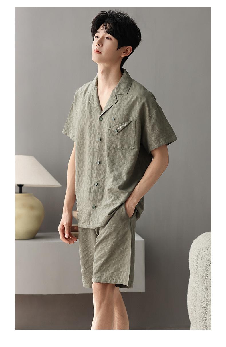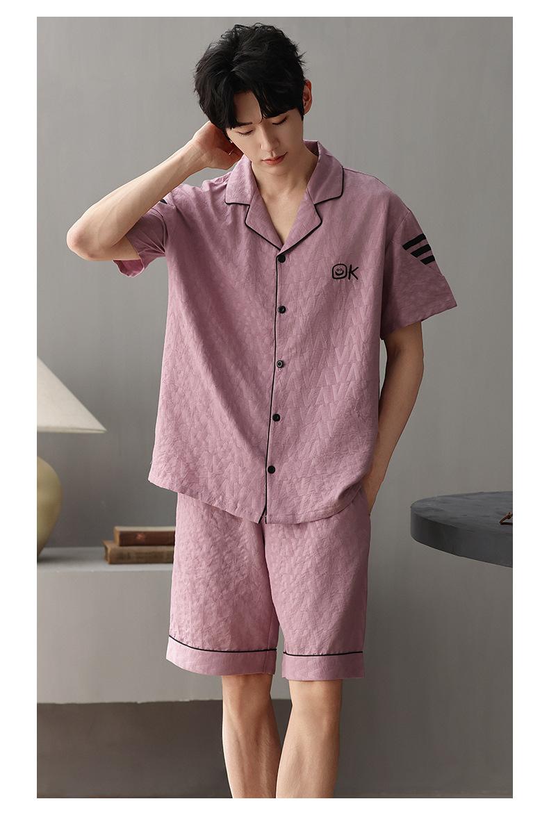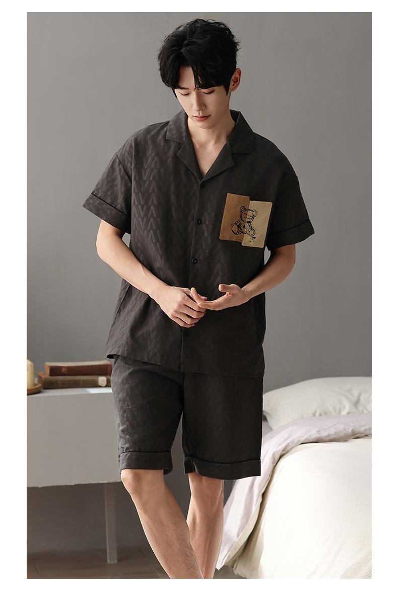 Pijama de Verano para Hombre, Shorts de Manga Corta, Algodón Nube Fino, Se Puede Usar Afuera, Talla Grande Ropa para el Hogar Juvenil, Traje de Verano