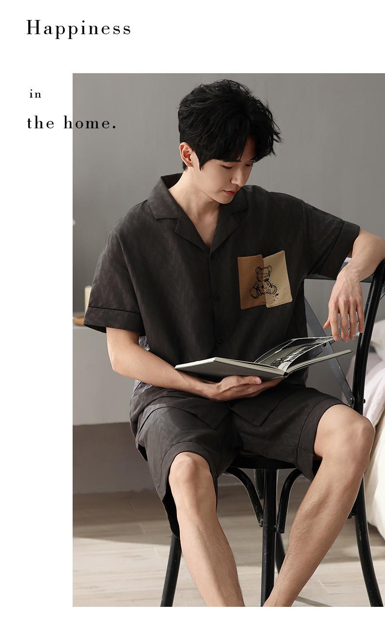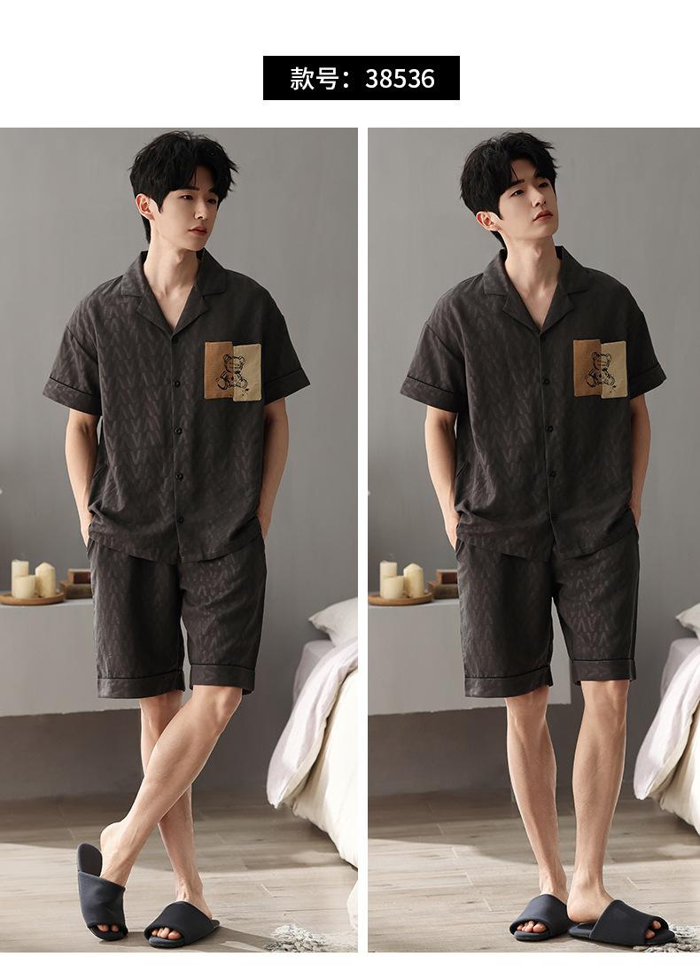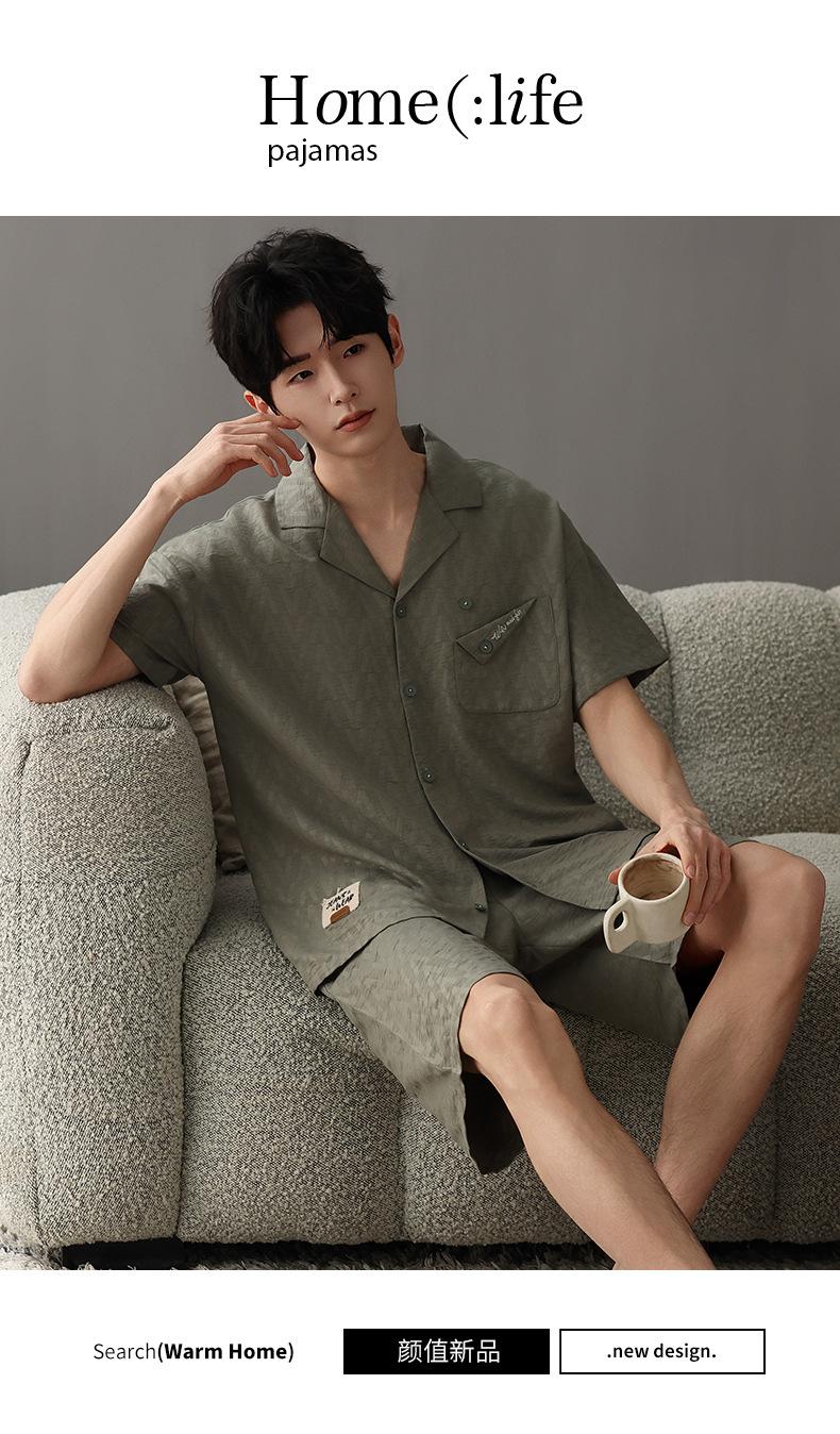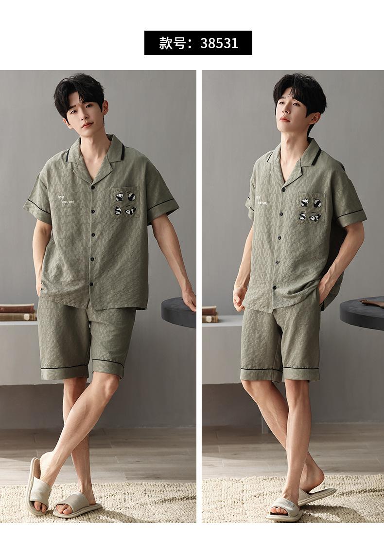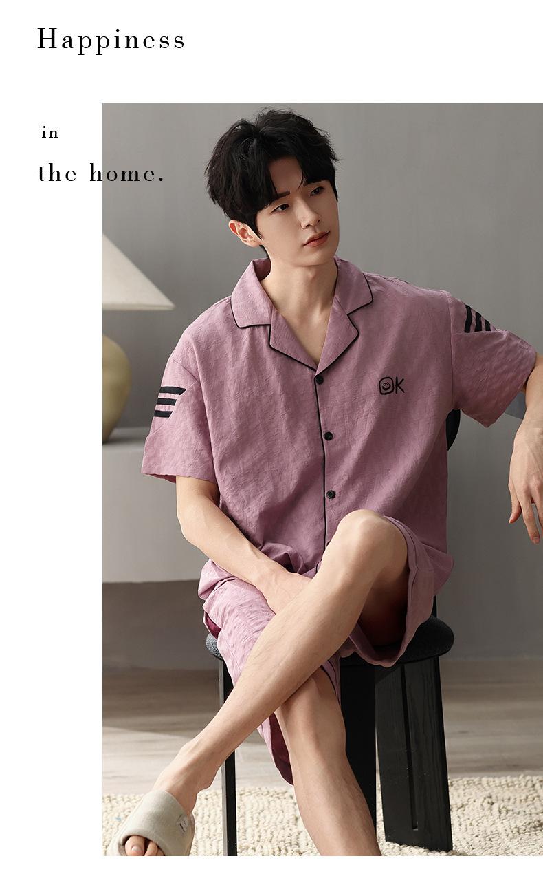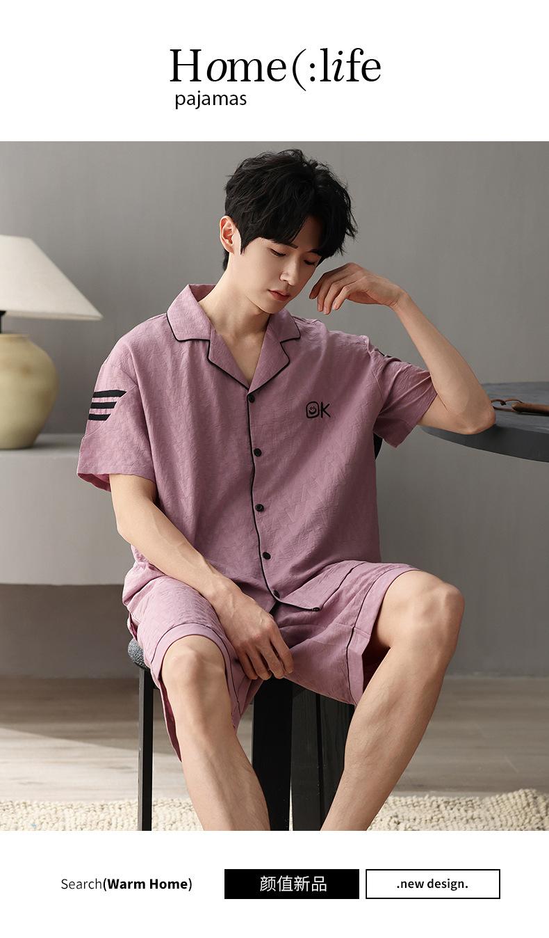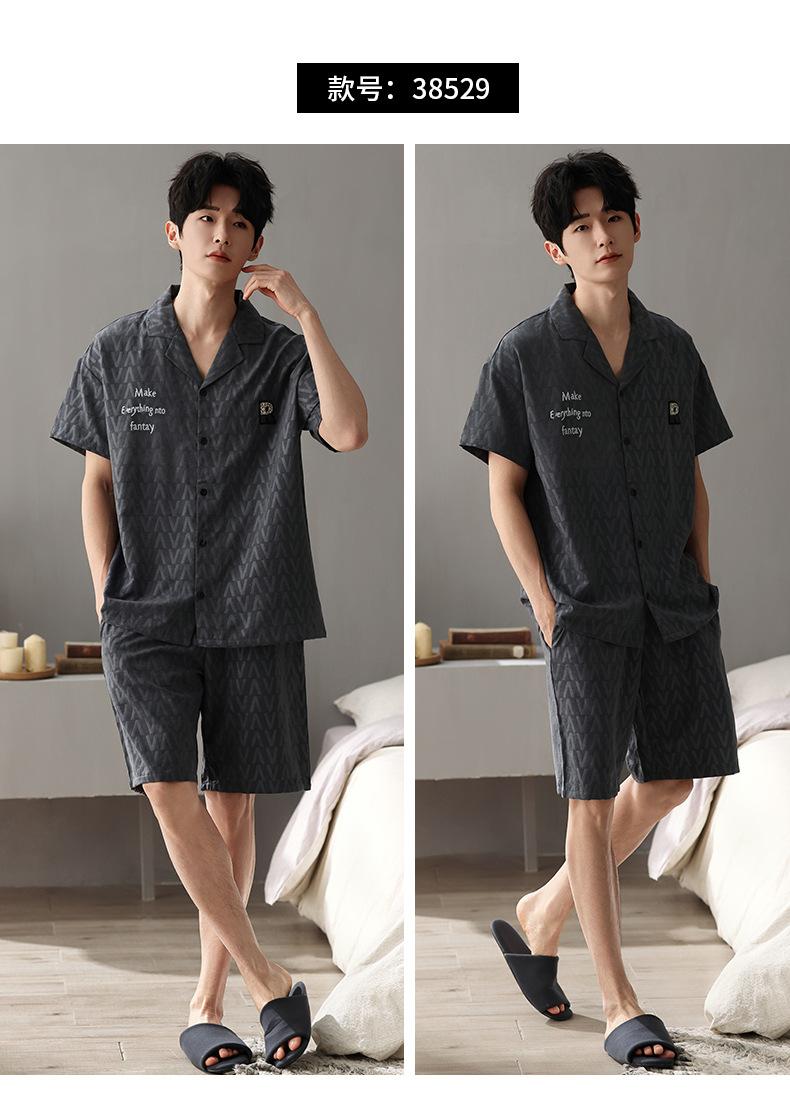 Pijama de Verano para Hombre, Shorts de Manga Corta, Algodón Nube Fino, Se Puede Usar Afuera, Talla Grande Ropa para el Hogar Juvenil, Traje de Verano
