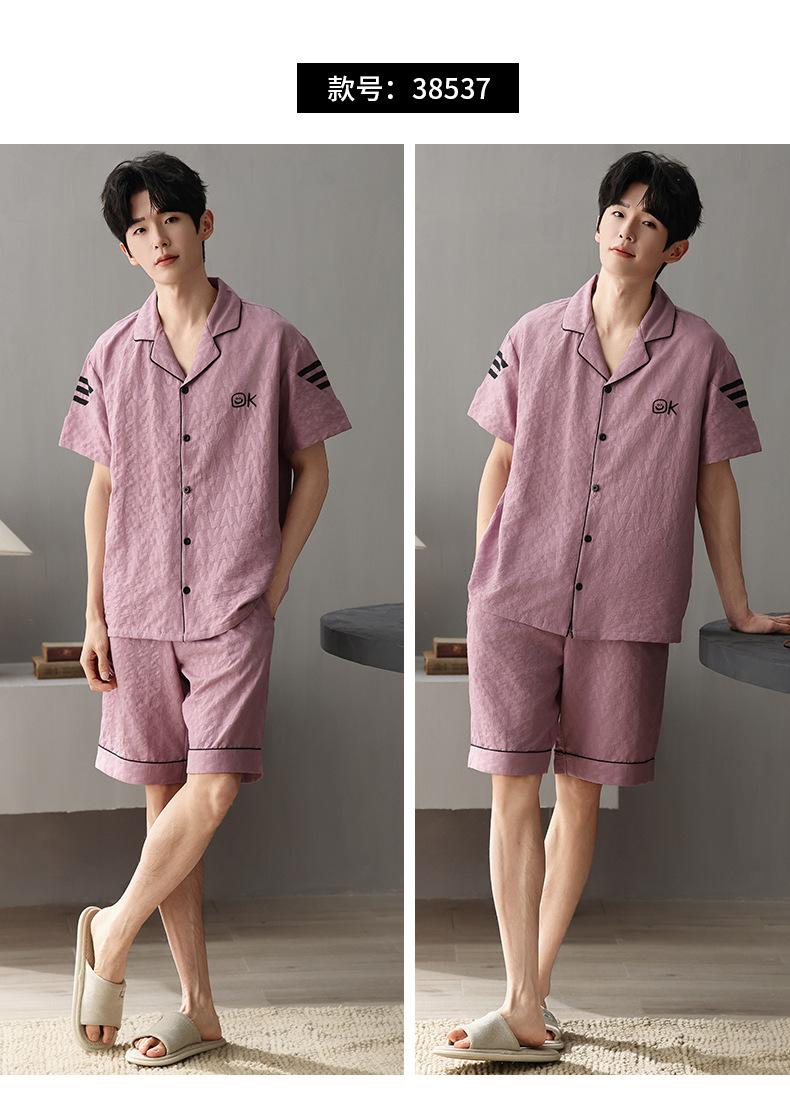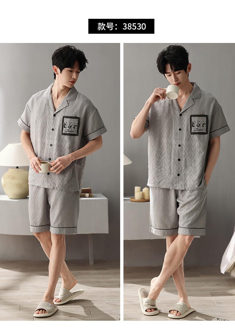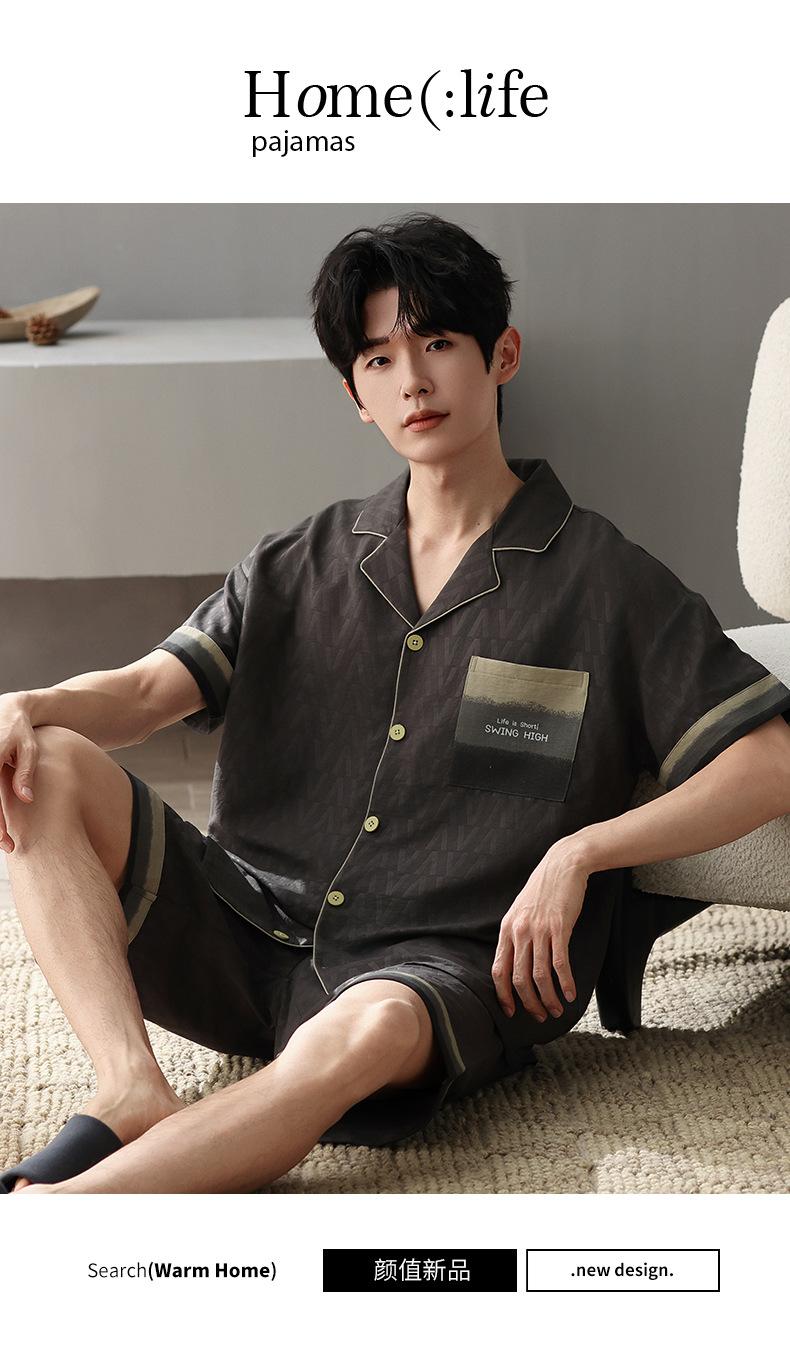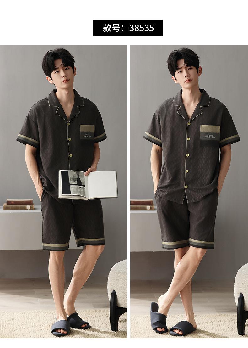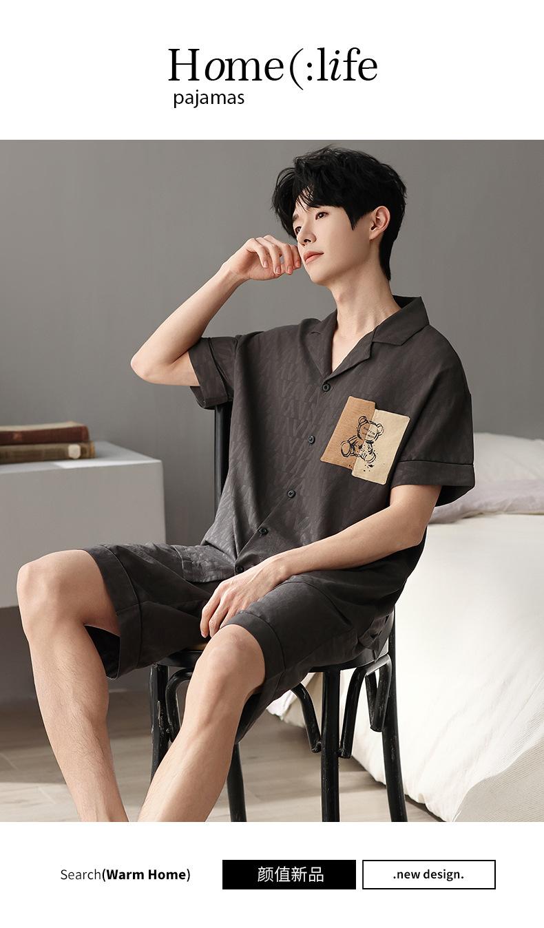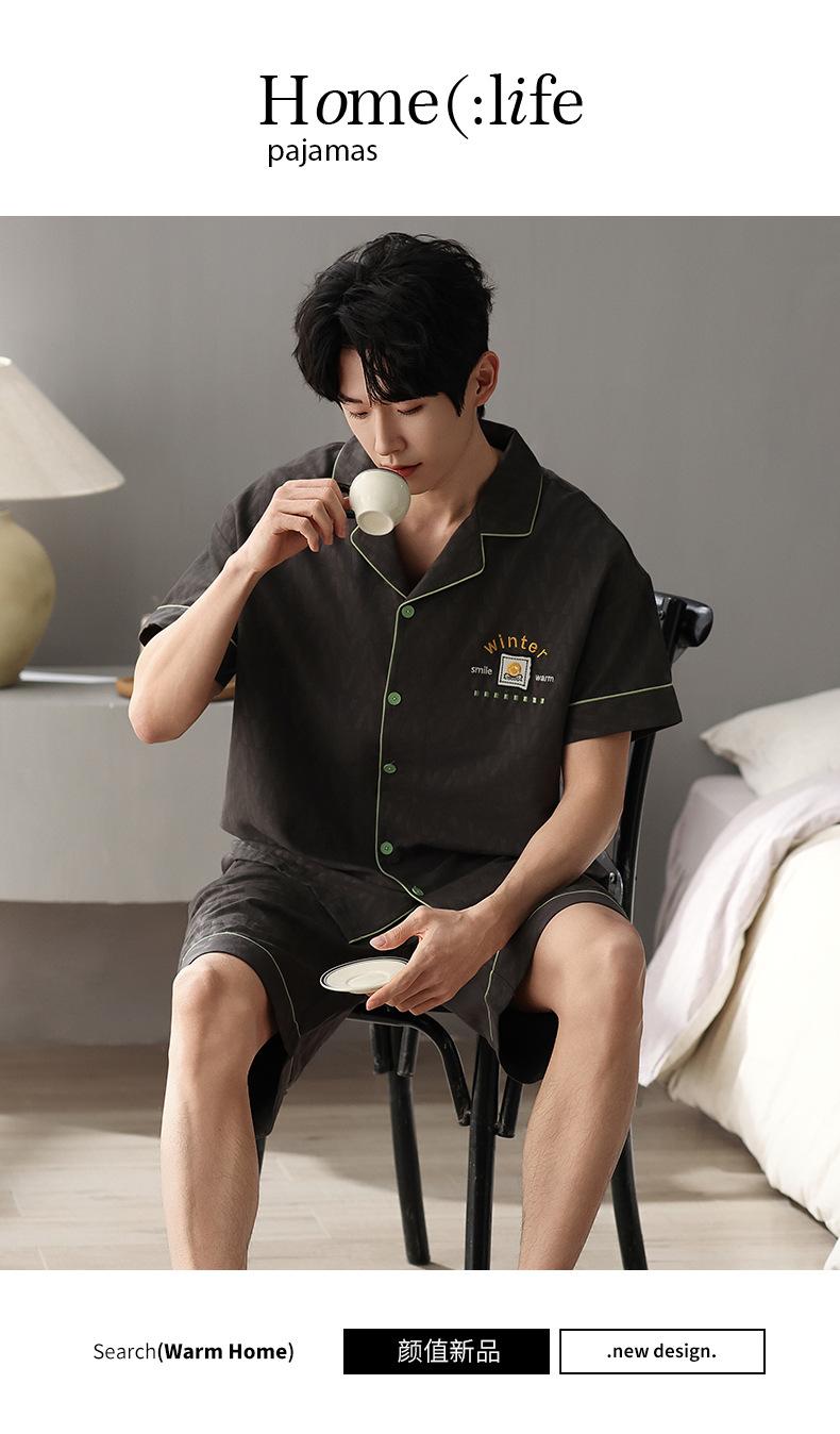 Pijama de Verano para Hombre, Shorts de Manga Corta, Algodón Nube Fino, Se Puede Usar Afuera, Talla Grande Ropa para el Hogar Juvenil, Traje de Verano