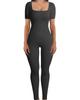 Amazon Ropa de Mujer de Comercio Exterior Europeo y Americano Nuevo Otoño e Invierno Acanalado Cuello Cuadrado Levanta Caderas Adelgazante Sexy Mono