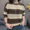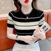 Primavera y Verano 2025 Nueva Ropa de Punto a Rayas para Mujer Moda Casual Combinable Suéter Calado Adelgazante Top Reductor de Edad