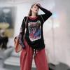 Otoño/Invierno 2025 Nuevo Ropa de Mujer ins Marca de Tendencia Urbana Capa Base Estampada Bloque de Color Contraste Color Sobrecostura Camiseta Manga Larga Mujer