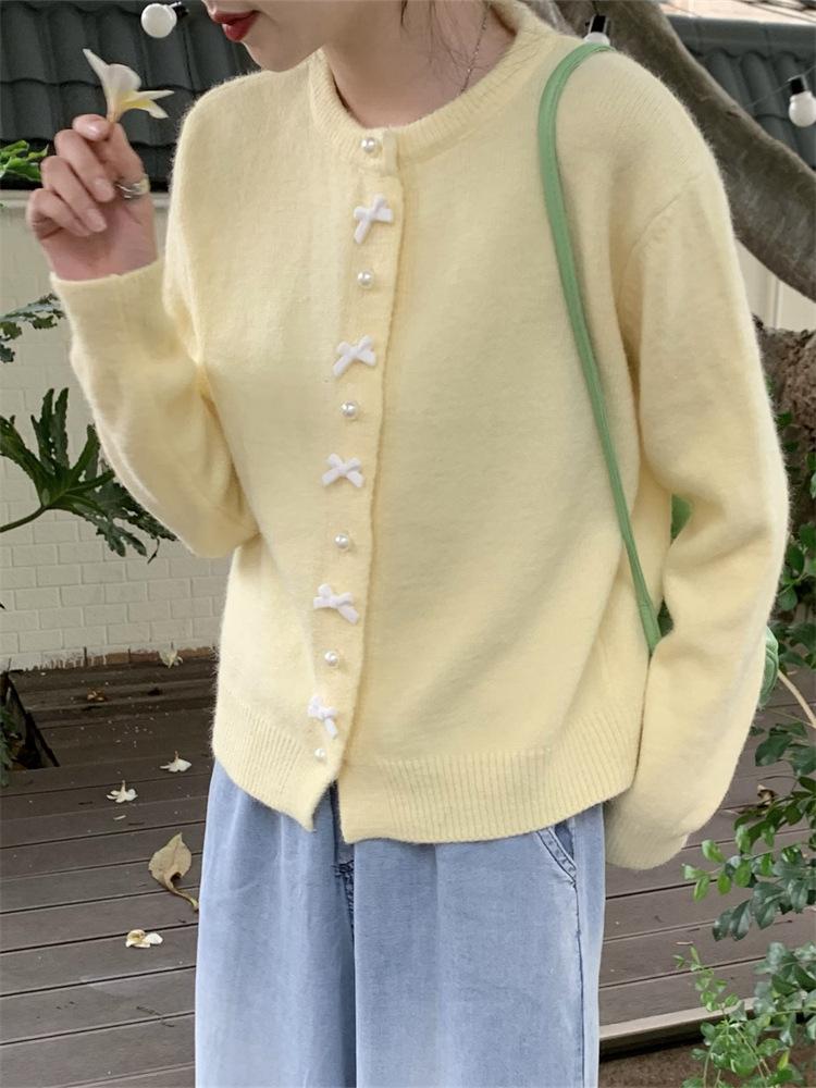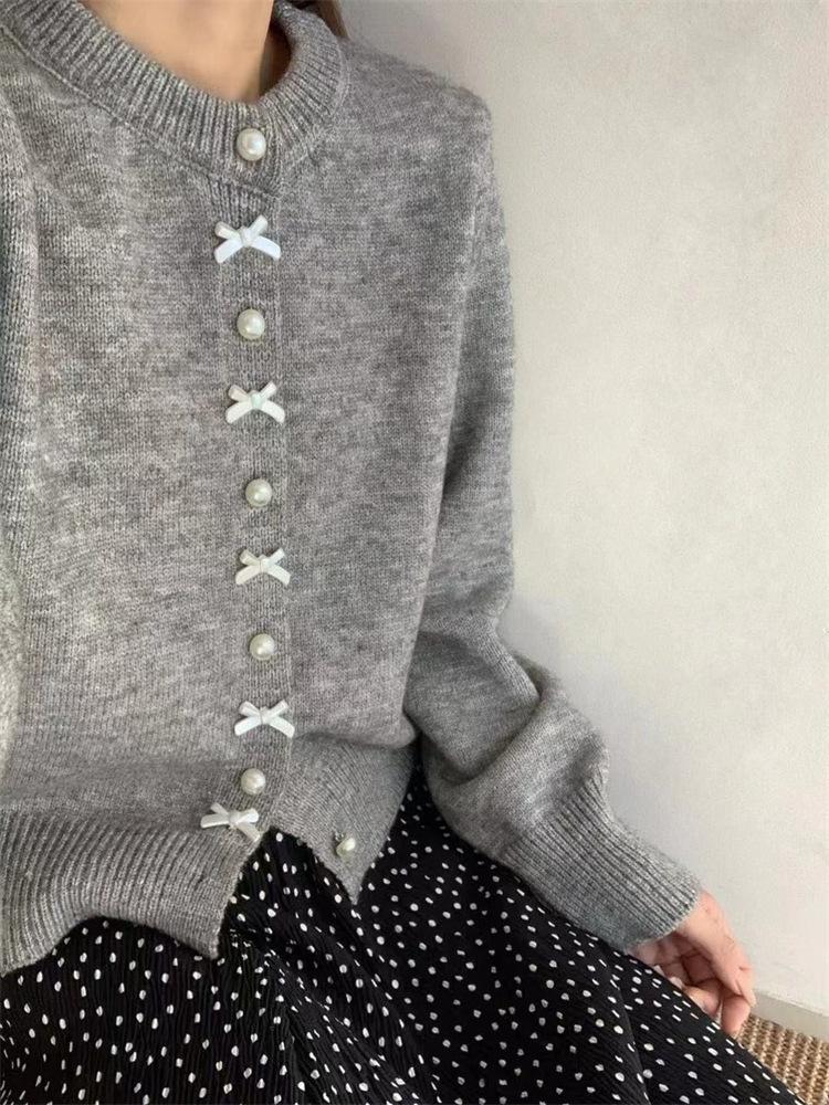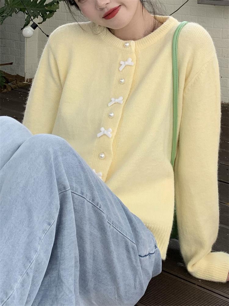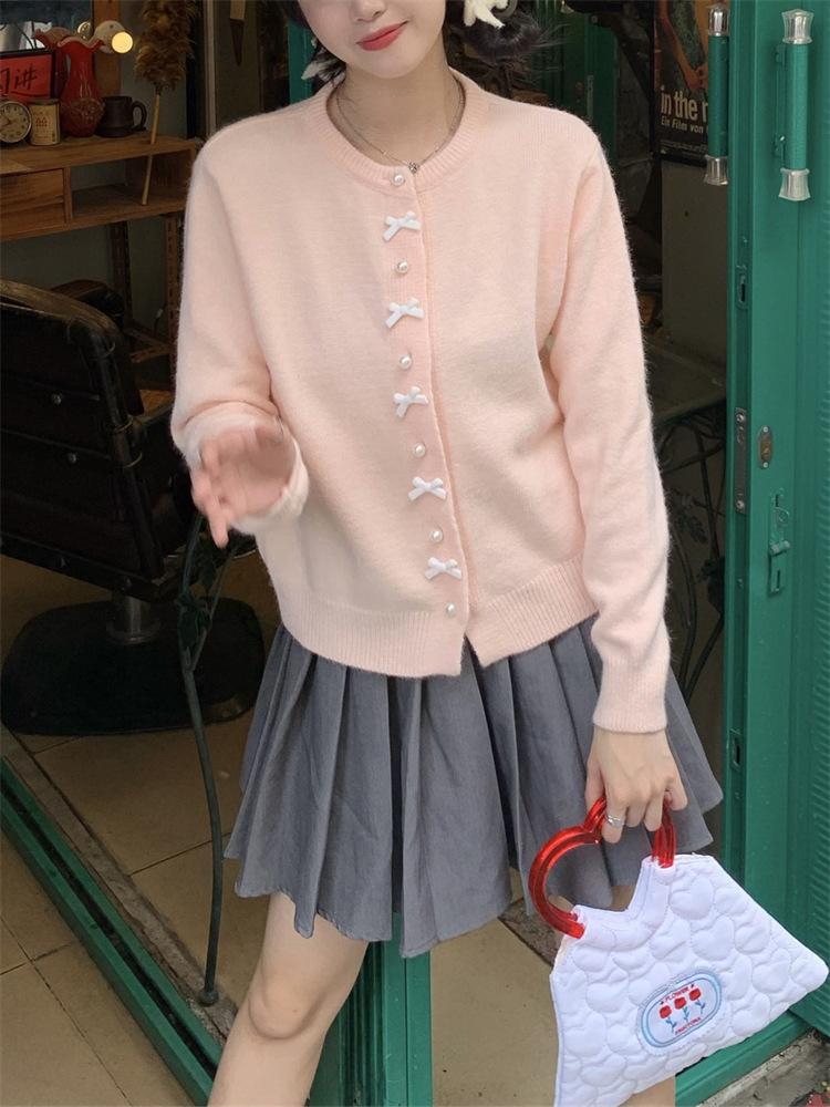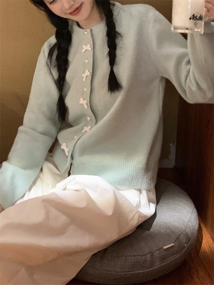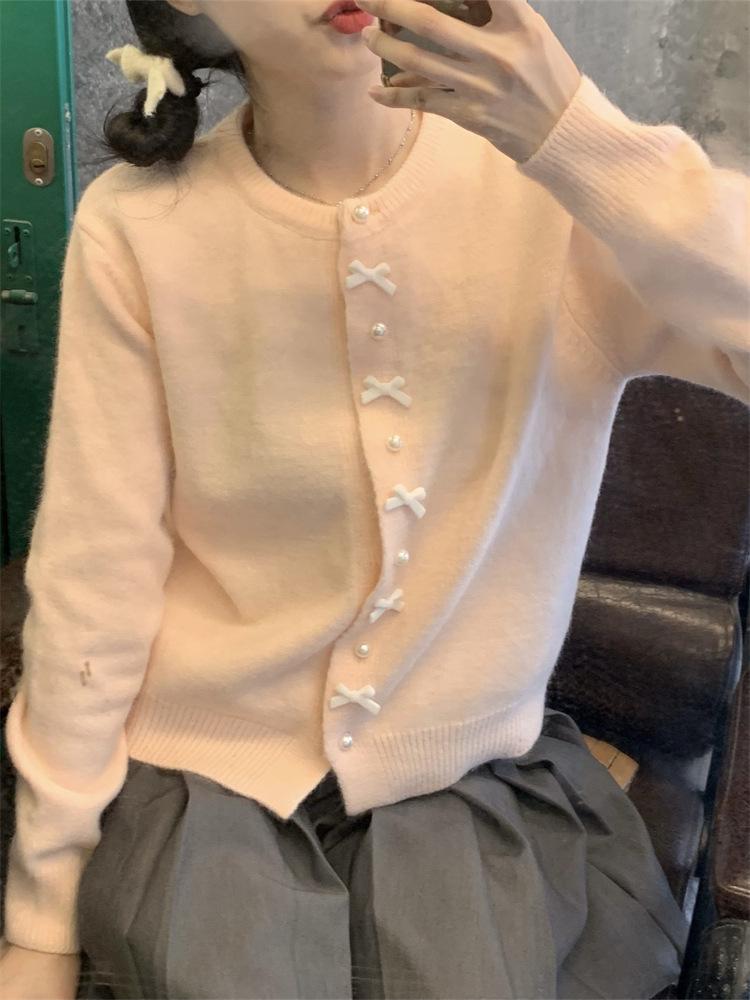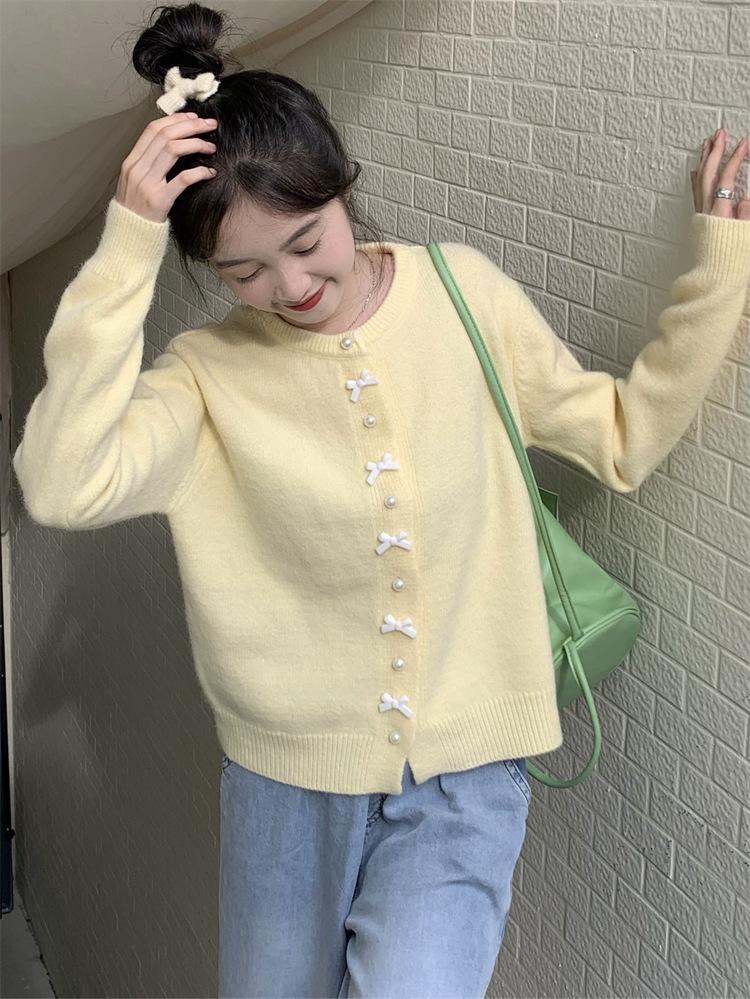 Suéter Dulce Estilo Perezoso para Mujer Otoño e Invierno Nuevo Estilo Coreano Diseño Delicado de Cuello Redondo Cárdigan Chaqueta de Punto Suave y Cerosa