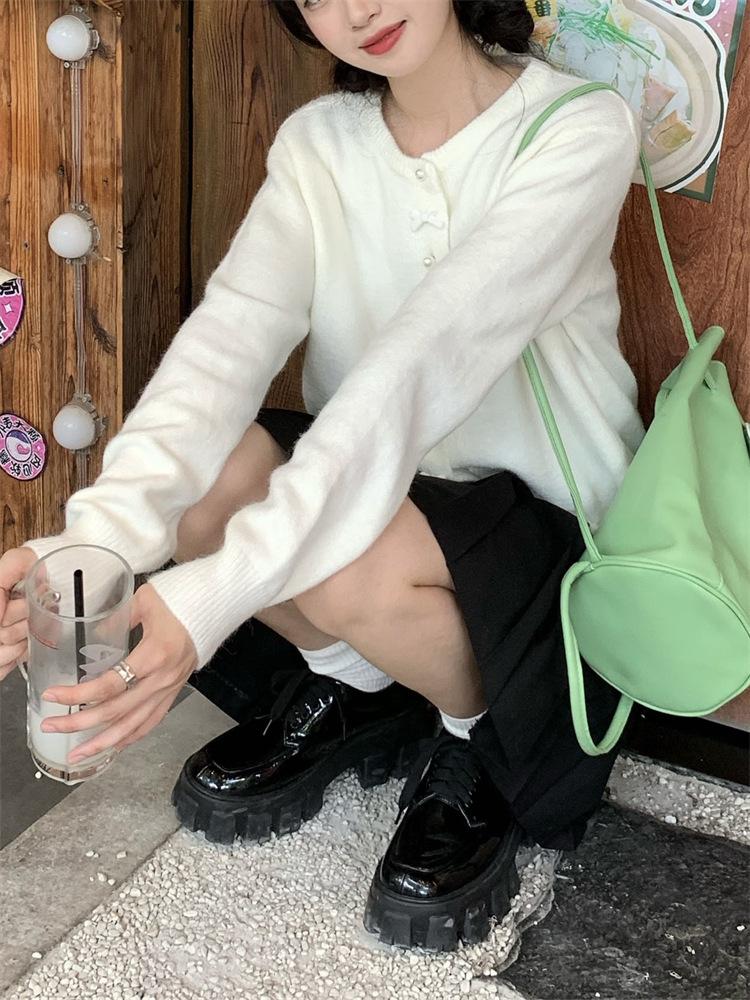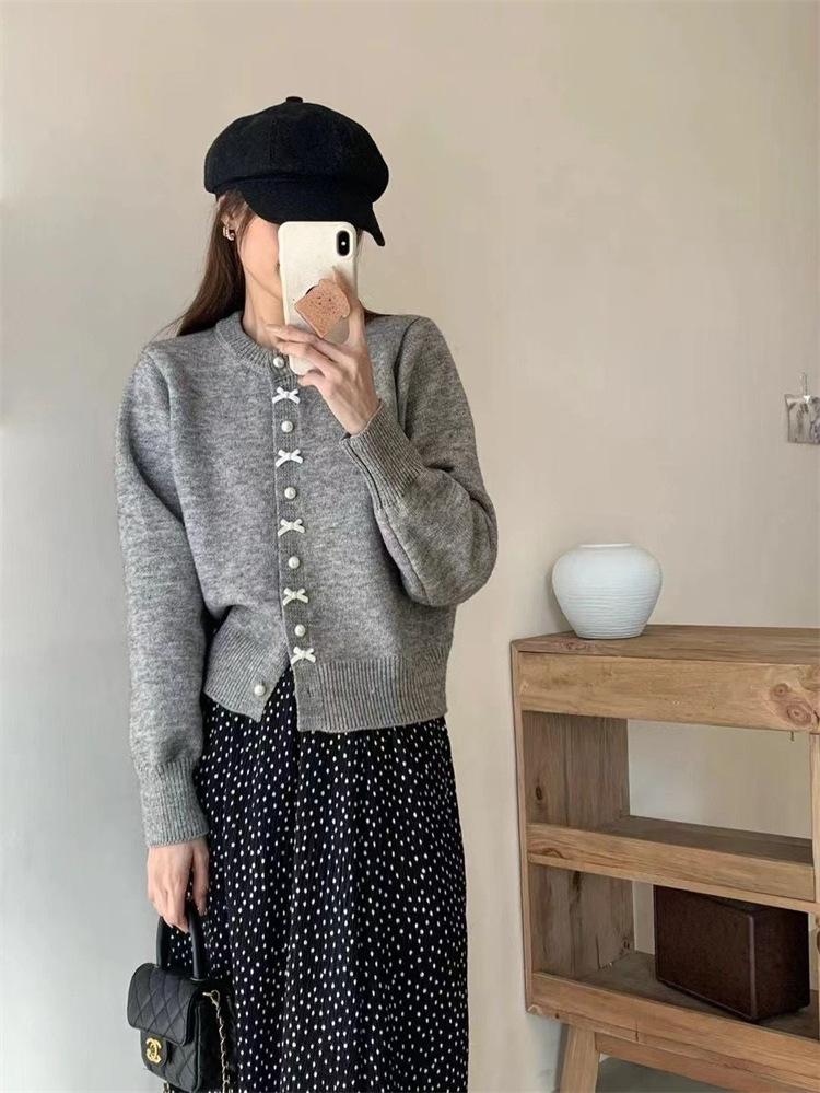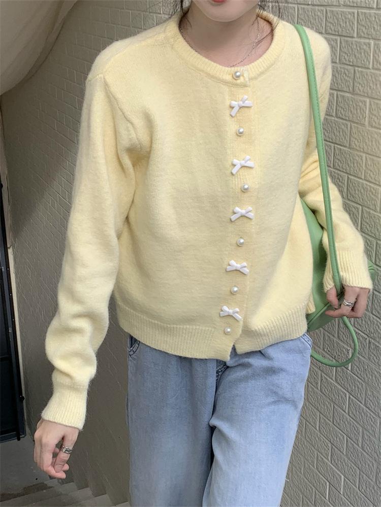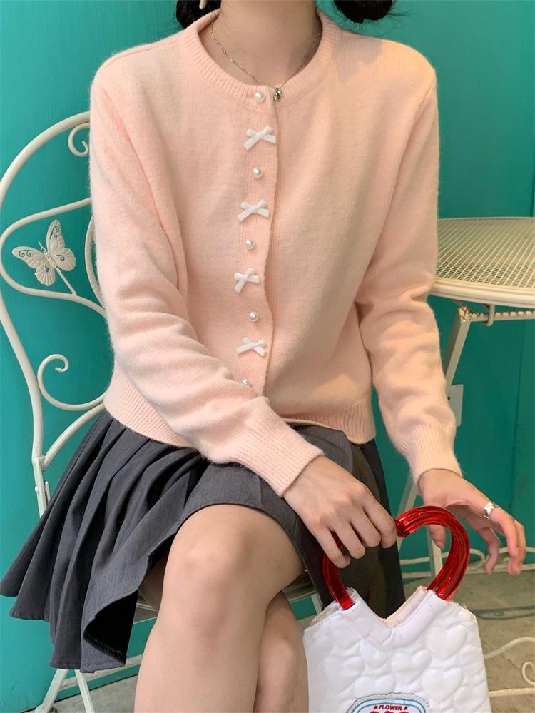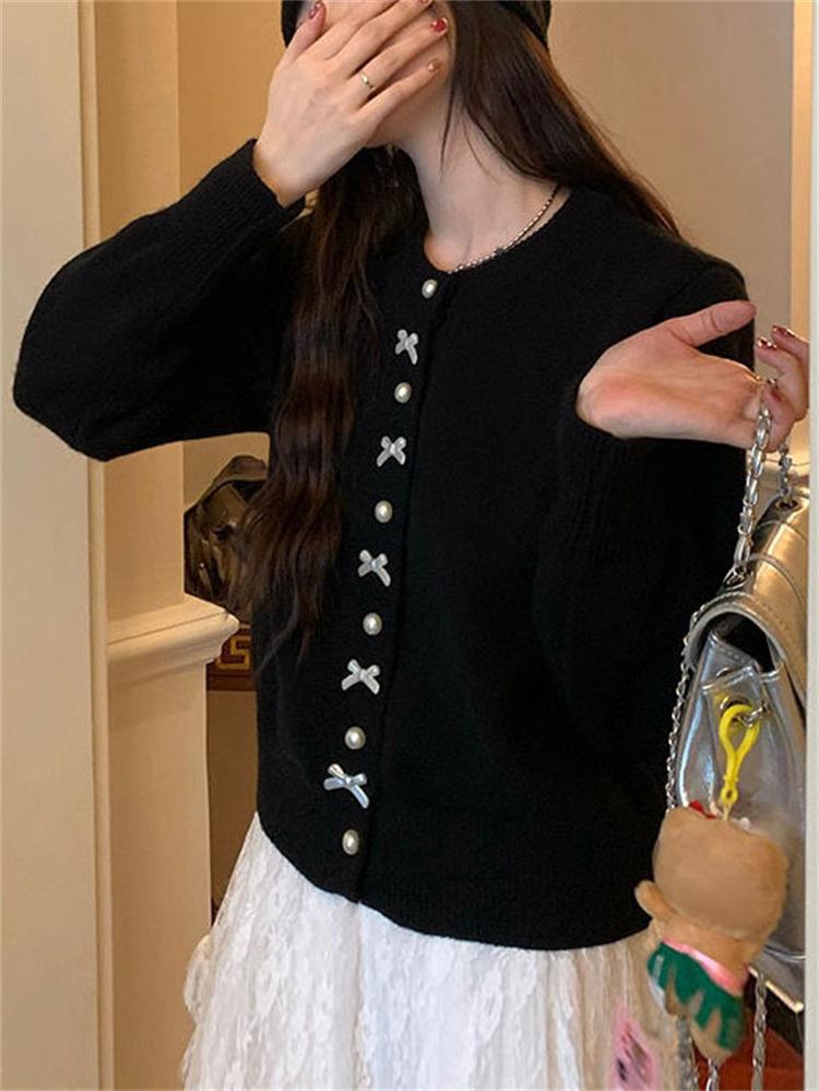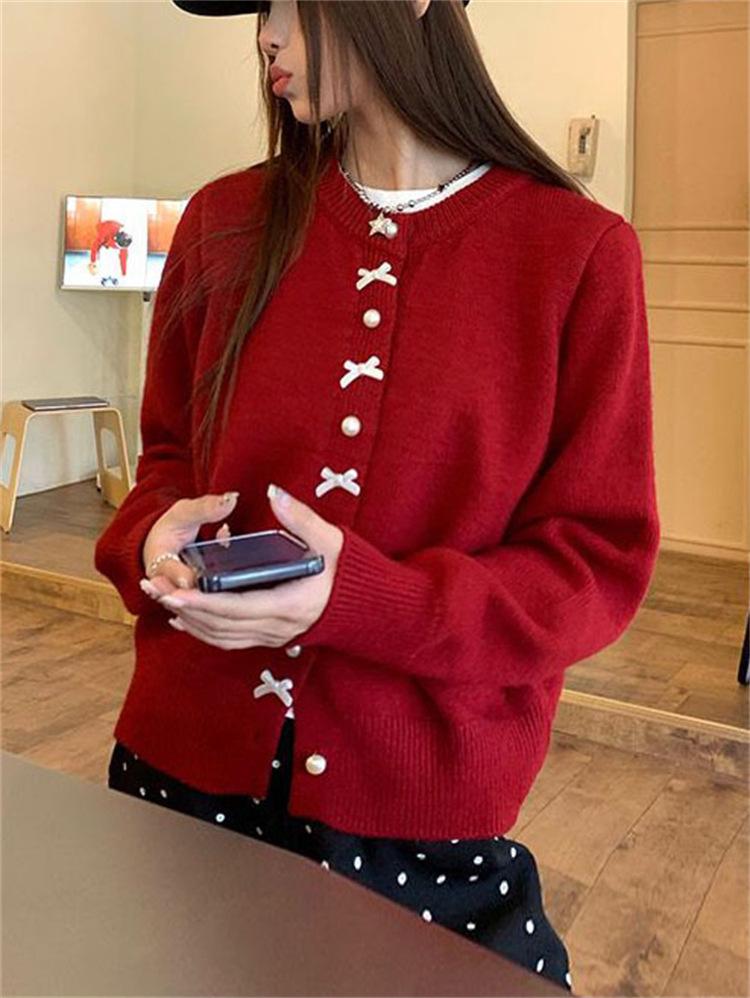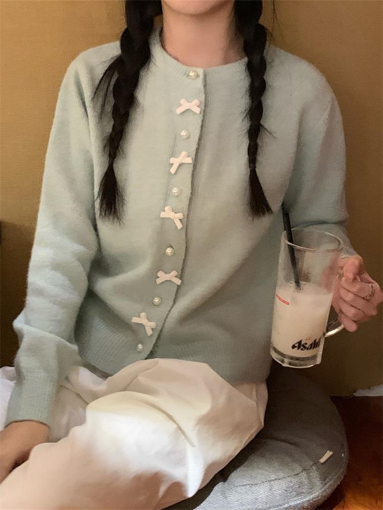 Suéter Dulce Estilo Perezoso para Mujer Otoño e Invierno Nuevo Estilo Coreano Diseño Delicado de Cuello Redondo Cárdigan Chaqueta de Punto Suave y Cerosa