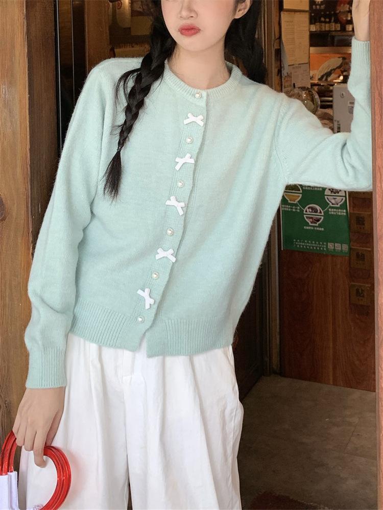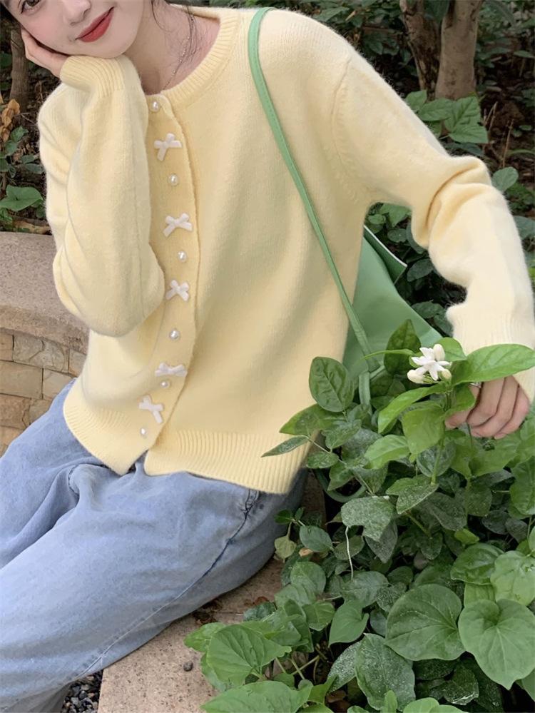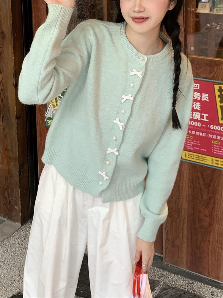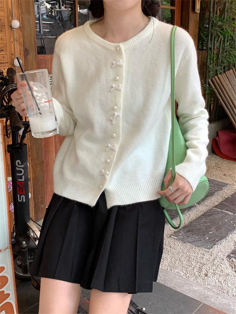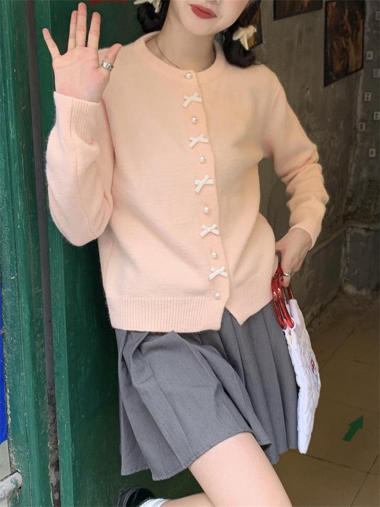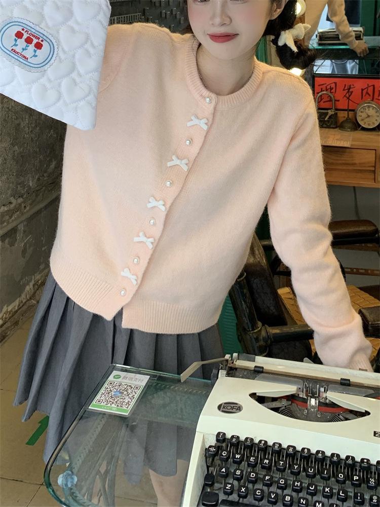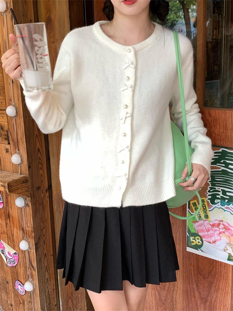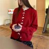 Suéter Dulce Estilo Perezoso para Mujer Otoño e Invierno Nuevo Estilo Coreano Diseño Delicado de Cuello Redondo Cárdigan Chaqueta de Punto Suave y Cerosa