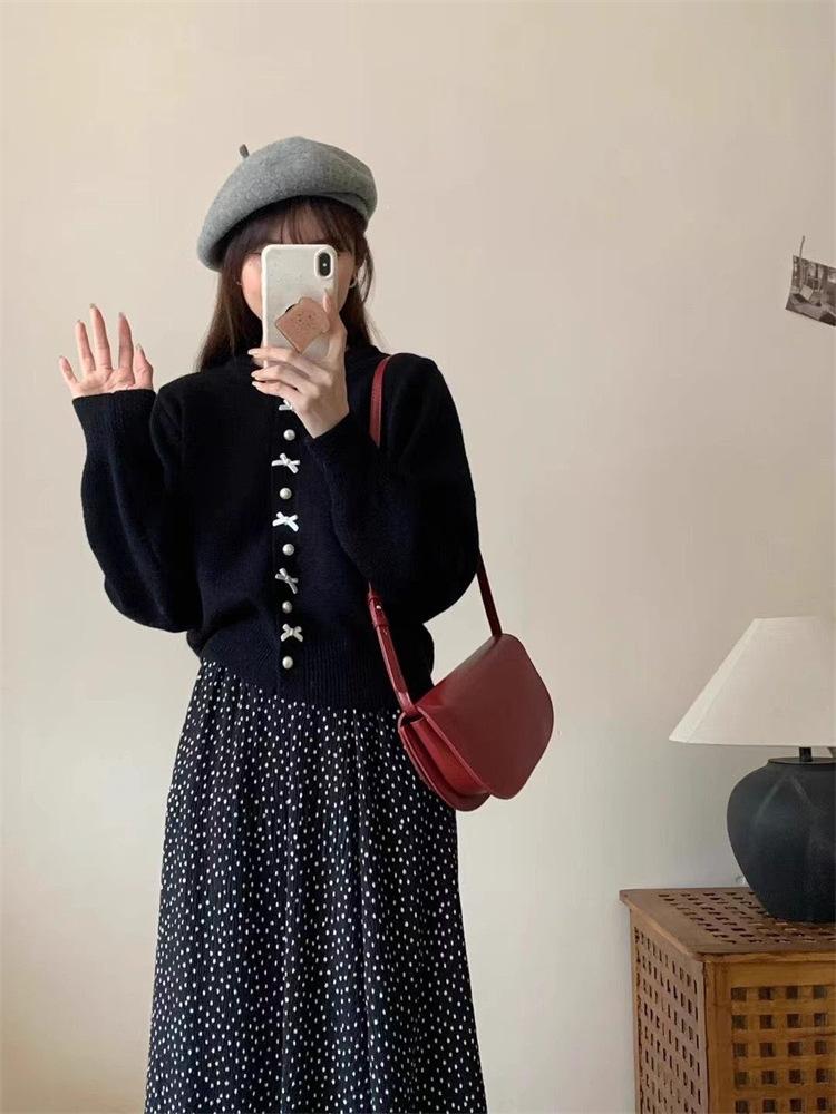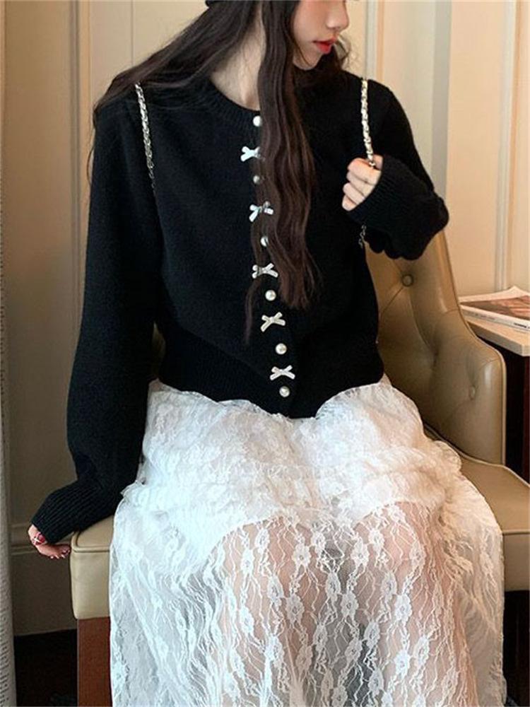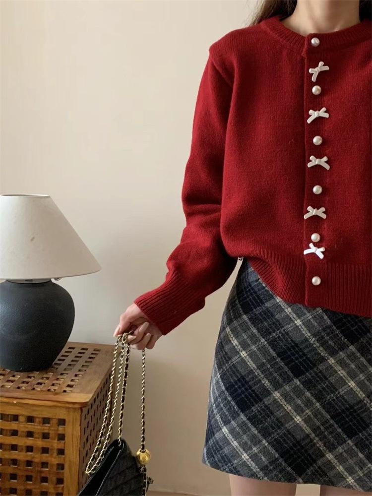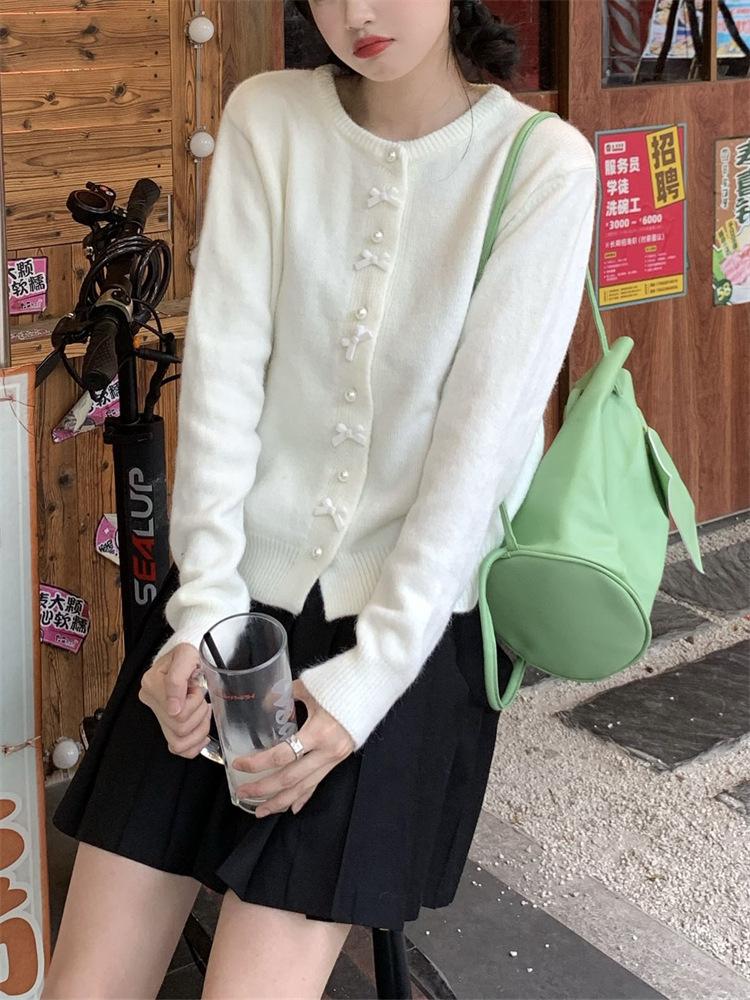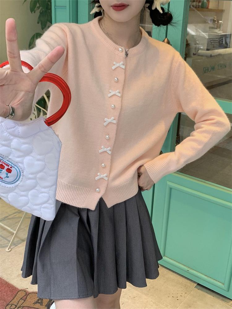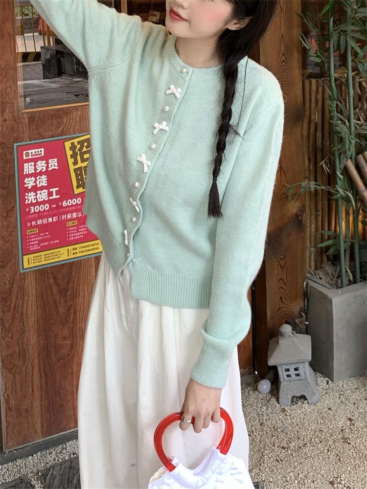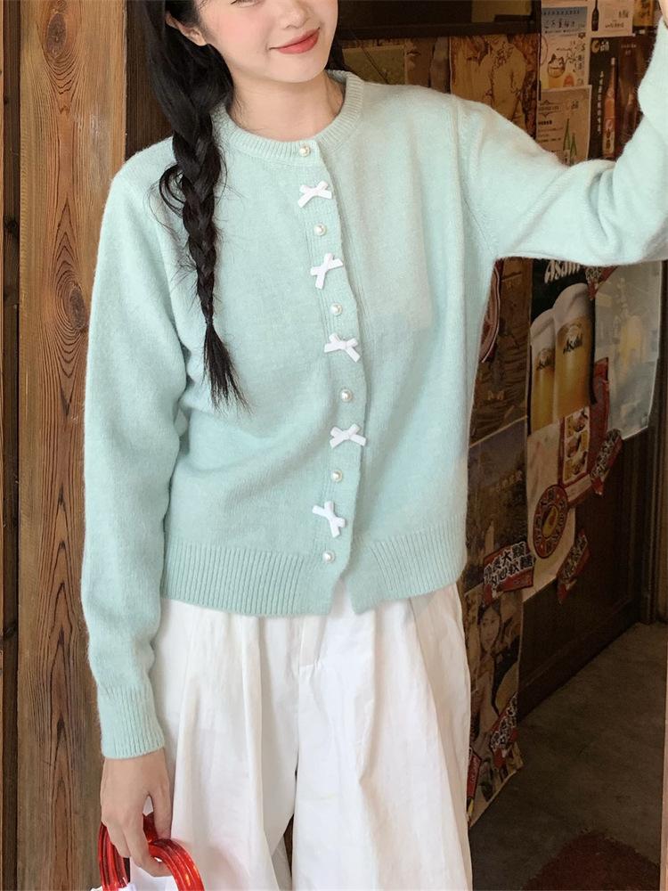 Suéter Dulce Estilo Perezoso para Mujer Otoño e Invierno Nuevo Estilo Coreano Diseño Delicado de Cuello Redondo Cárdigan Chaqueta de Punto Suave y Cerosa
