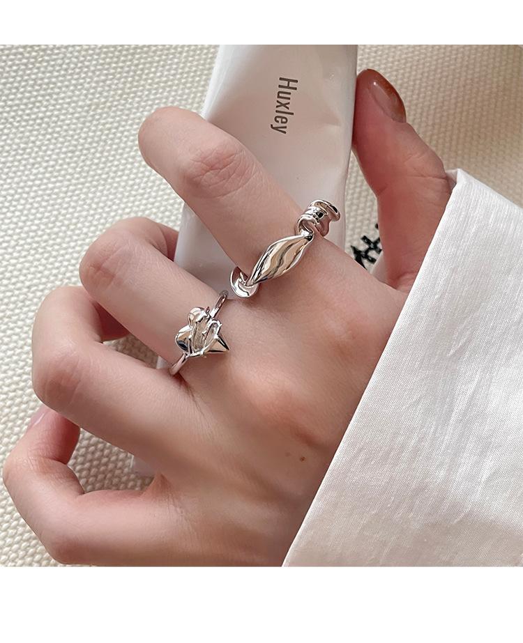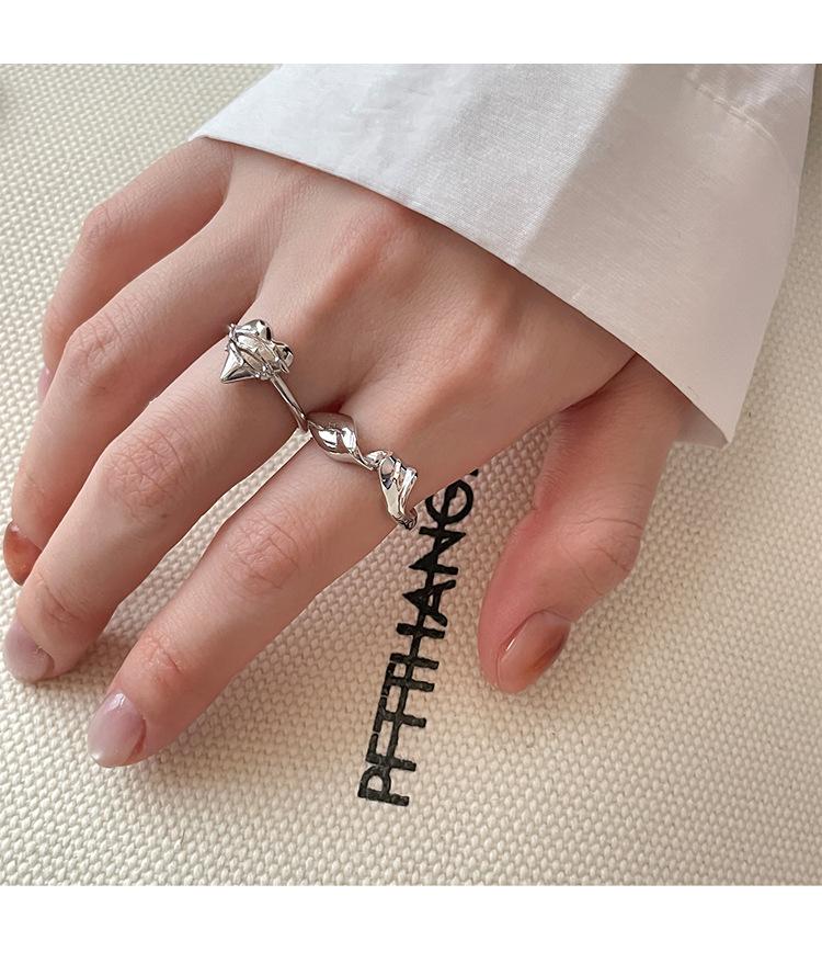 Anillo Irregular Torcido para Mujer, Diseño Nicho, Lujo Ligero, Anillo Abierto de Corazón Dulce, Tendencia de Anillo Apilable para Dedo Índice de Celebridad de Internet