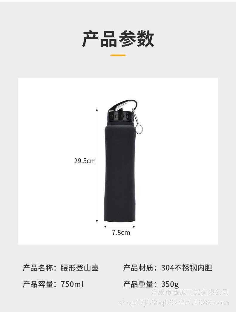 Taza/termo portátil de acero inoxidable de doble capa transfronterizo de gran capacidad con aislamiento térmico para exteriores, con forma de cintura delgada, para agua deportiva fría.