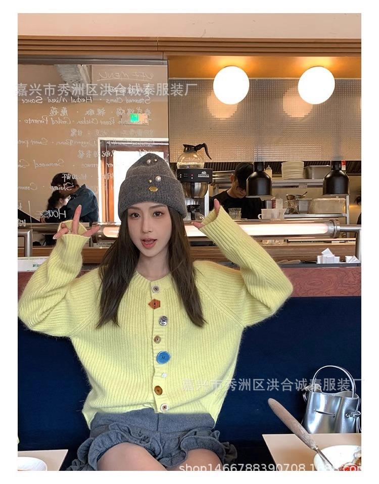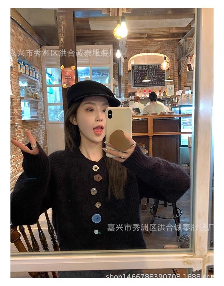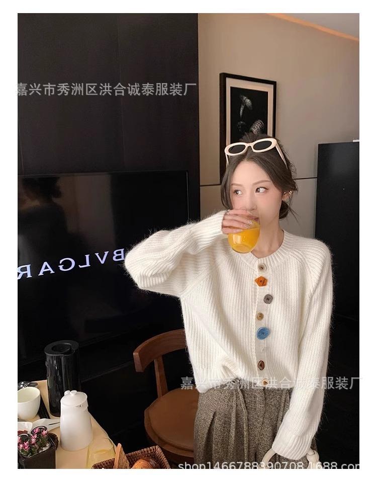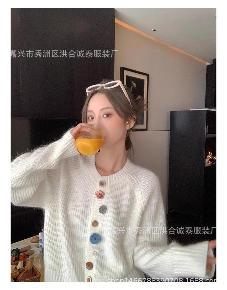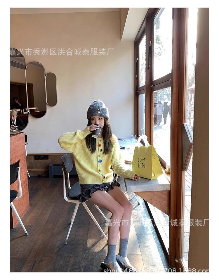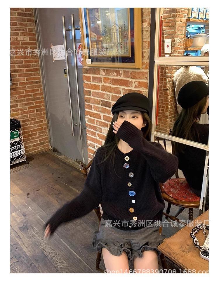 Diseño nicho sentido irregular color botón punto cárdigan mujer otoño e invierno nuevo estilo coreano reductor de edad estilo suave suéter abrigo
