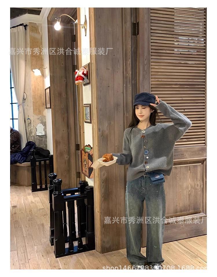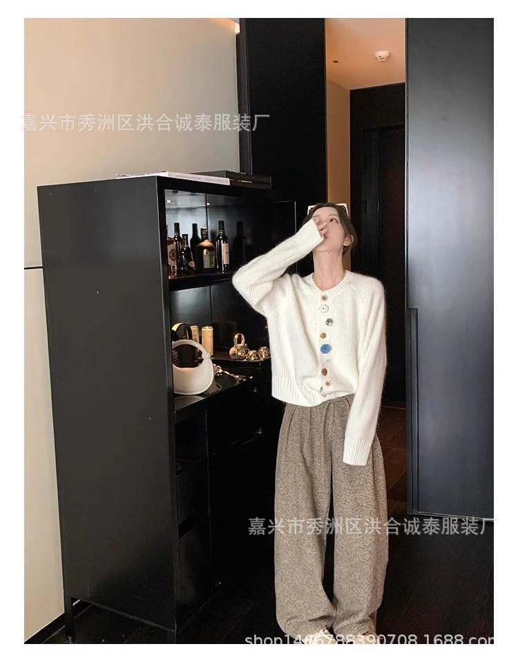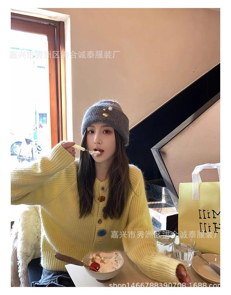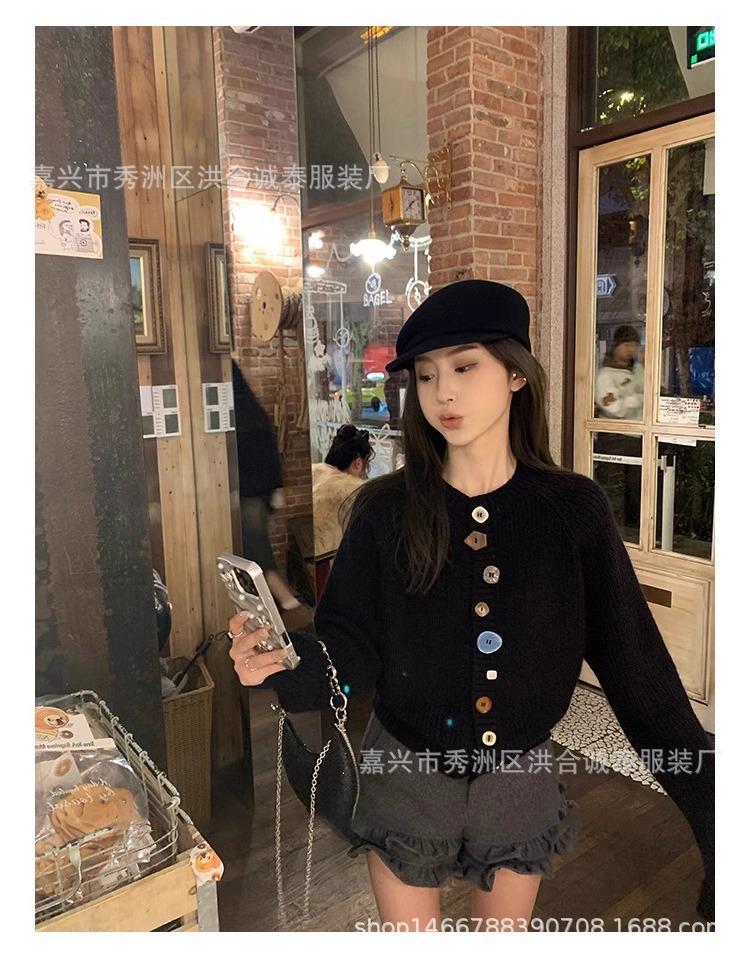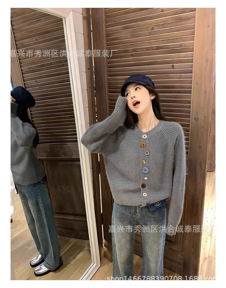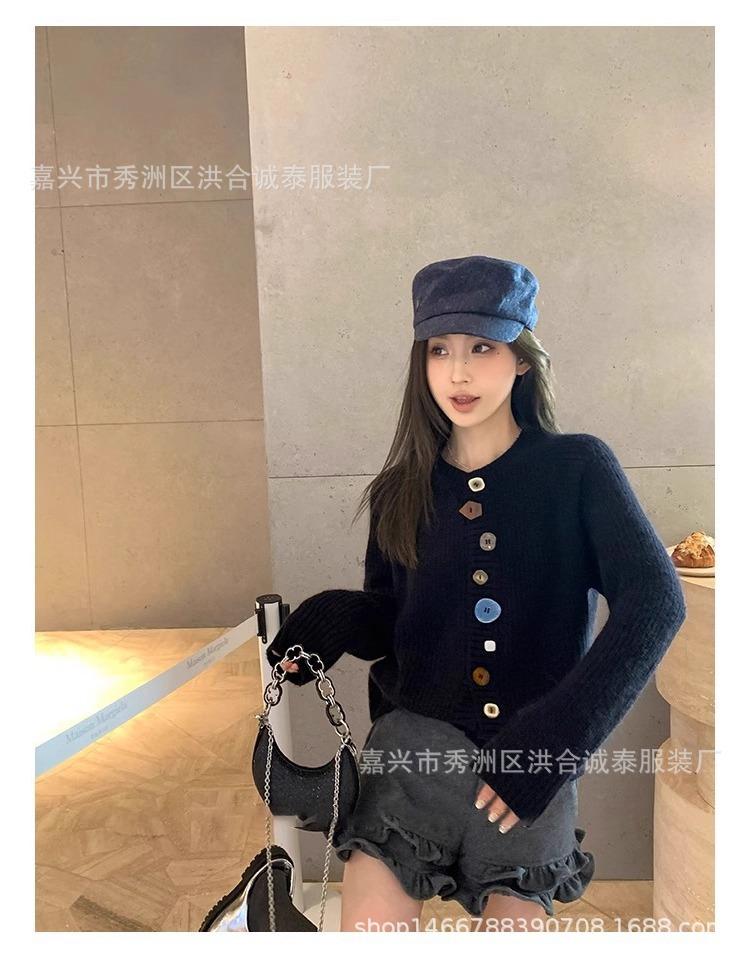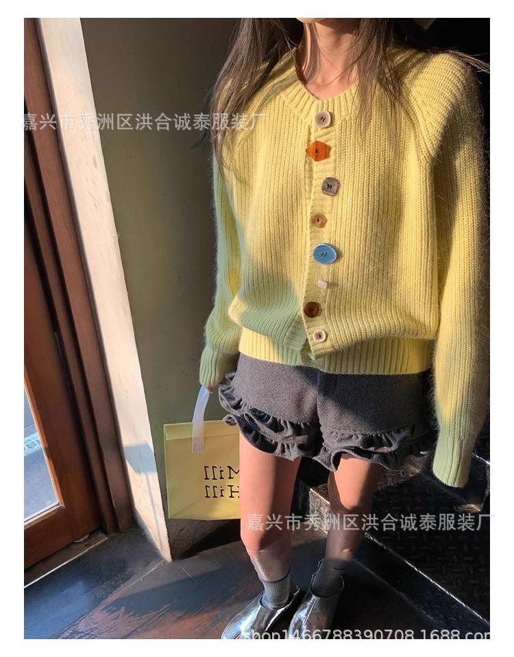 Diseño nicho sentido irregular color botón punto cárdigan mujer otoño e invierno nuevo estilo coreano reductor de edad estilo suave suéter abrigo