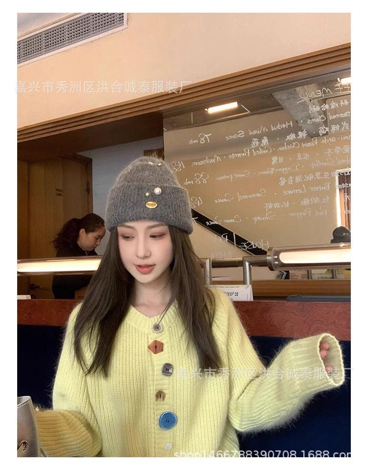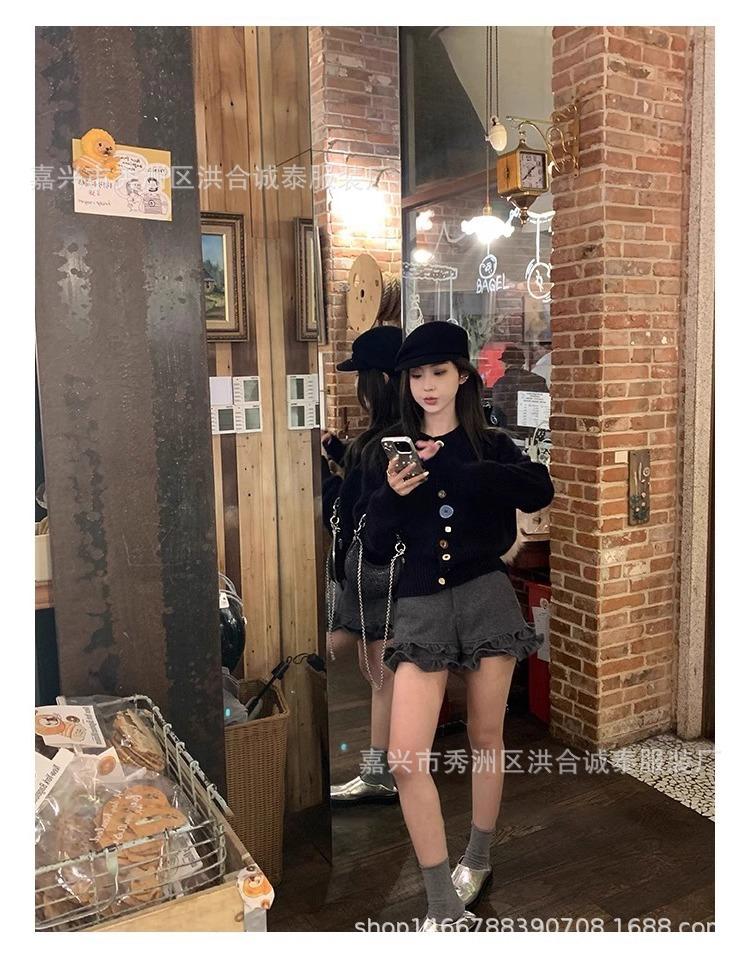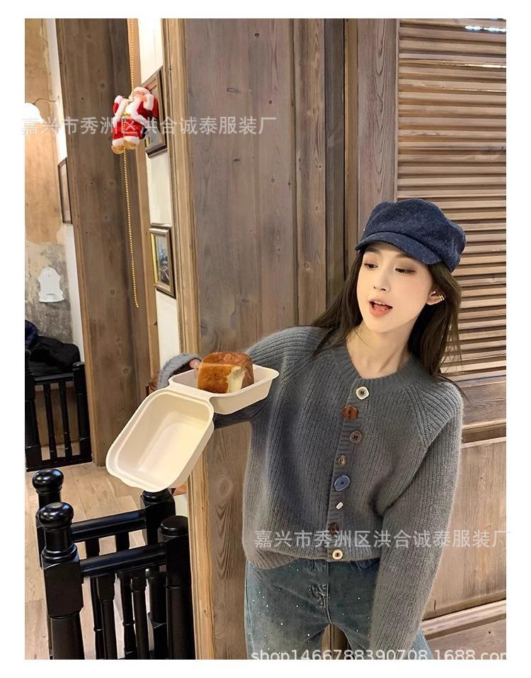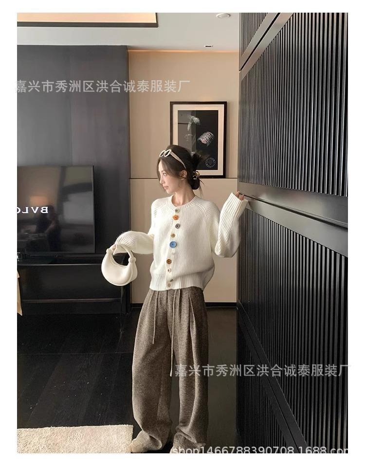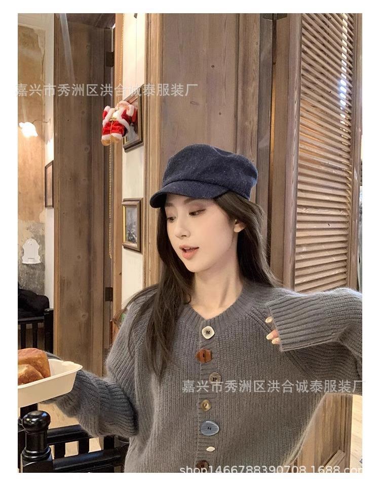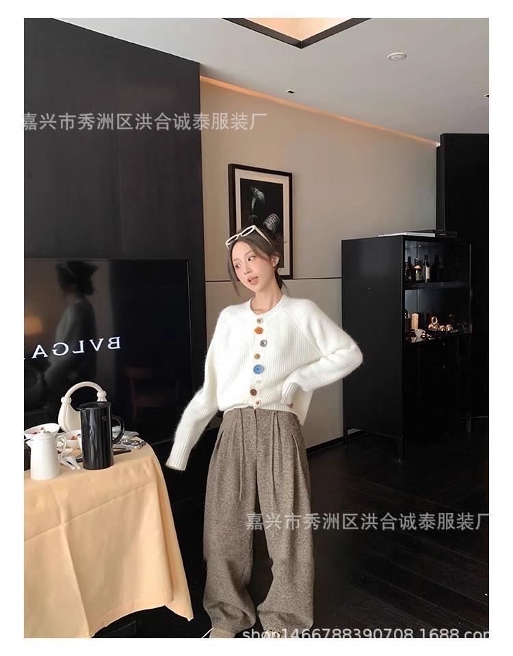 Diseño nicho sentido irregular color botón punto cárdigan mujer otoño e invierno nuevo estilo coreano reductor de edad estilo suave suéter abrigo