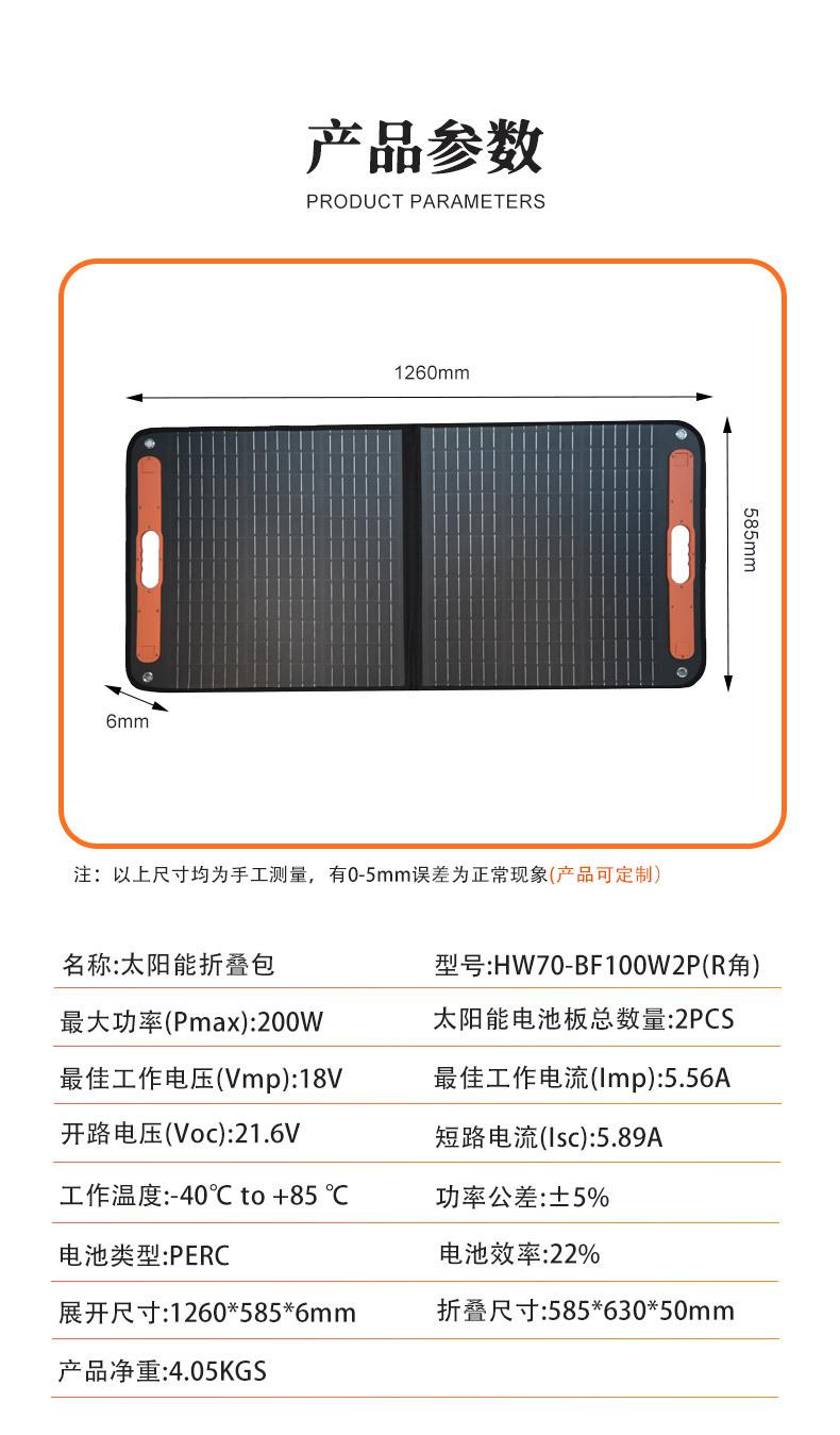 Panel Solar Plegable de Silicio Monocristalino de 100W Transfronterizo Panel Portátil de Generación de Energía Fotovoltaica Panel Solar