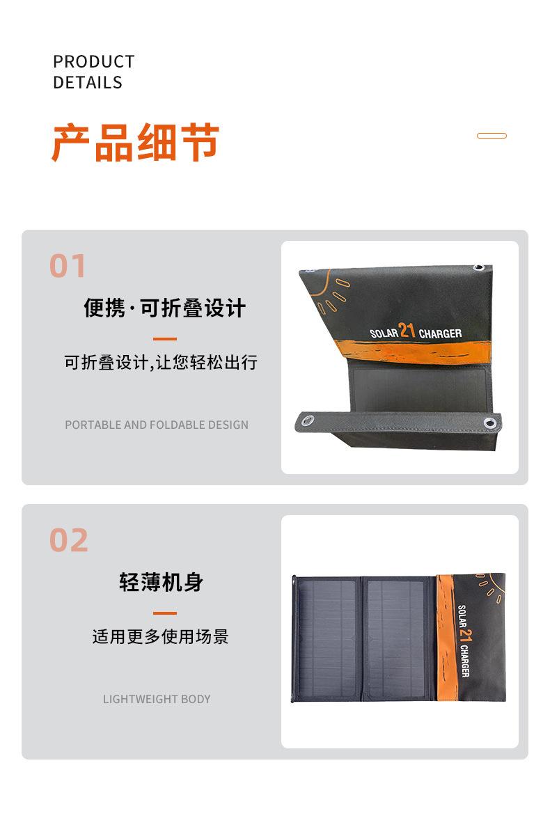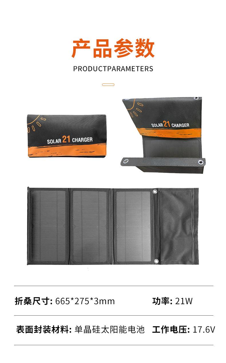 Bolsa de Carga Solar Plegable para Exterior de 21W Cargador de Panel Solar Portátil USB Dual Carga de Teléfono Móvil Panel Fotovoltaico