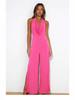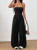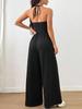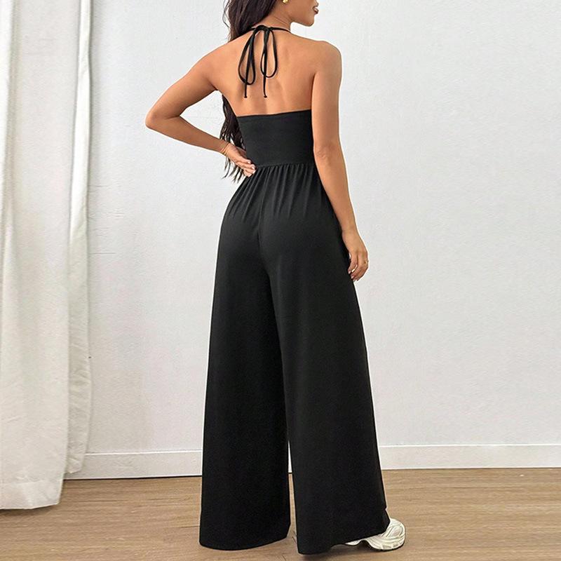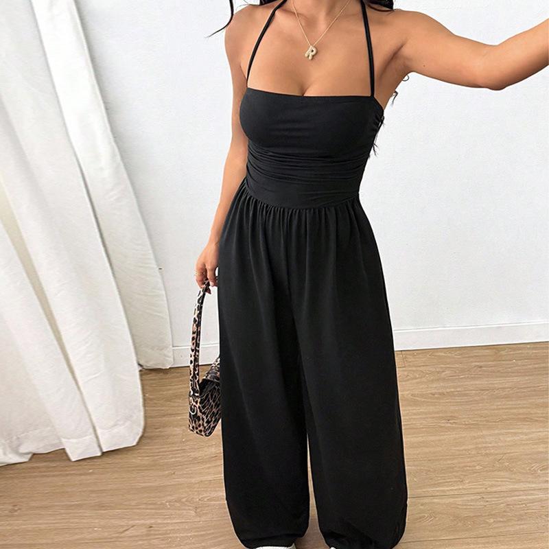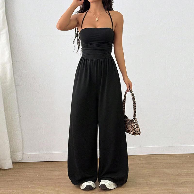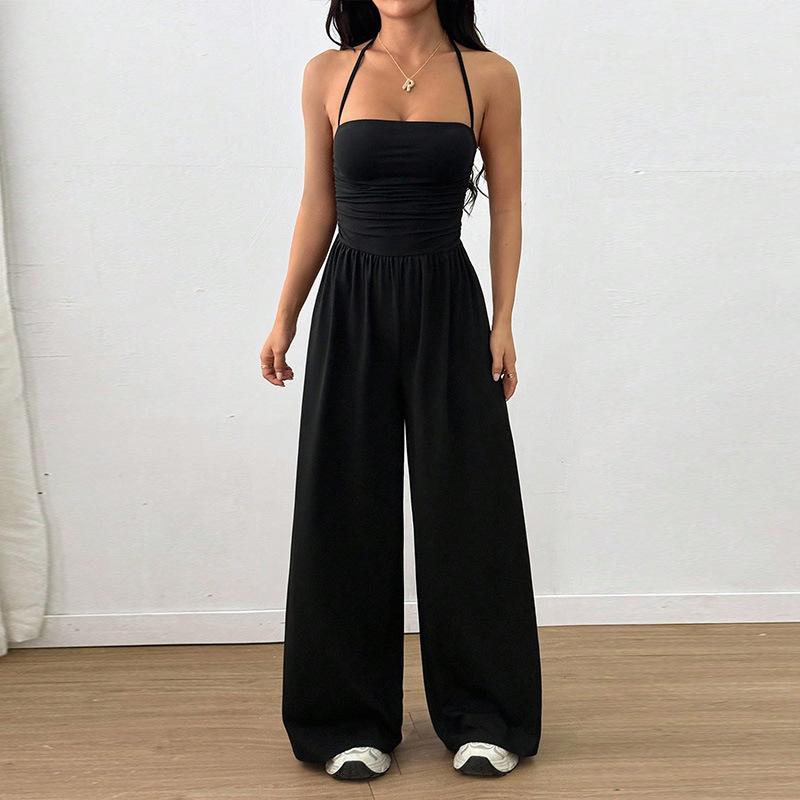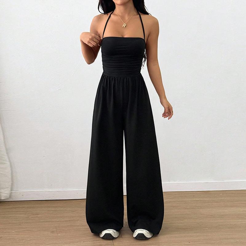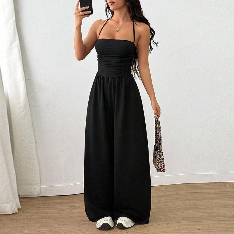 Mono de Verano para Mujer 2025 Europeo y Americano Nuevo Color Sólido Moda Adelgazante Temperamento Plisado Pierna Ancha Halter Sin Mangas