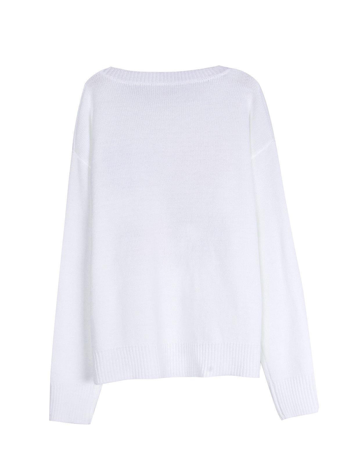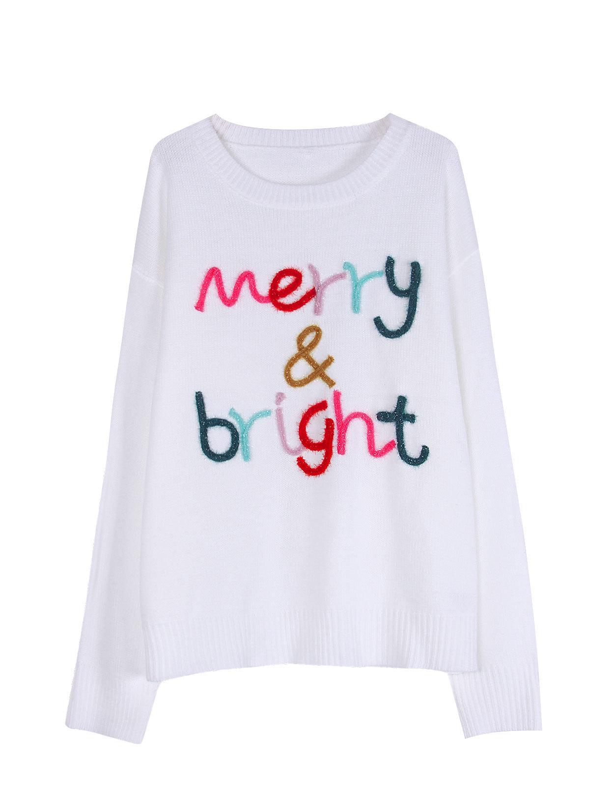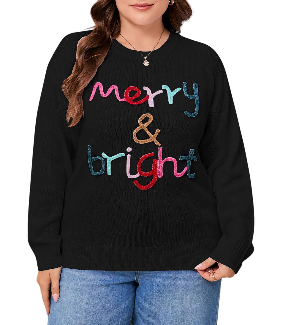 Talla Grande Suelto Europeo y Americano Otoño e Invierno Nuevo Suéter de Mujer Transfronterizo Amazon Tejido Jacquard de Letras Cuello Redondo Jersey Top