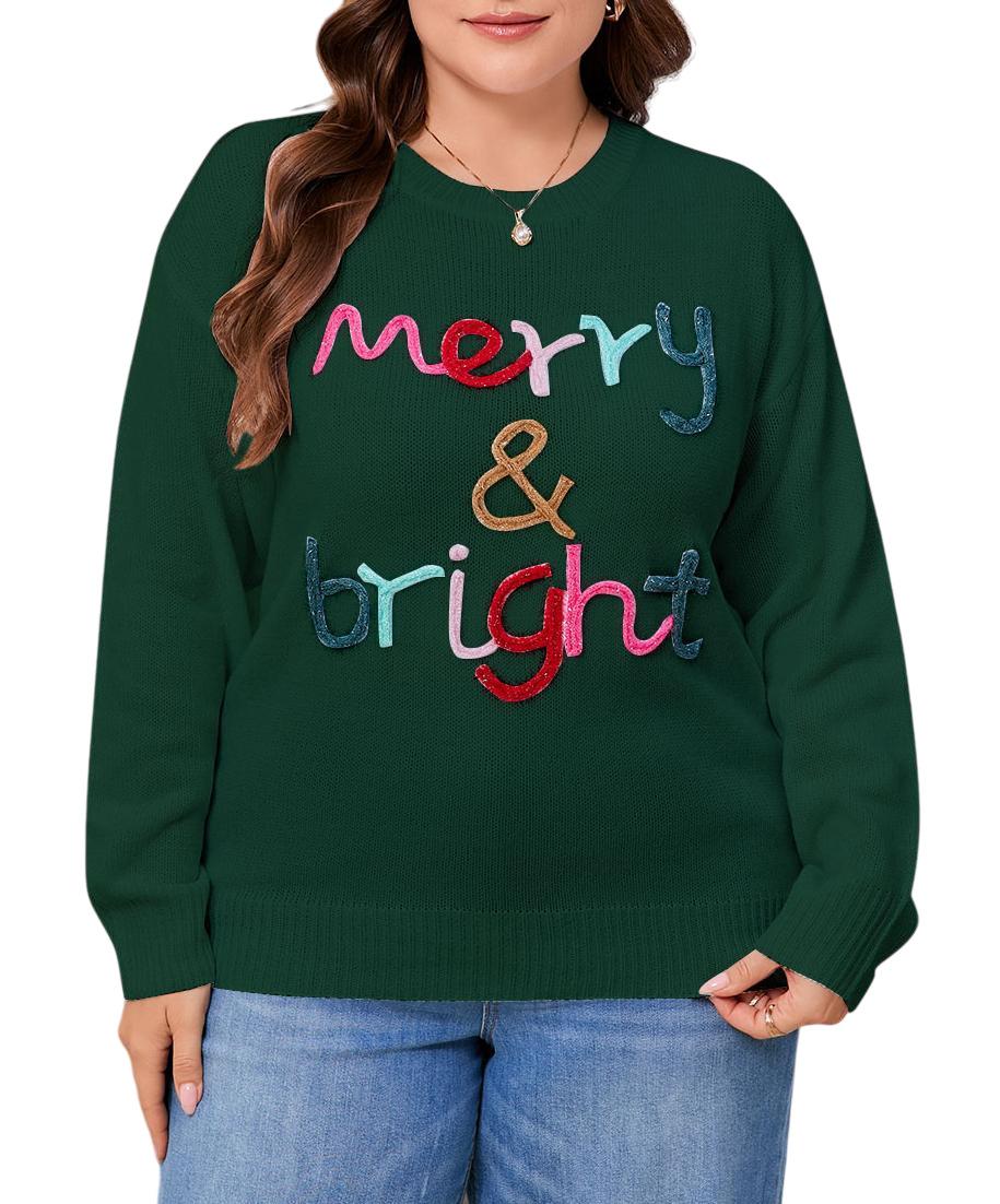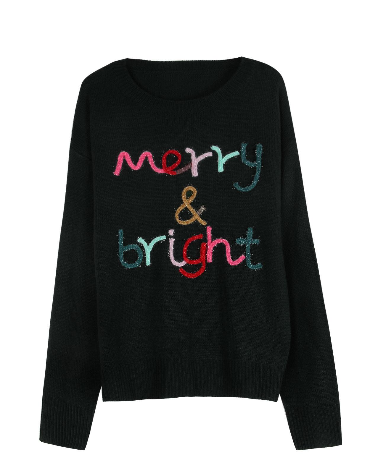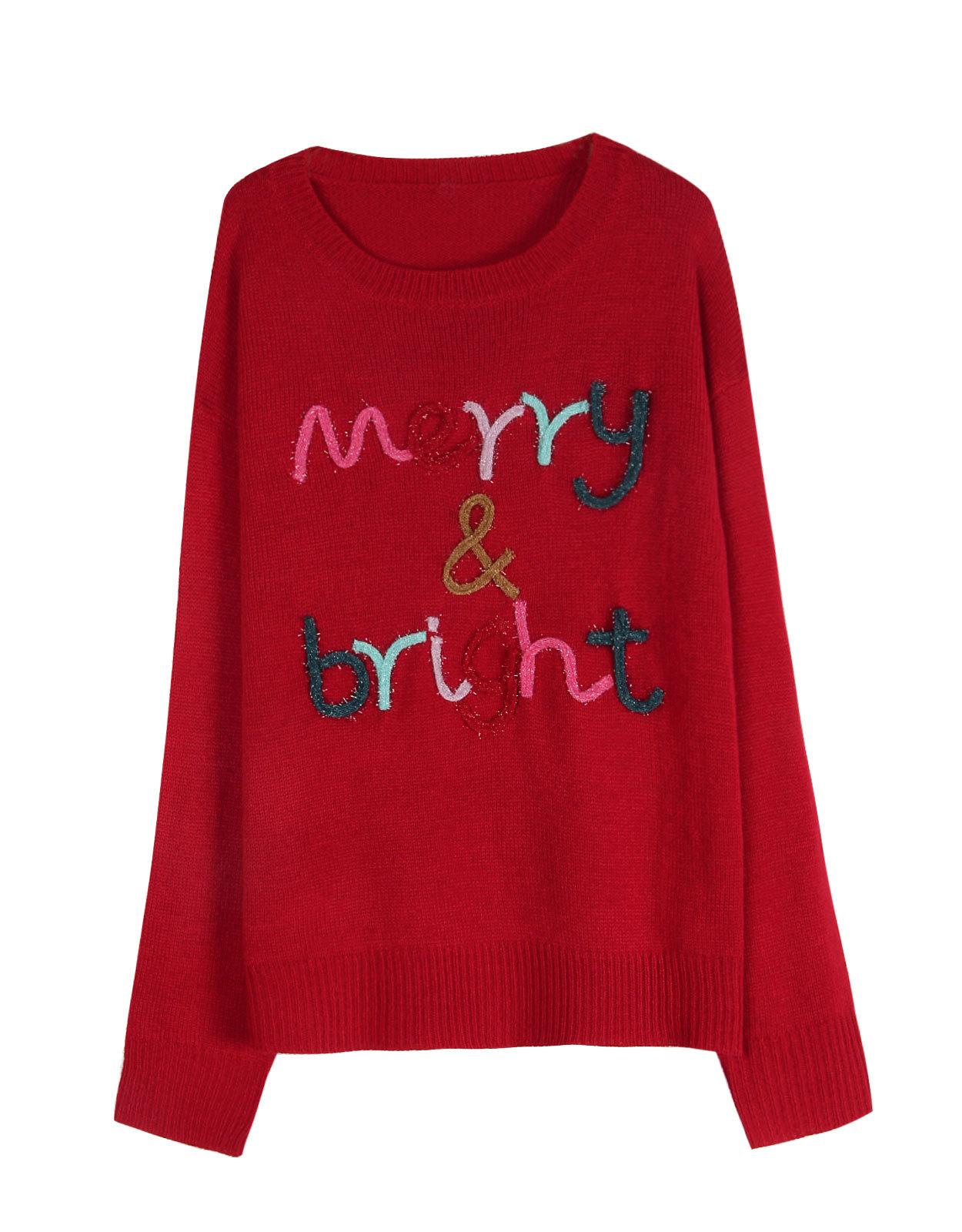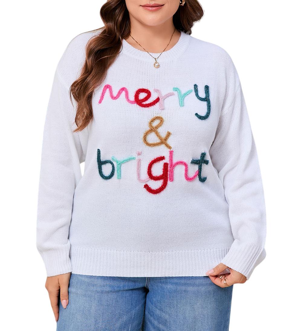Talla Grande Suelto Europeo y Americano Otoño e Invierno Nuevo Suéter de Mujer Transfronterizo Amazon Tejido Jacquard de Letras Cuello Redondo Jersey Top
