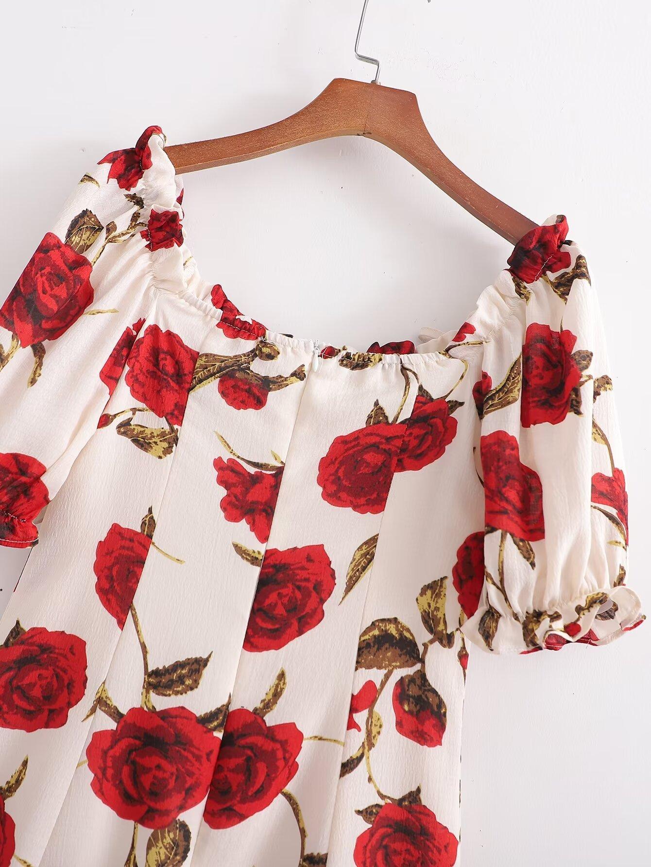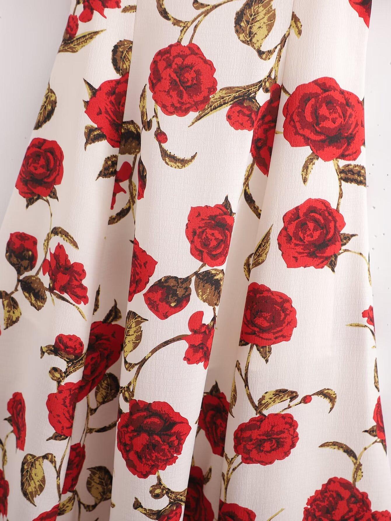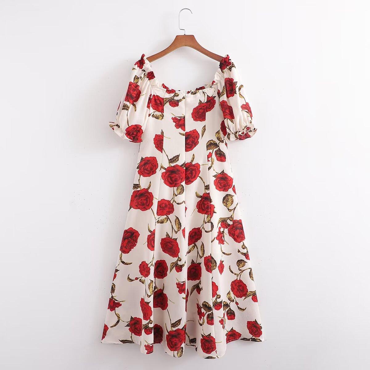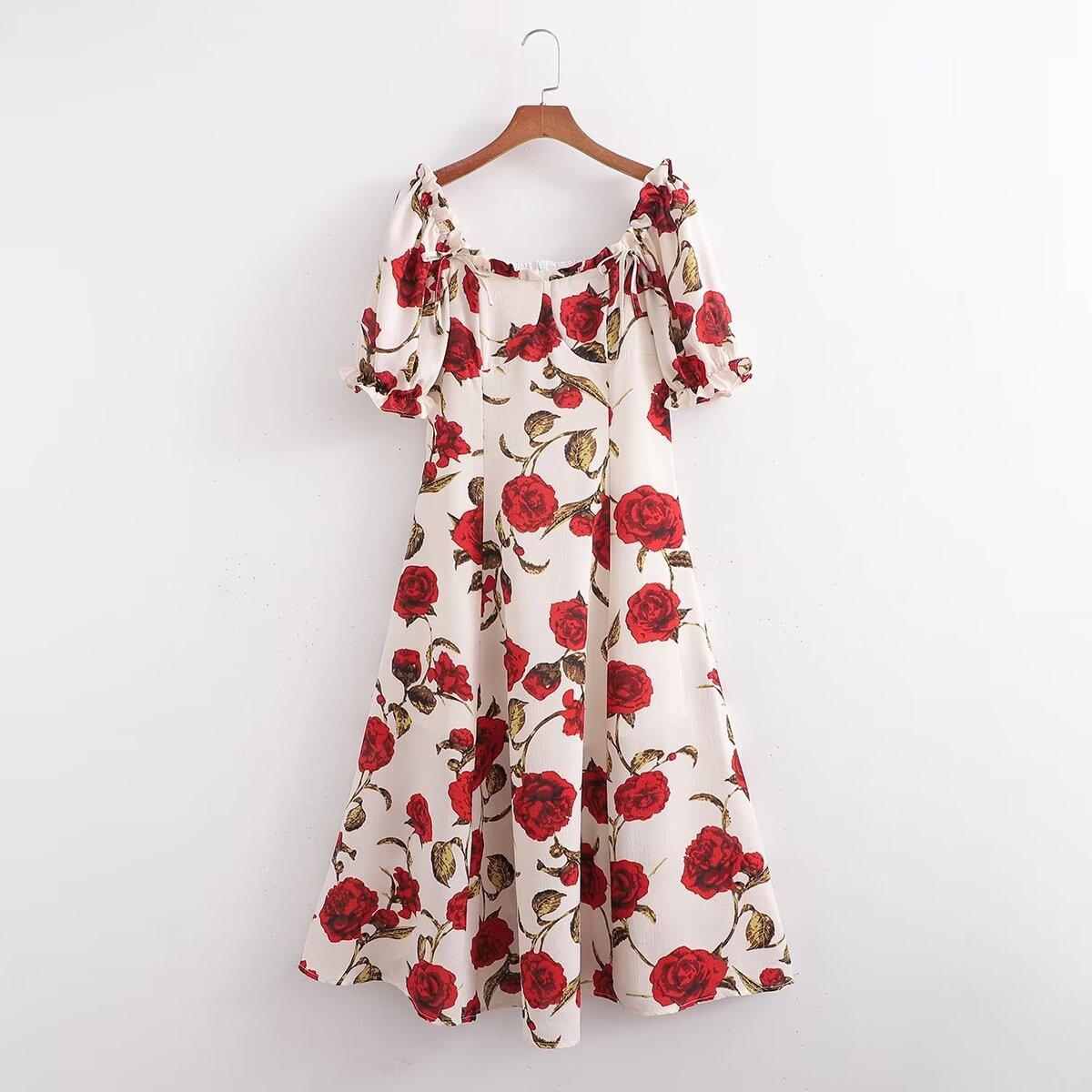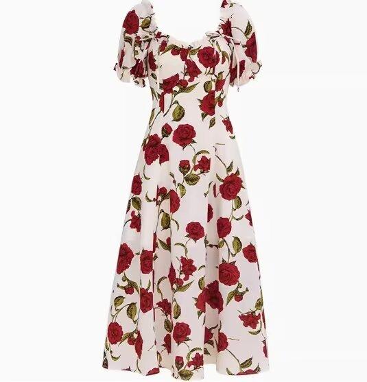 Ropa de primavera para mujer estilo europeo y americano 2024 Nuevo vestido de manga corta ajustado con estampado de rosas 3640