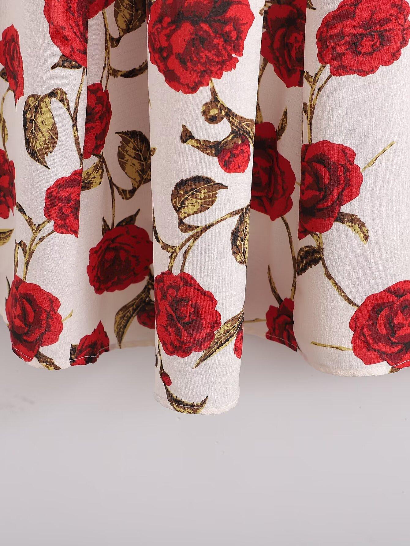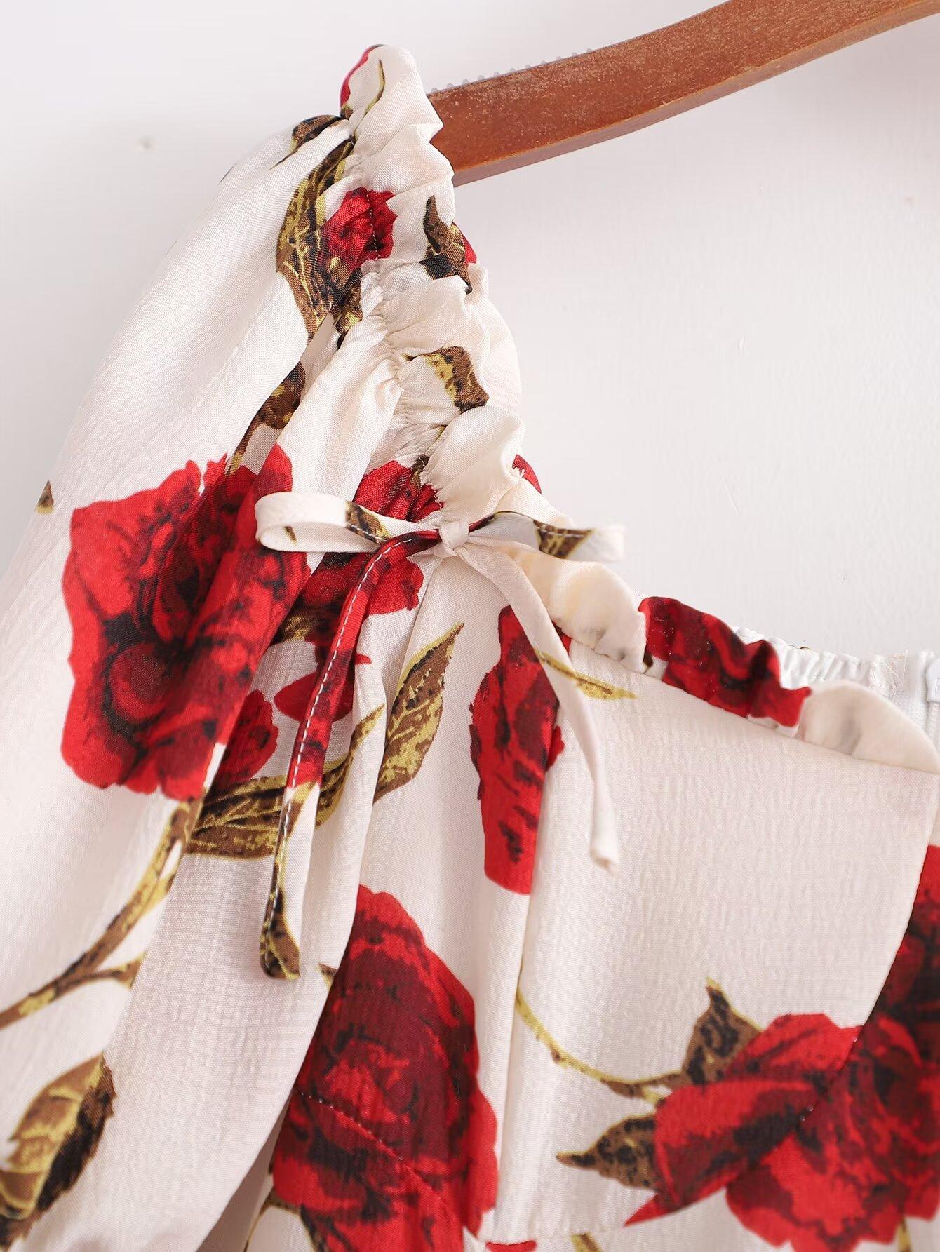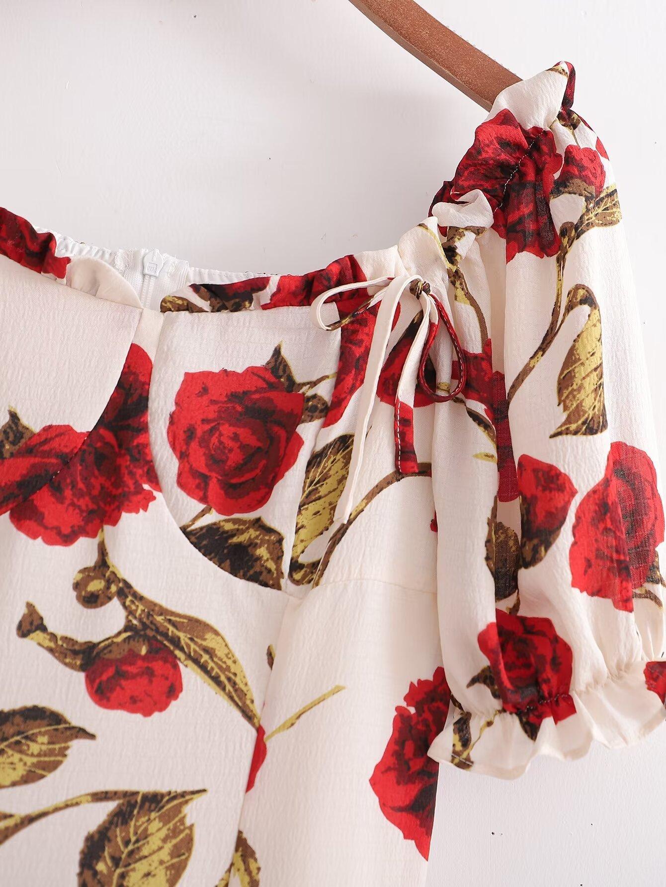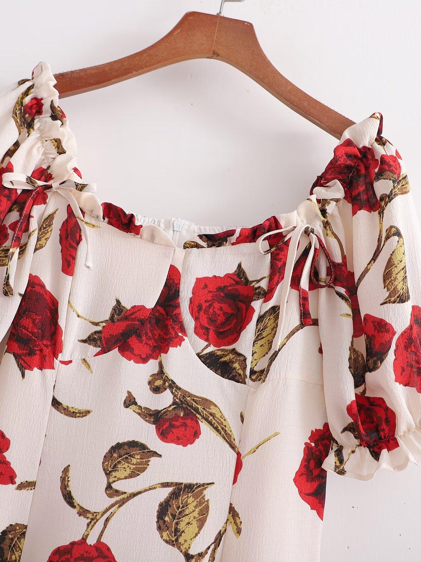 Ropa de primavera para mujer estilo europeo y americano 2024 Nuevo vestido de manga corta ajustado con estampado de rosas 3640
