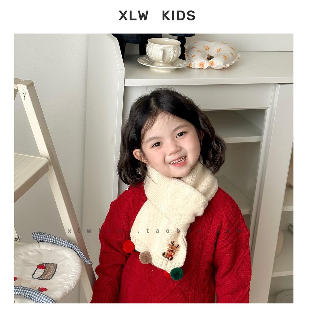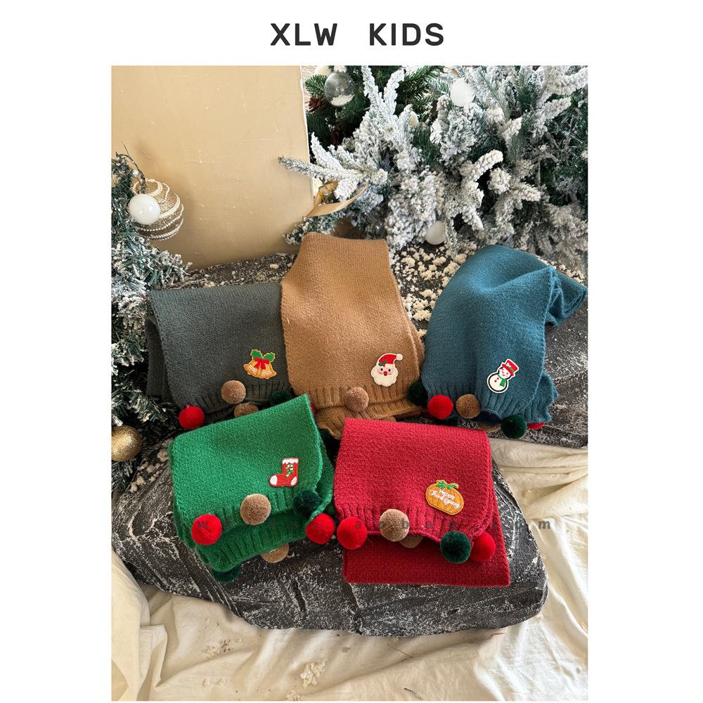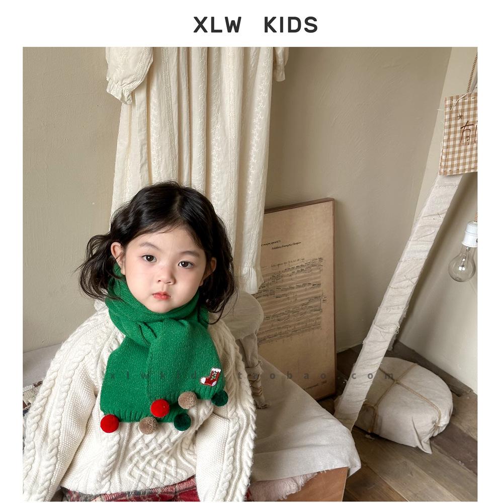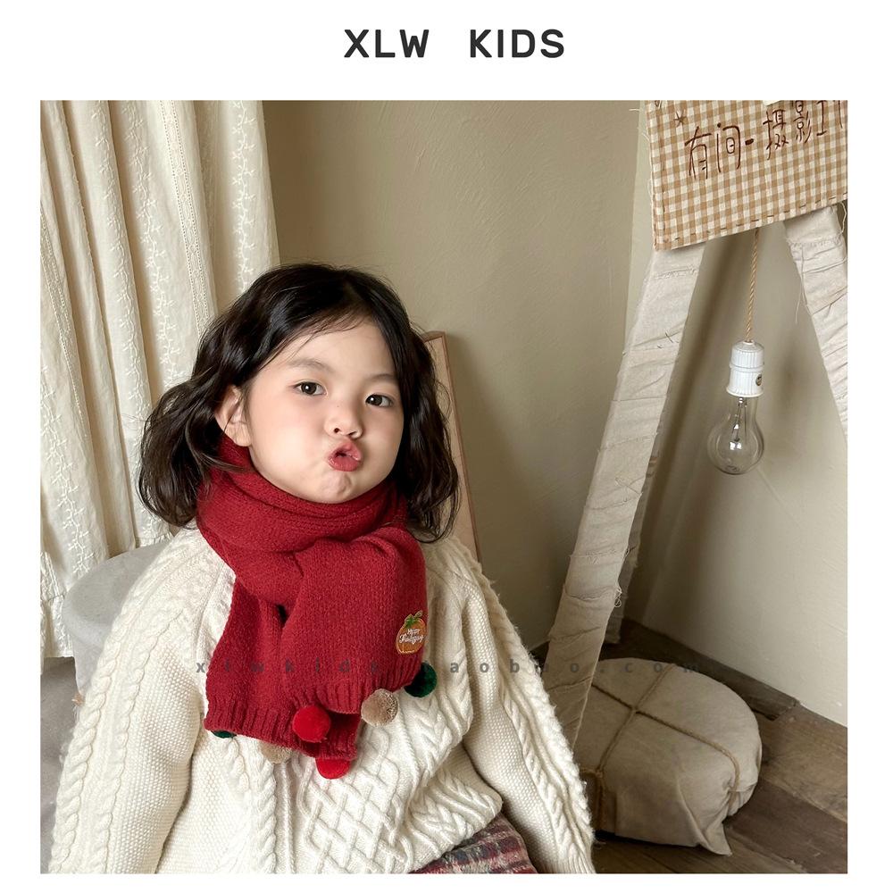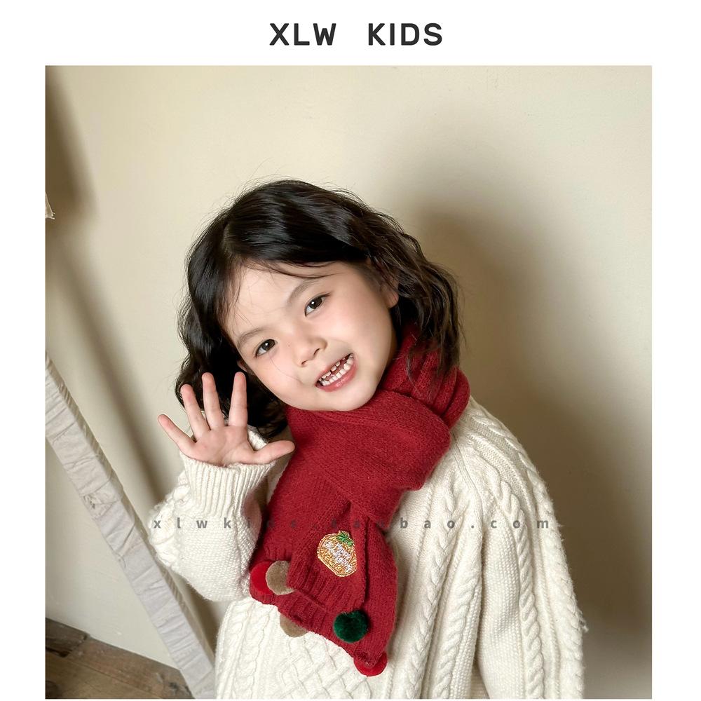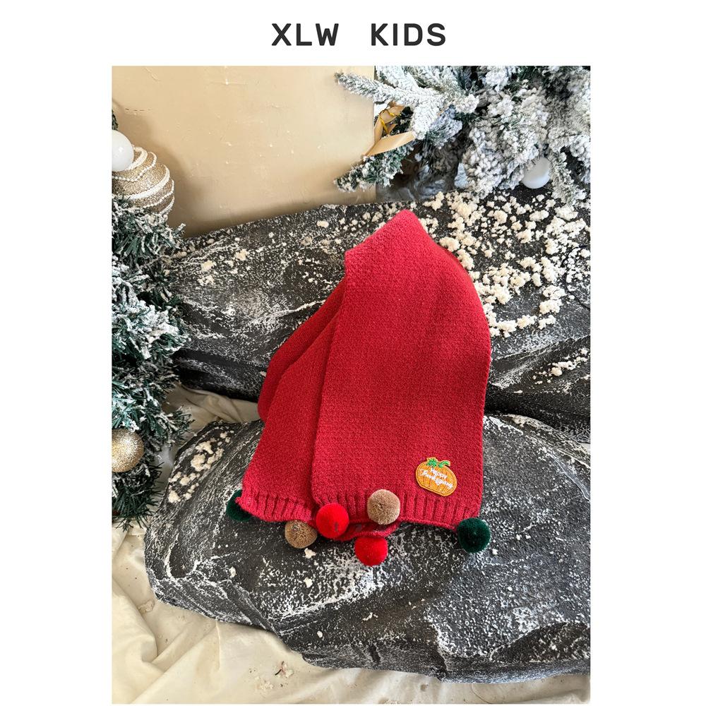 Bufanda Caliente de Punto para Niños y Niñas para Otoño e Invierno Roja Año Nuevo Navidad Ins Bufanda Gruesa a Prueba de Frío para Bebé Moda