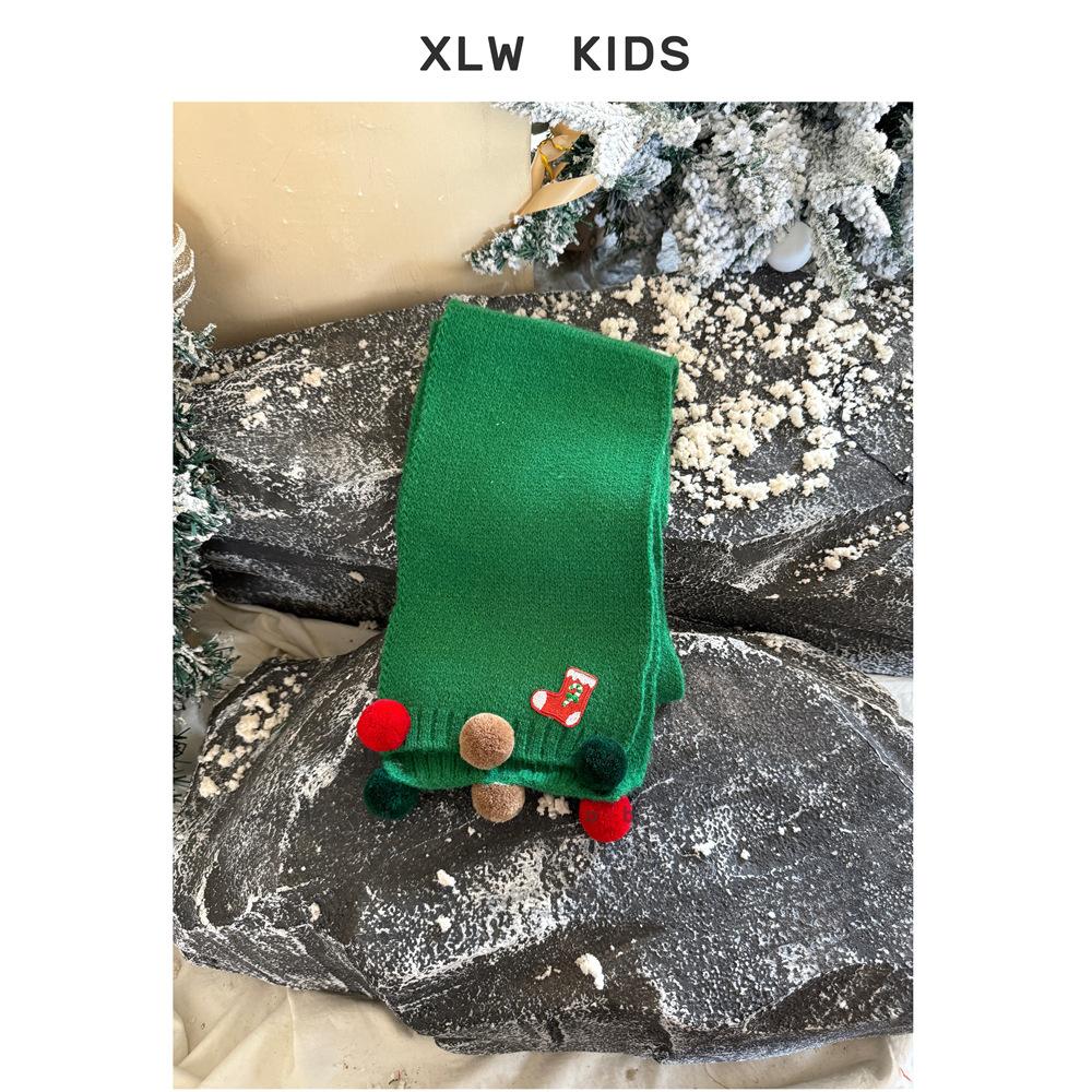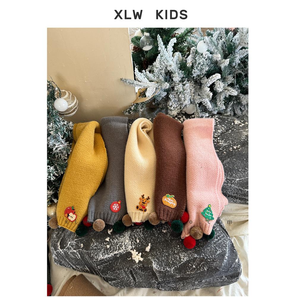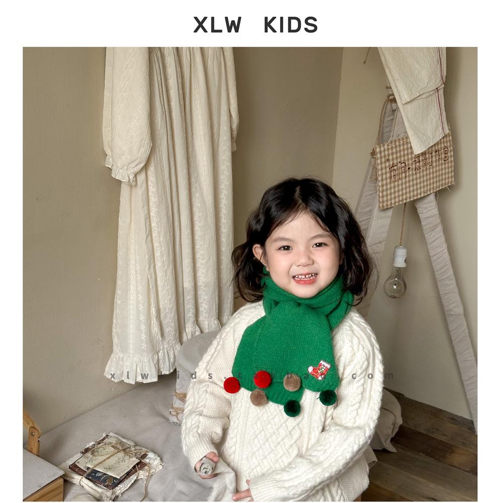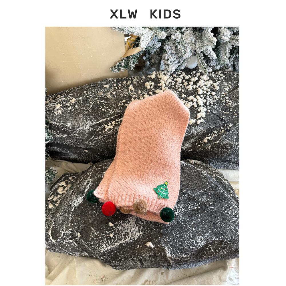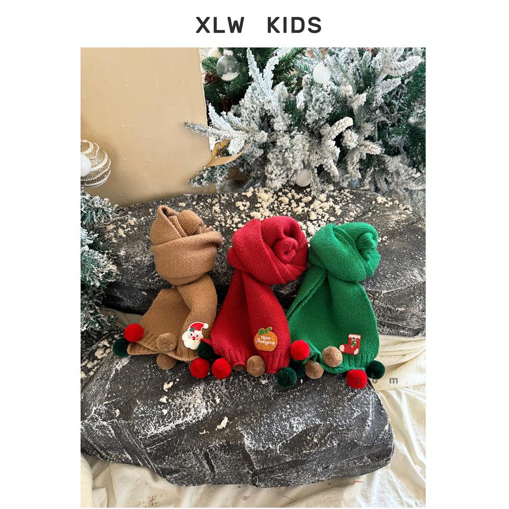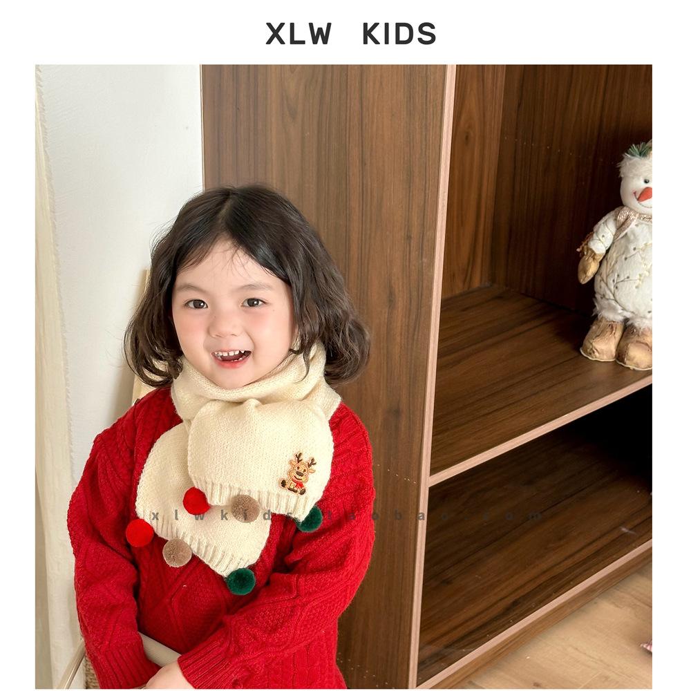 Bufanda Caliente de Punto para Niños y Niñas para Otoño e Invierno Roja Año Nuevo Navidad Ins Bufanda Gruesa a Prueba de Frío para Bebé Moda