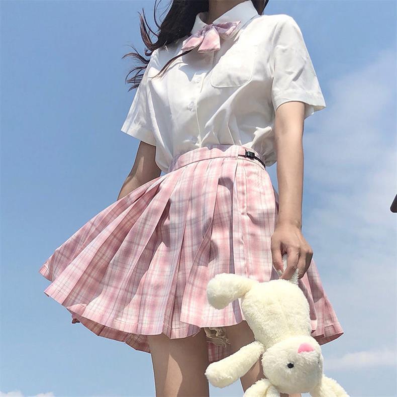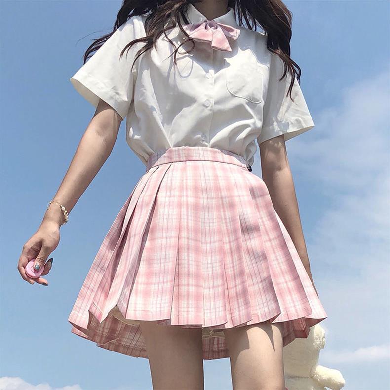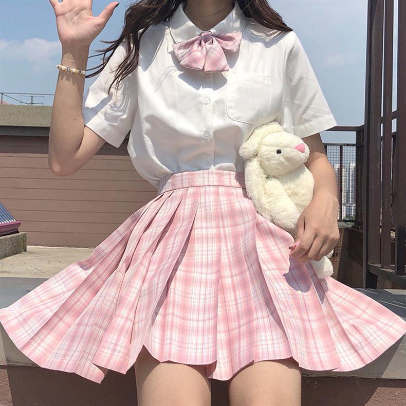 Traje de uniforme Jk de corazón de niña Camisa de manga corta Falda Falda original genuina Escuela para traje de falda plisada