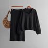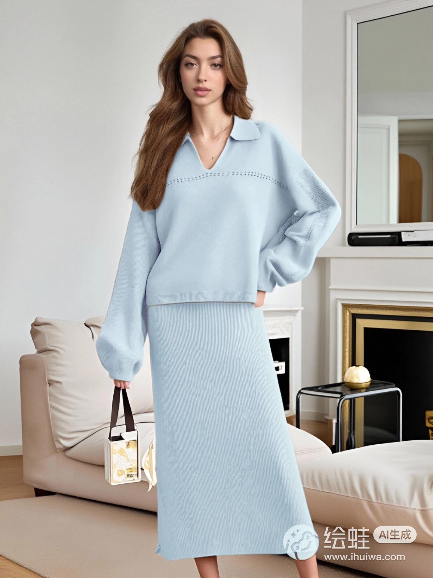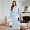 Conjunto de ropa de mujer de comercio exterior transfronterizo 2025 nuevo estilo solapa holgado manga larga top falda cintura elástica conjunto tejido