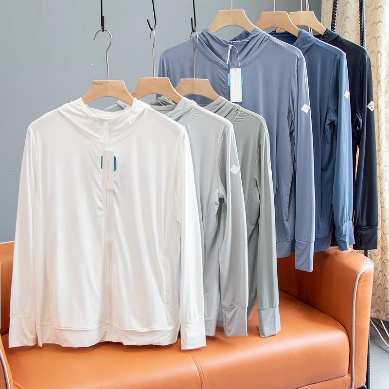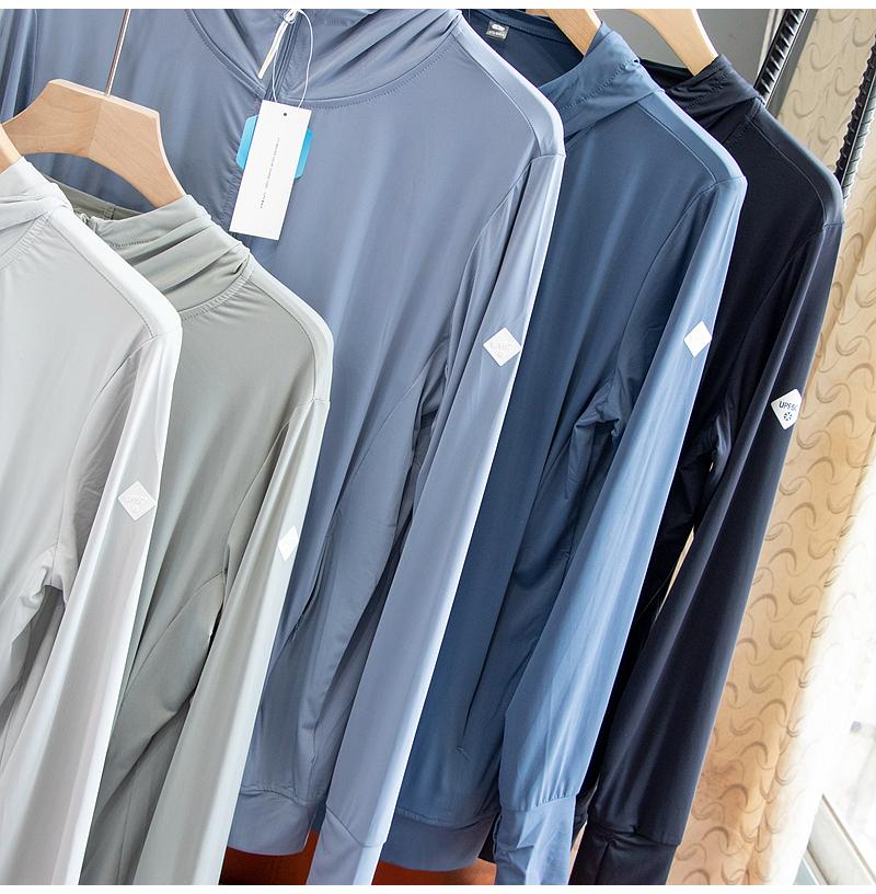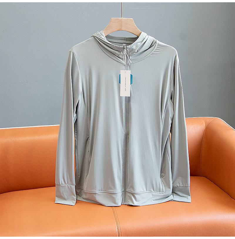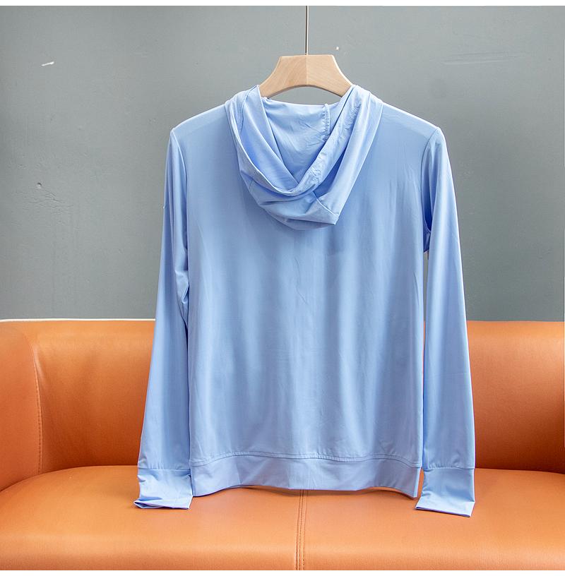 Ropa de piel con capucha para hombre y mujer para verano con protección solar Upf50+ contra los rayos UV, fresca, elástica, transpirable, de seda de hielo para exteriores